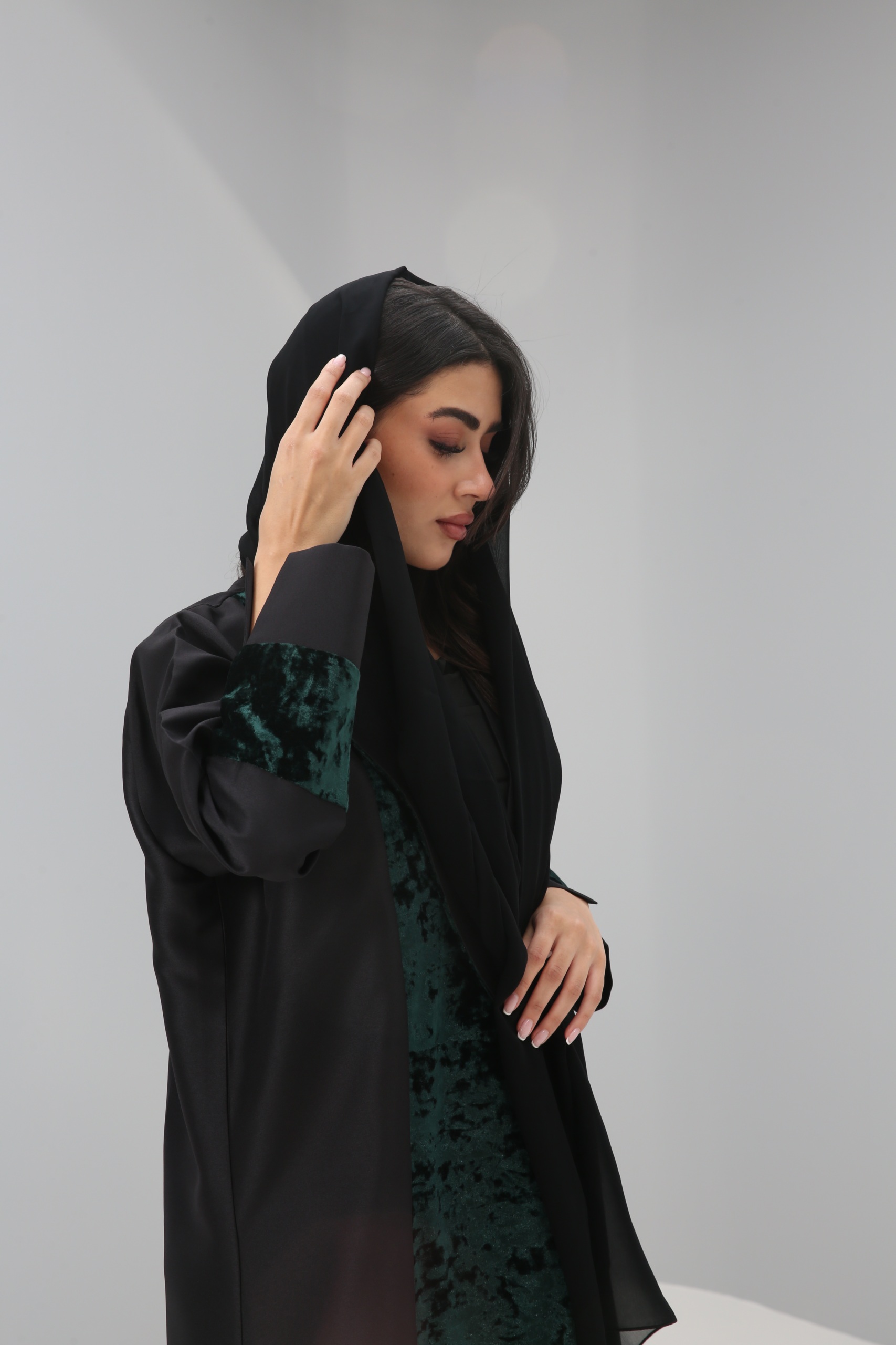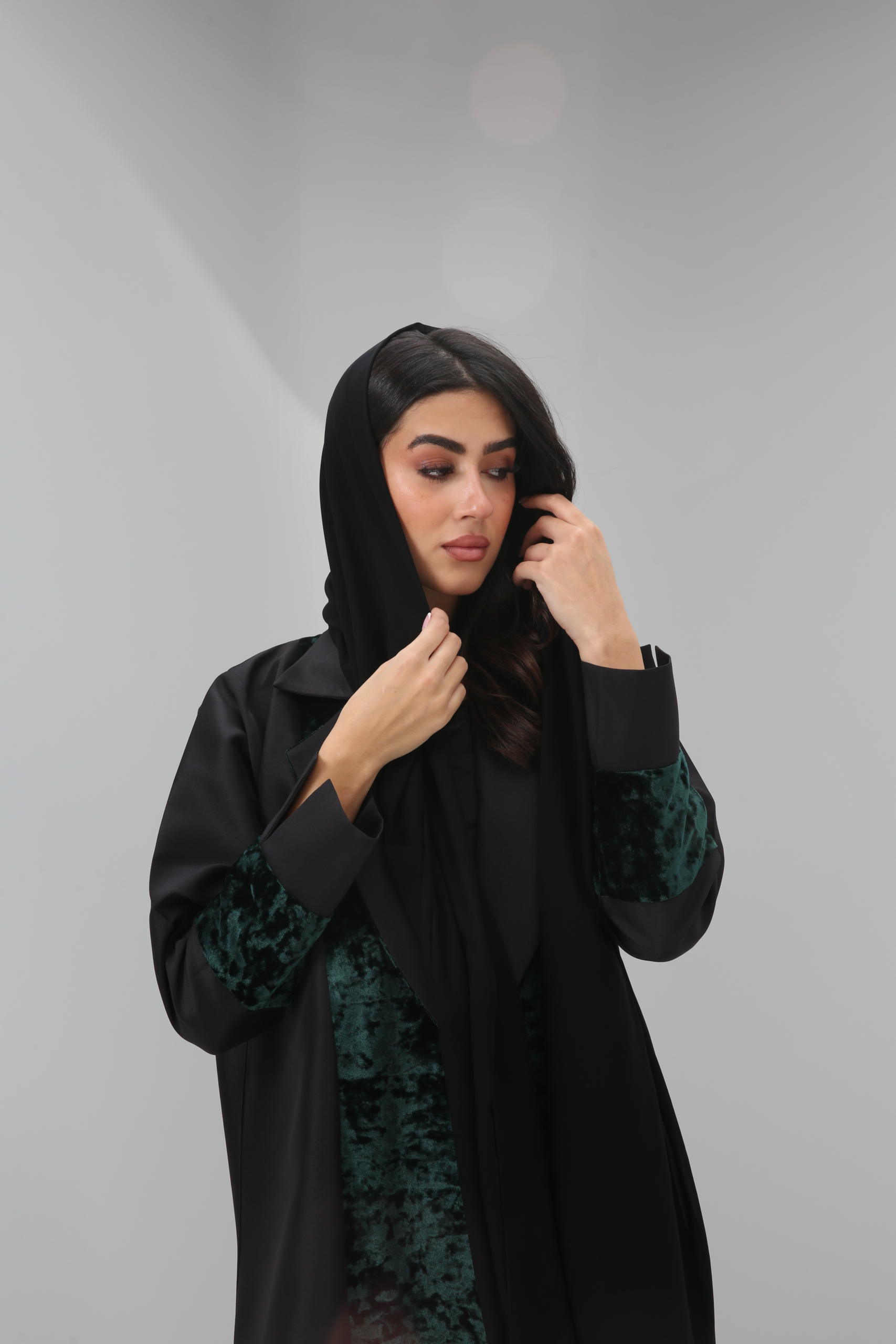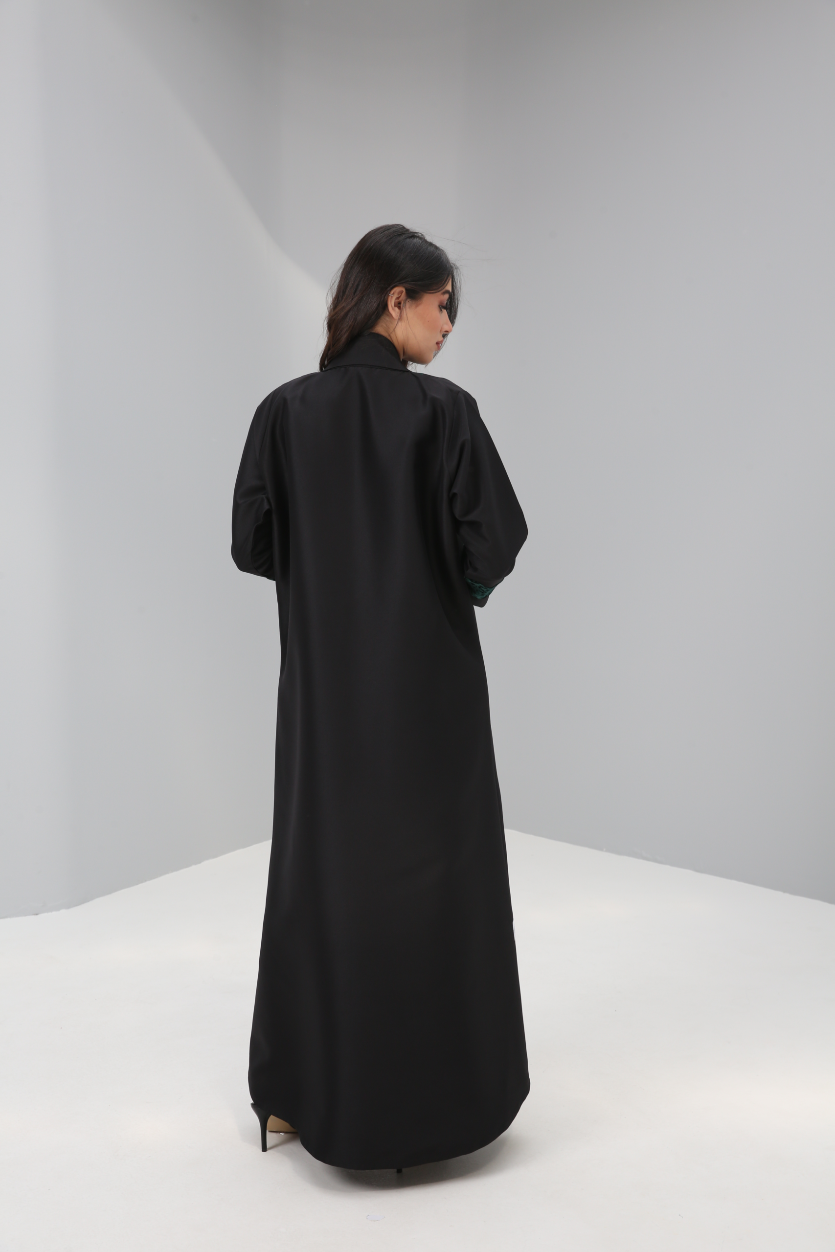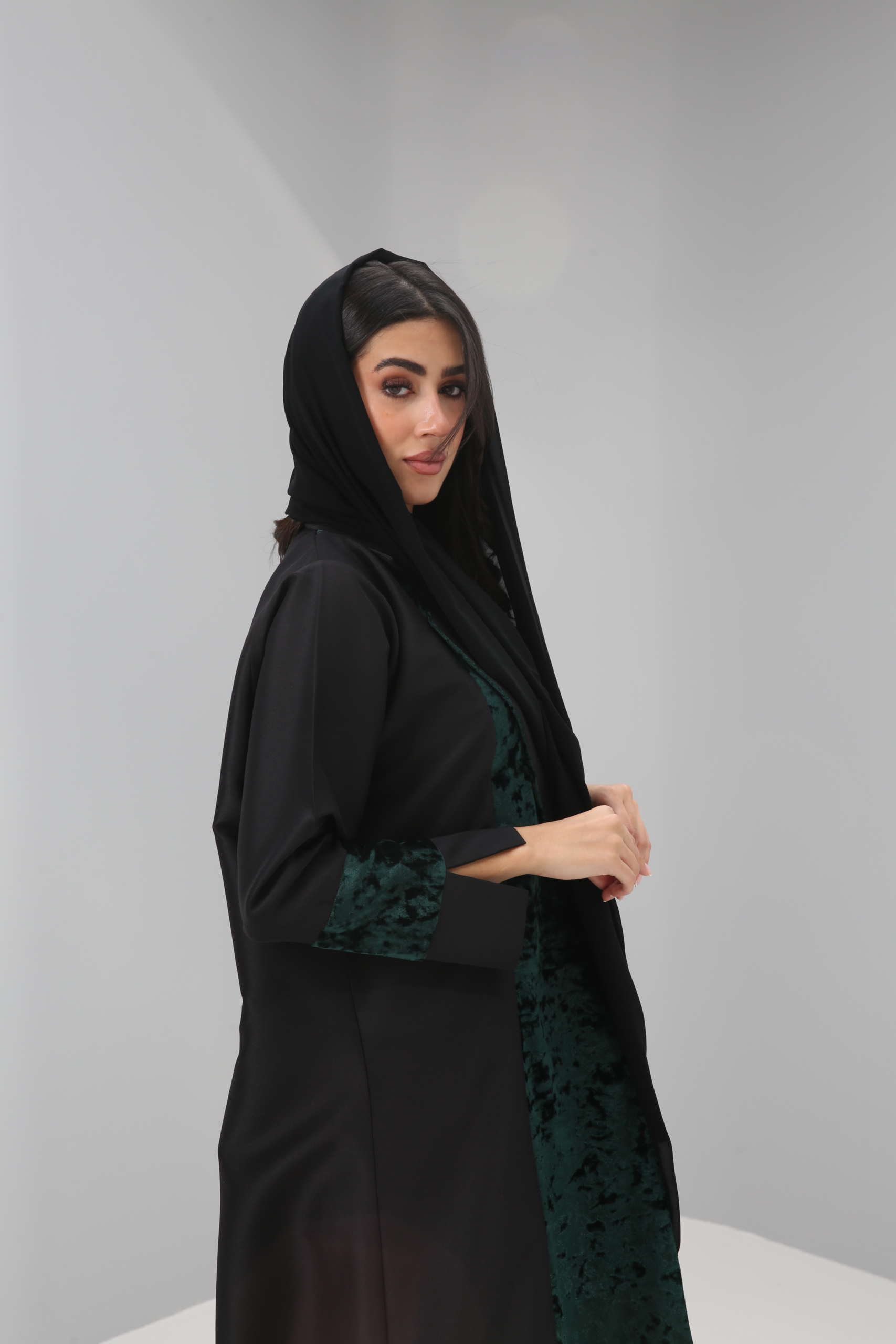 Step into refined elegance with our Black & Emerald Green Abaya – Luxe Edition, a masterpiece that blends the power of contrast with the grace of timeless design. Crafted from premium silk-touch crepe, the deep onyx black meets a rich emerald green, creating a look that is both regal and contemporary.