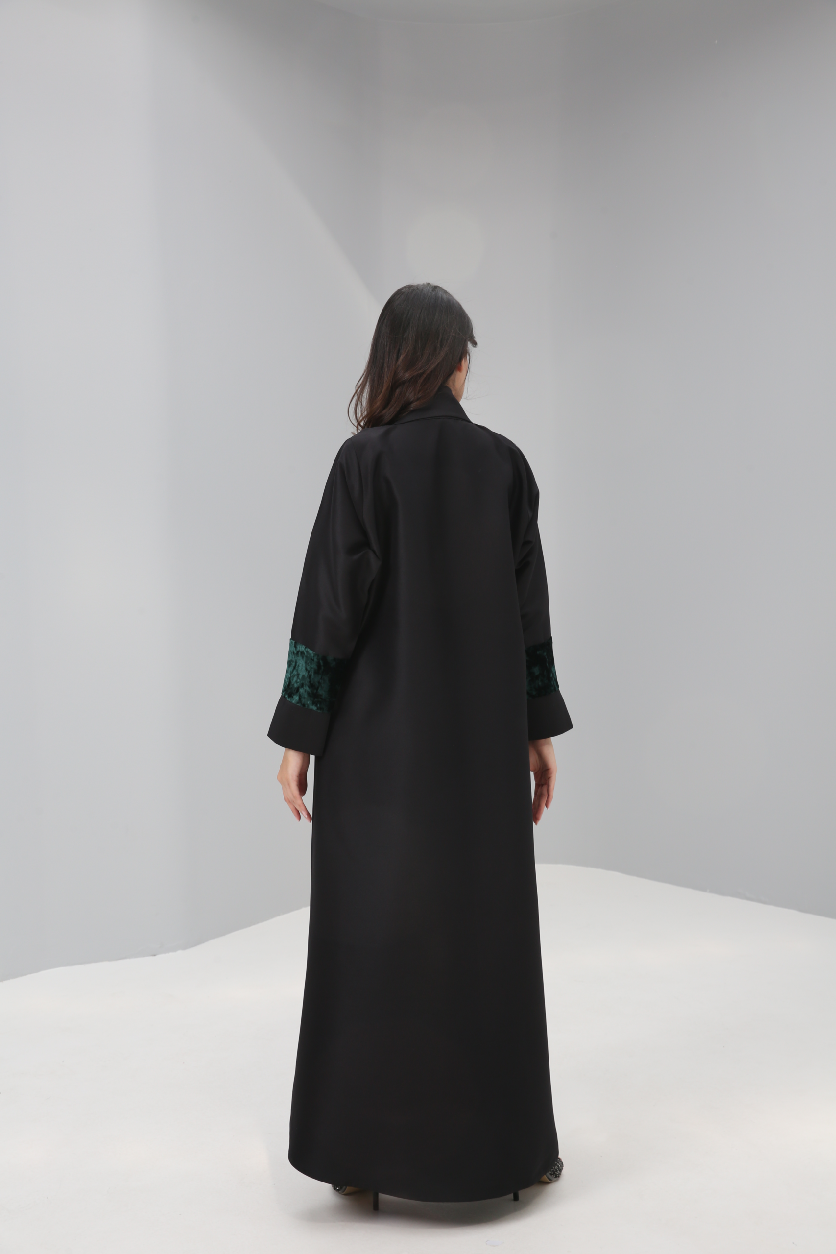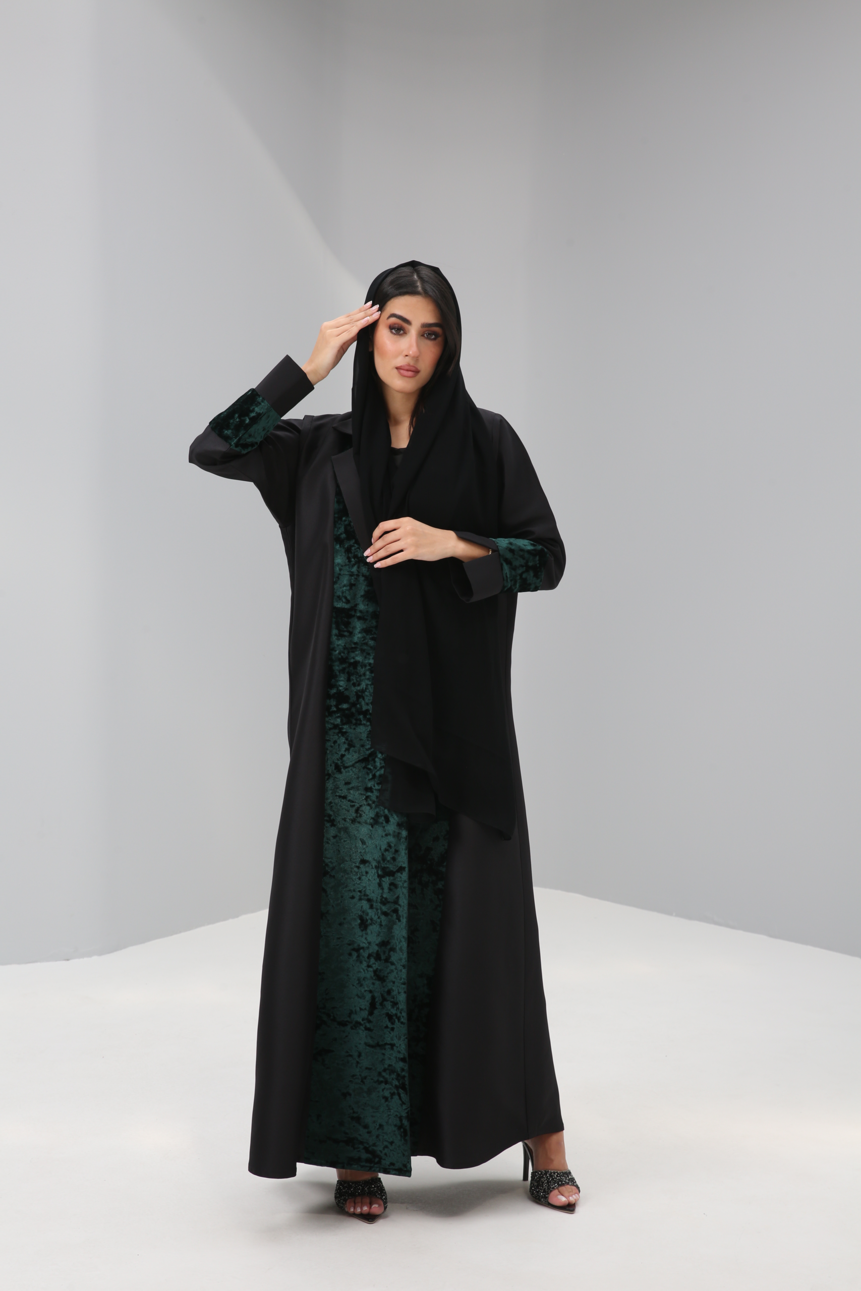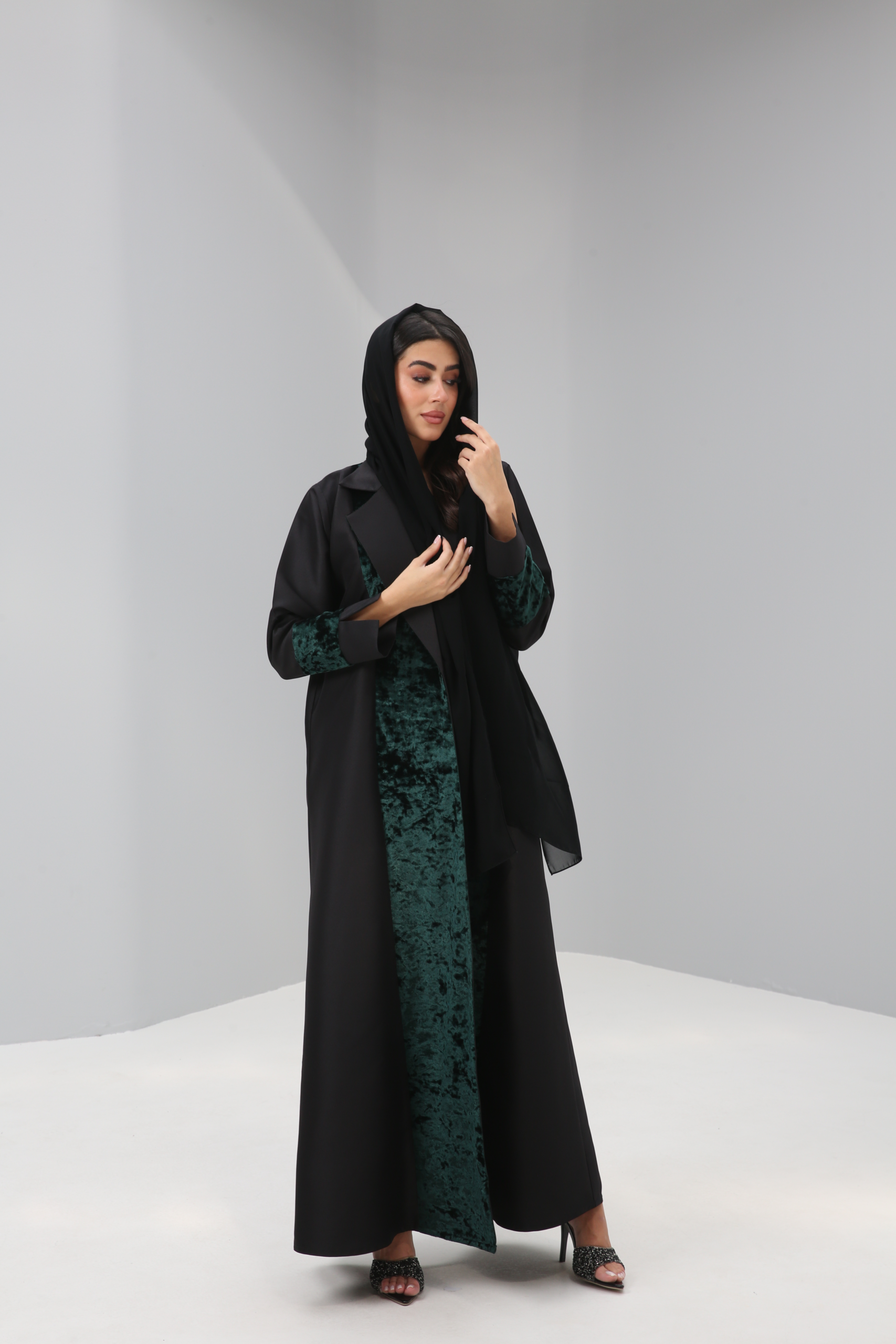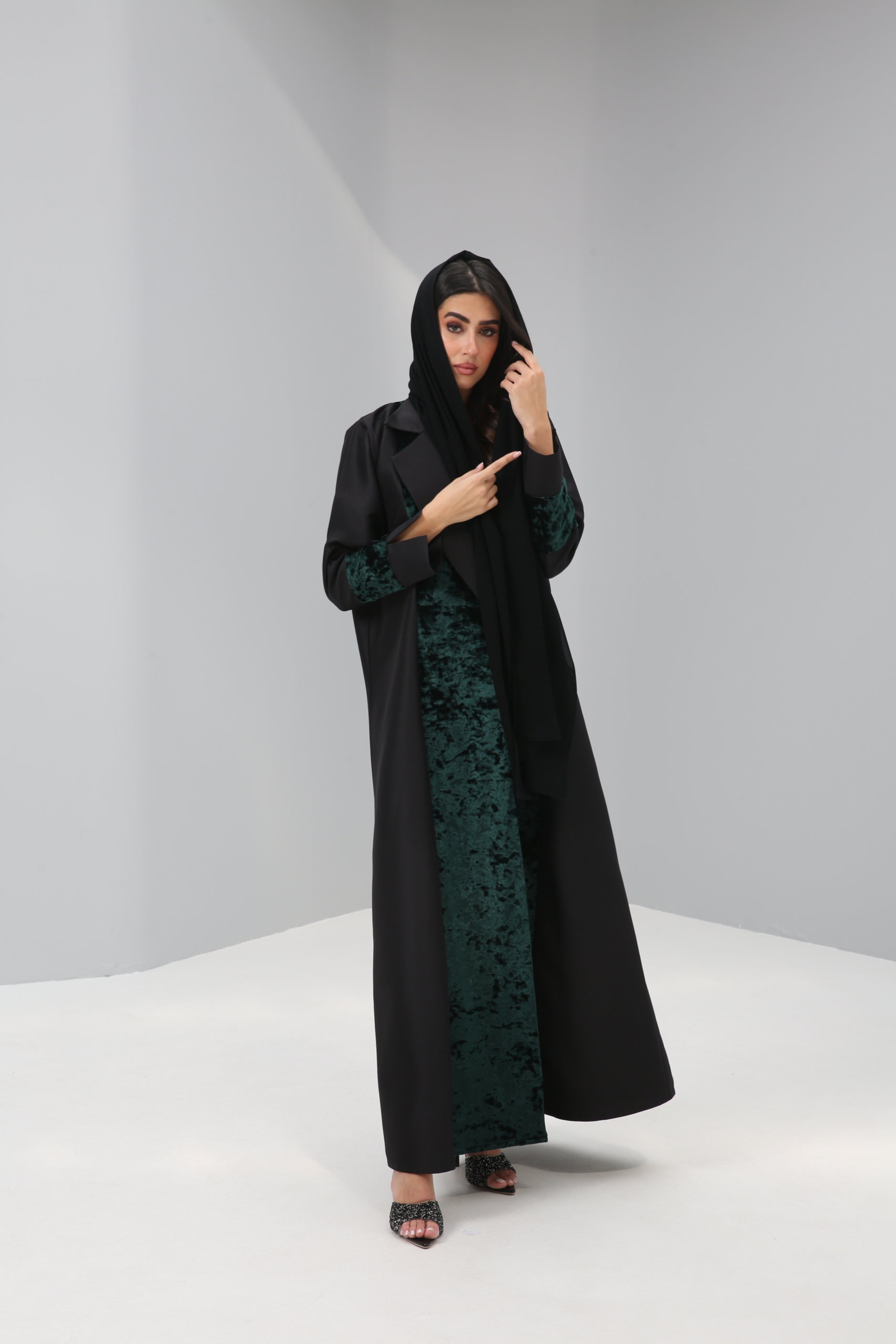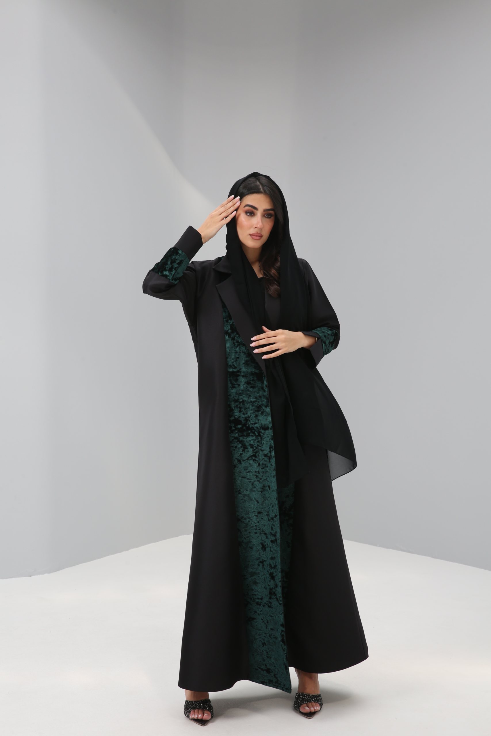 Step into refined elegance with our Black & Emerald Green Abaya – Luxe Edition, a masterpiece that blends the power of contrast with the grace of timeless design. Crafted from premium silk-touch crepe, the deep onyx black meets a rich emerald green, creating a look that is both regal and contemporary.