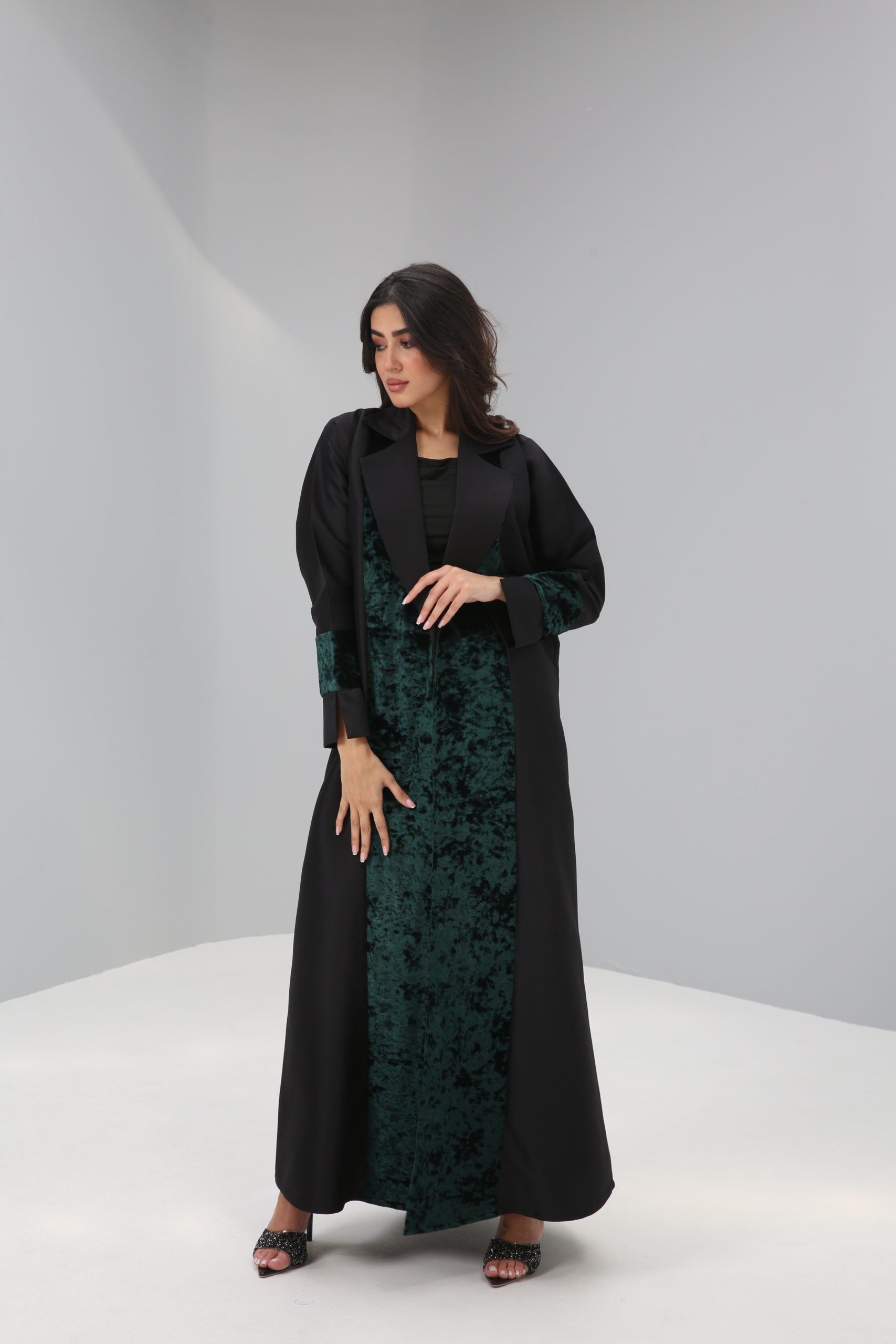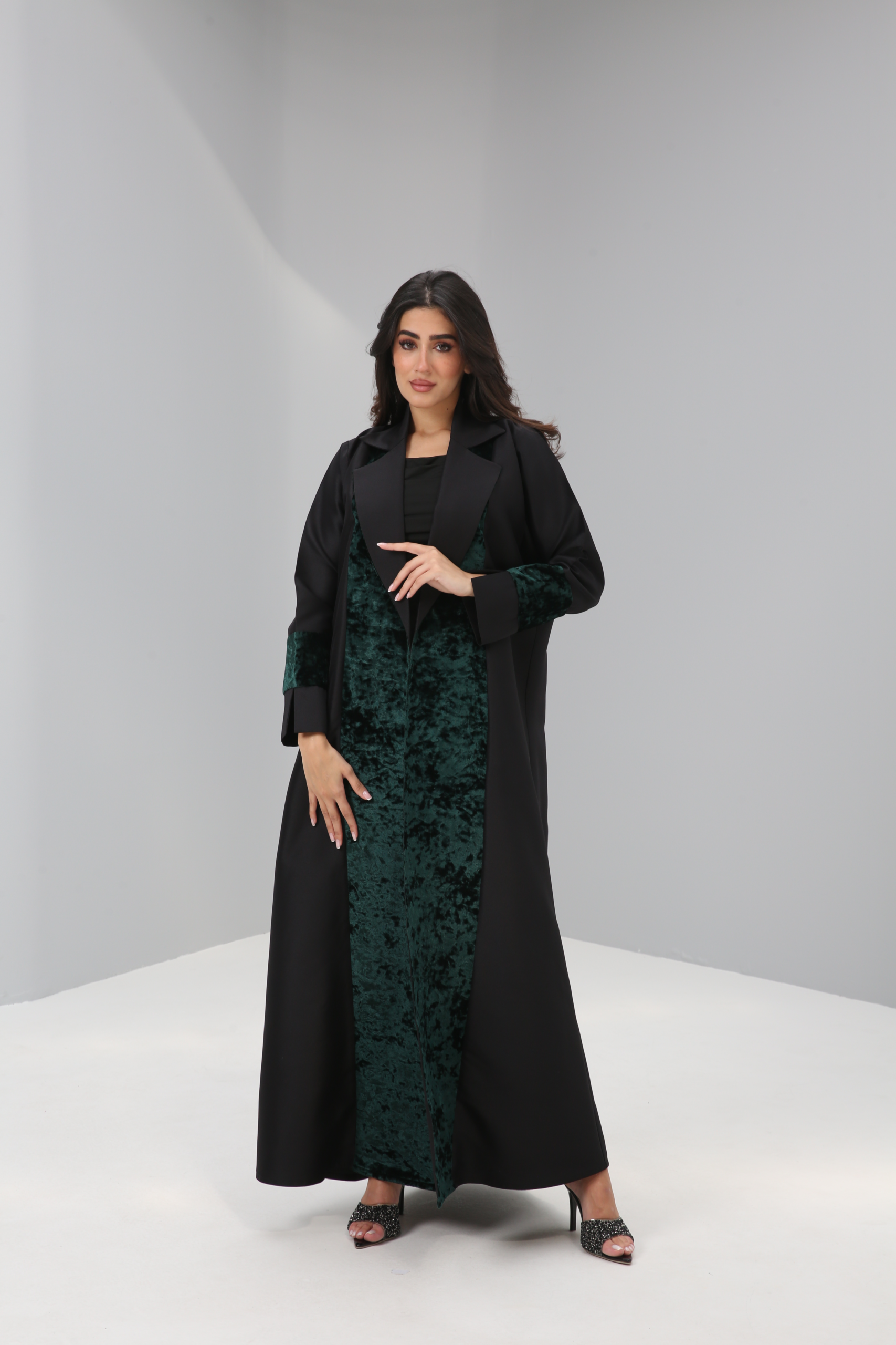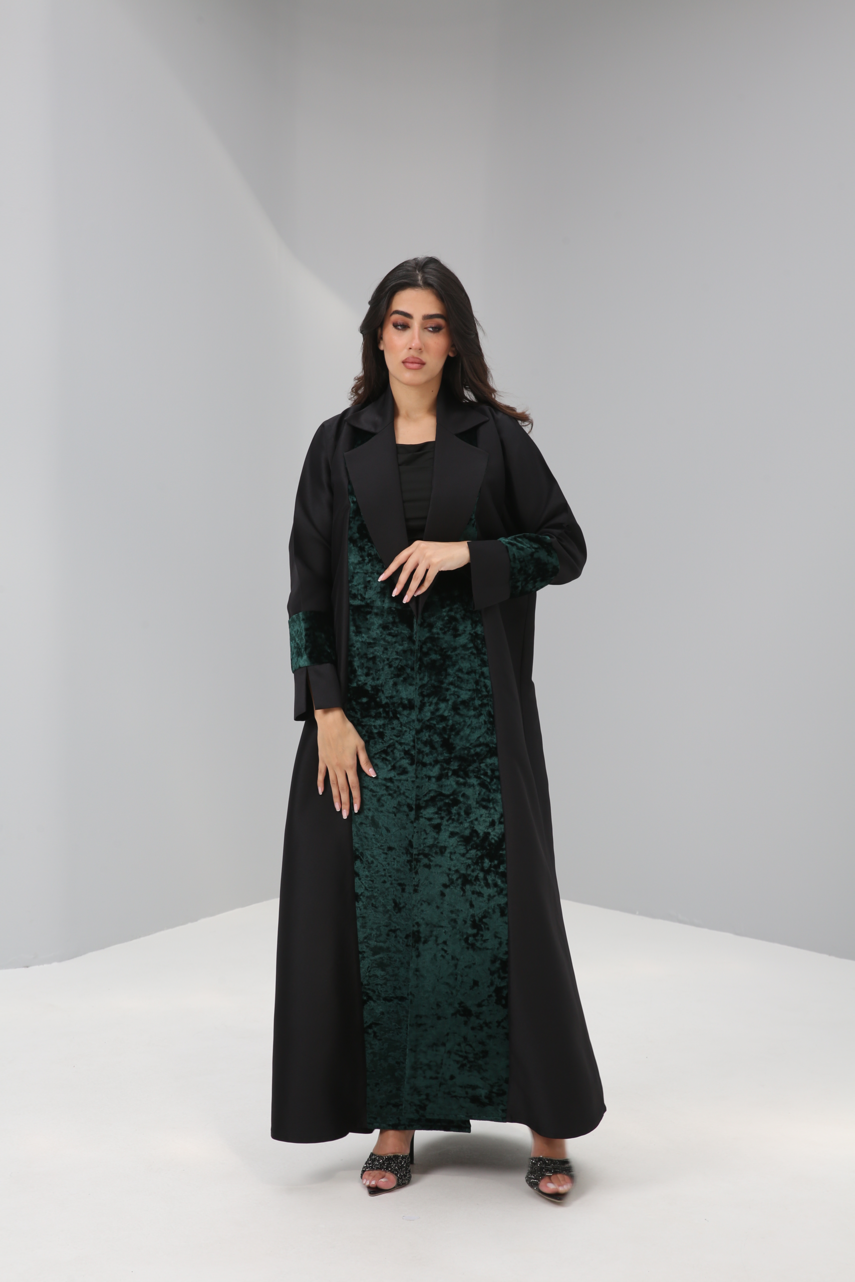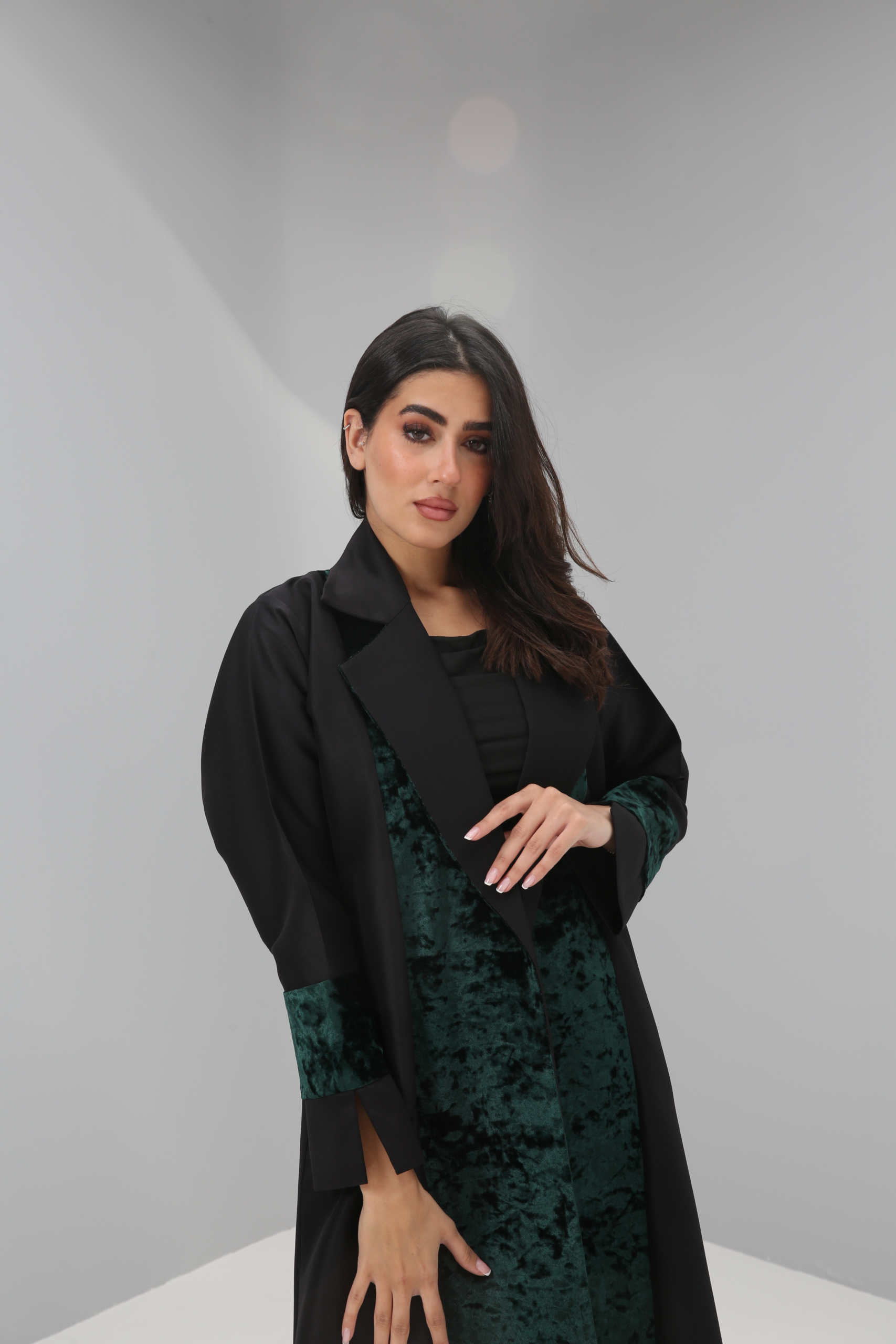 Step into refined elegance with our Black & Emerald Green Abaya – Luxe Edition, a masterpiece that blends the power of contrast with the grace of timeless design. Crafted from premium silk-touch crepe, the deep onyx black meets a rich emerald green, creating a look that is both regal and contemporary.