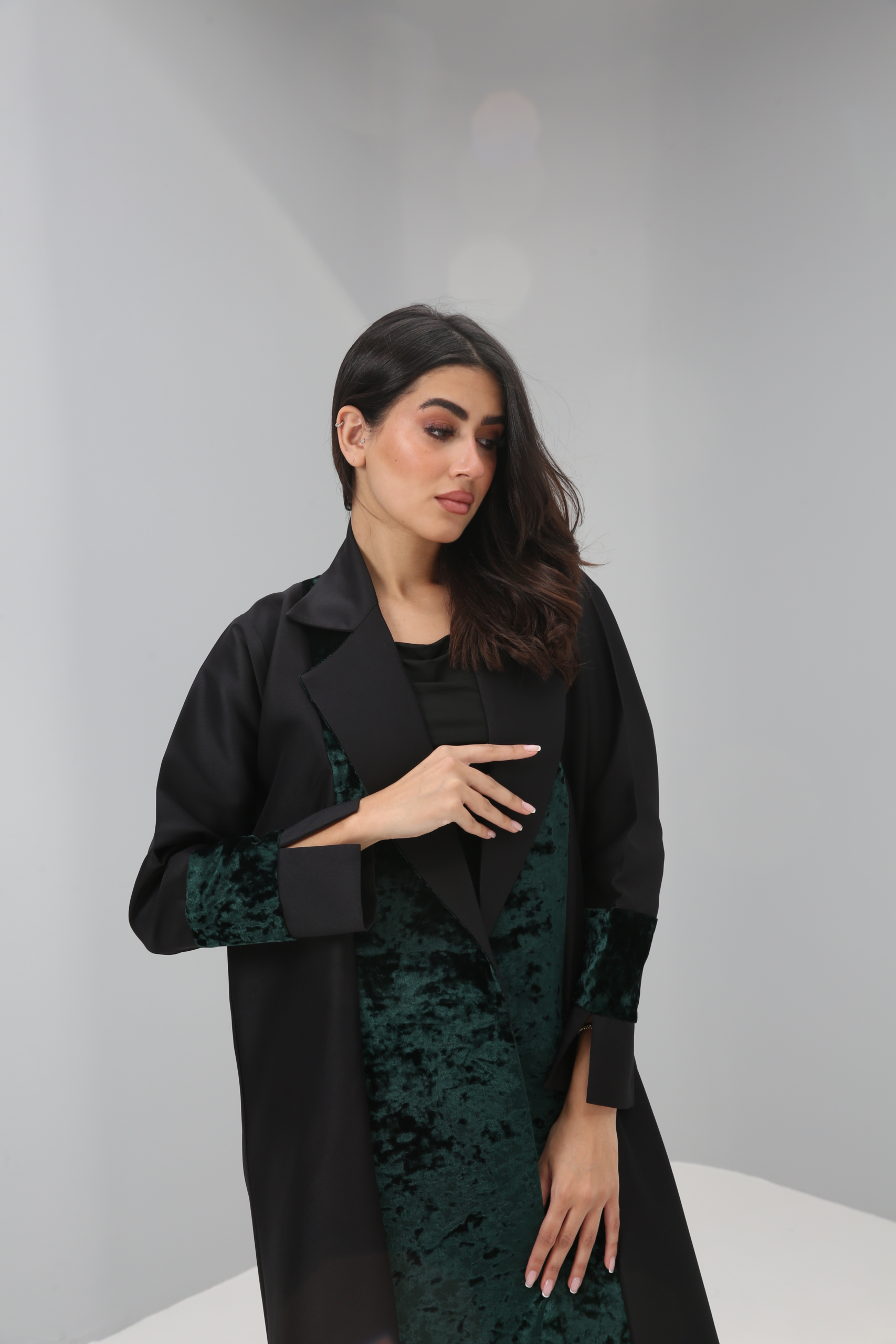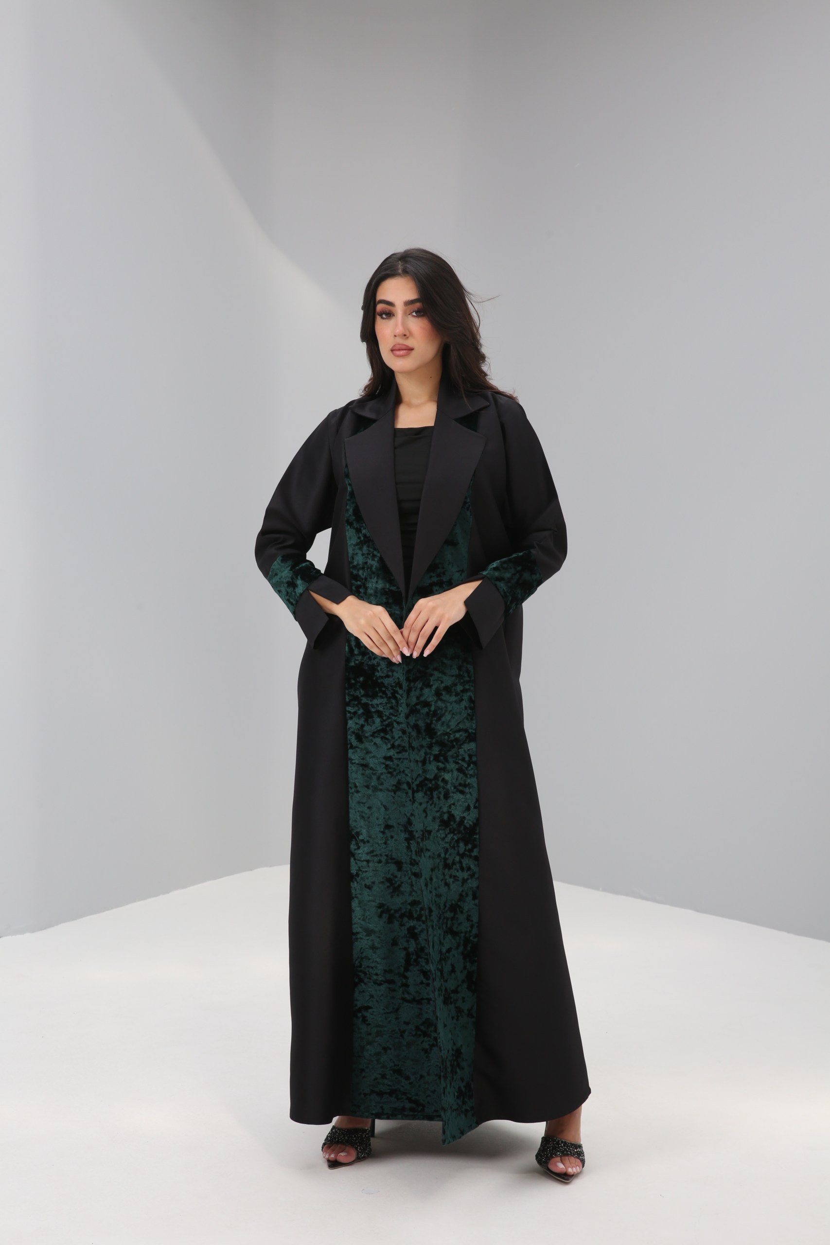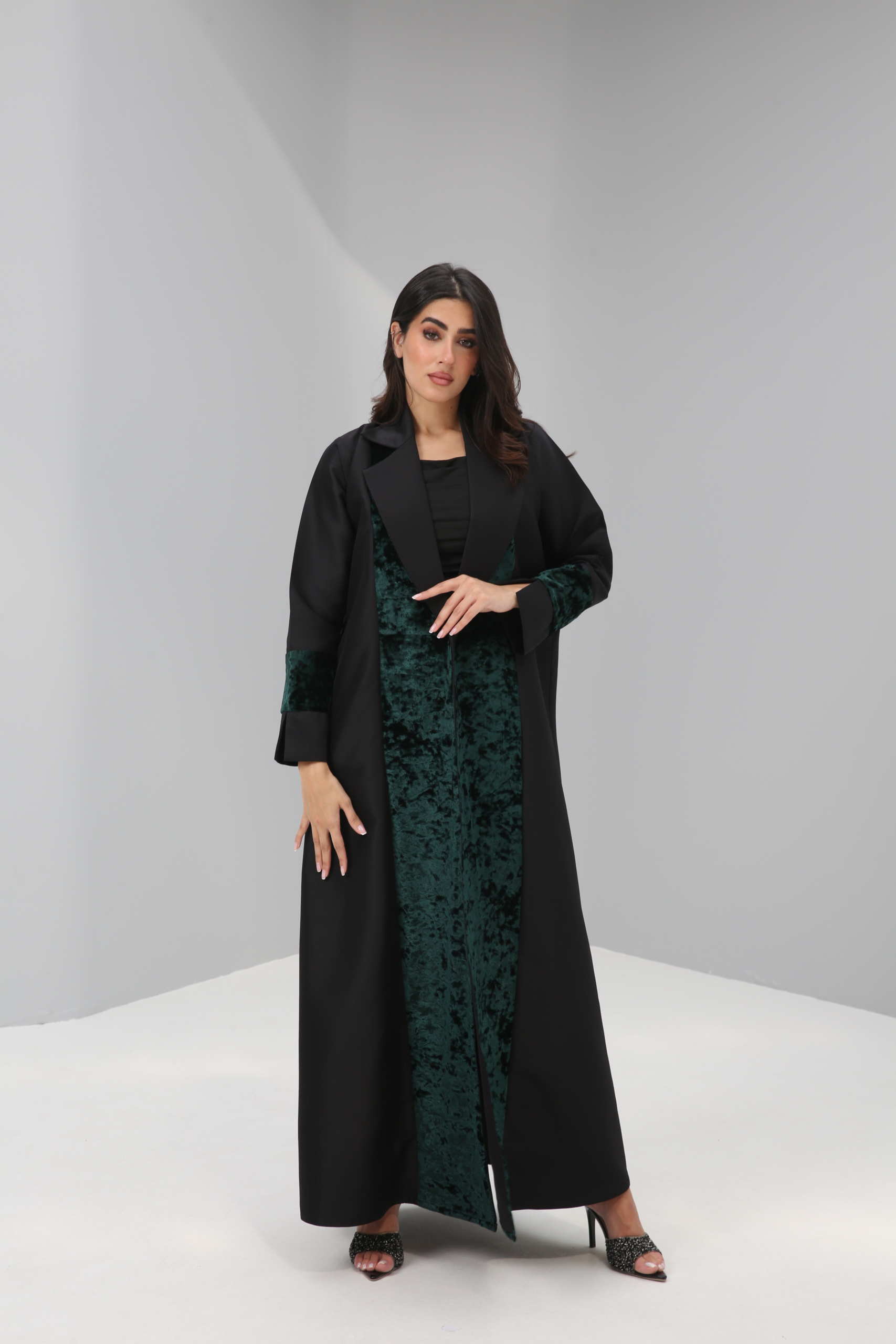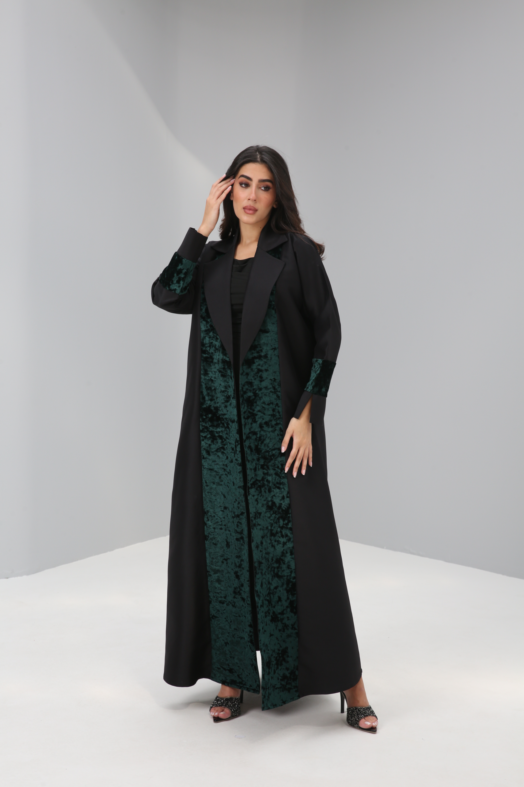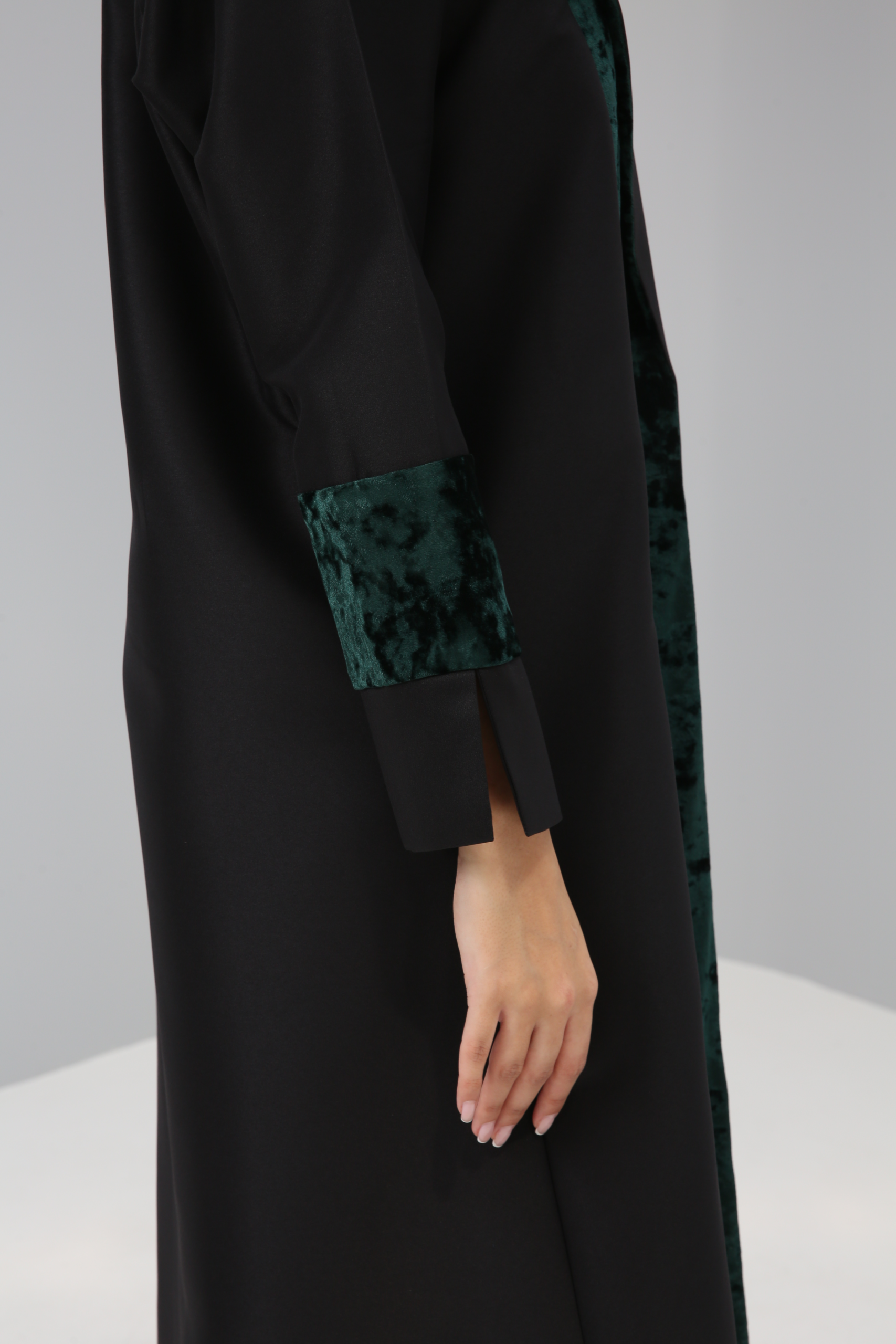 Step into refined elegance with our Black & Emerald Green Abaya – Luxe Edition, a masterpiece that blends the power of contrast with the grace of timeless design. Crafted from premium silk-touch crepe, the deep onyx black meets a rich emerald green, creating a look that is both regal and contemporary.