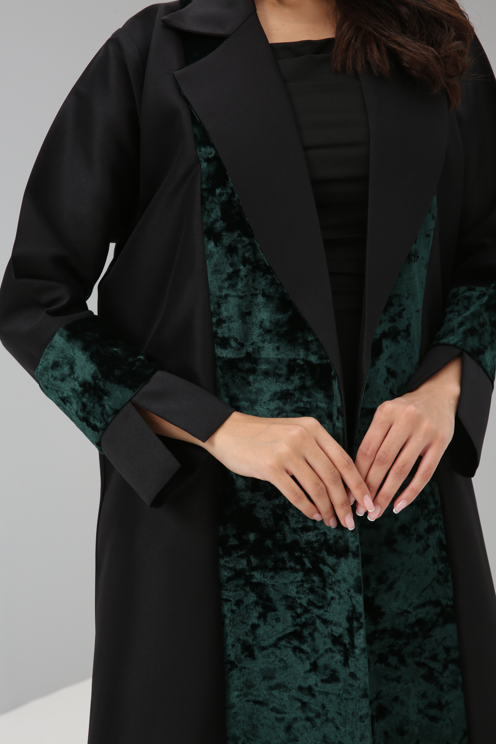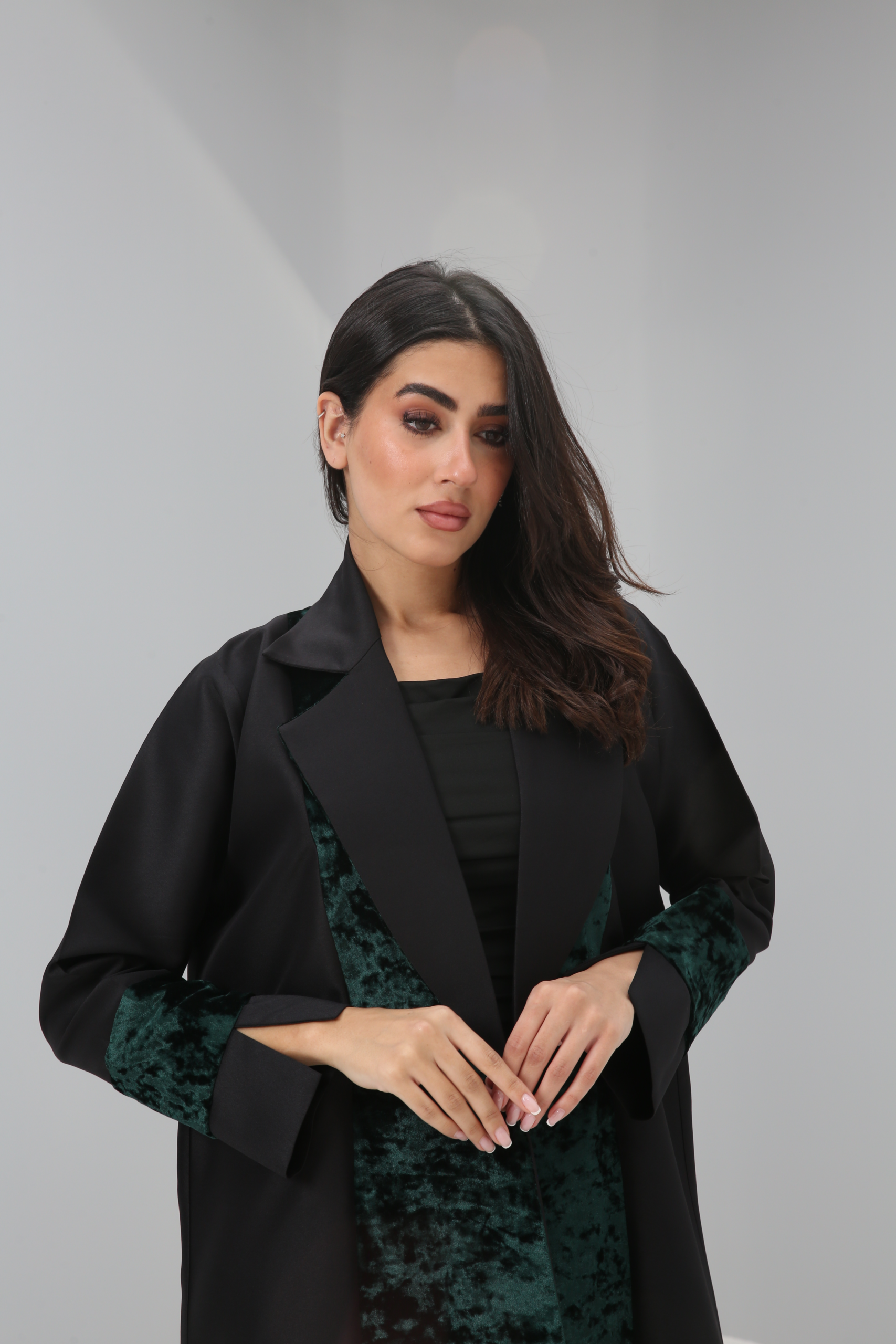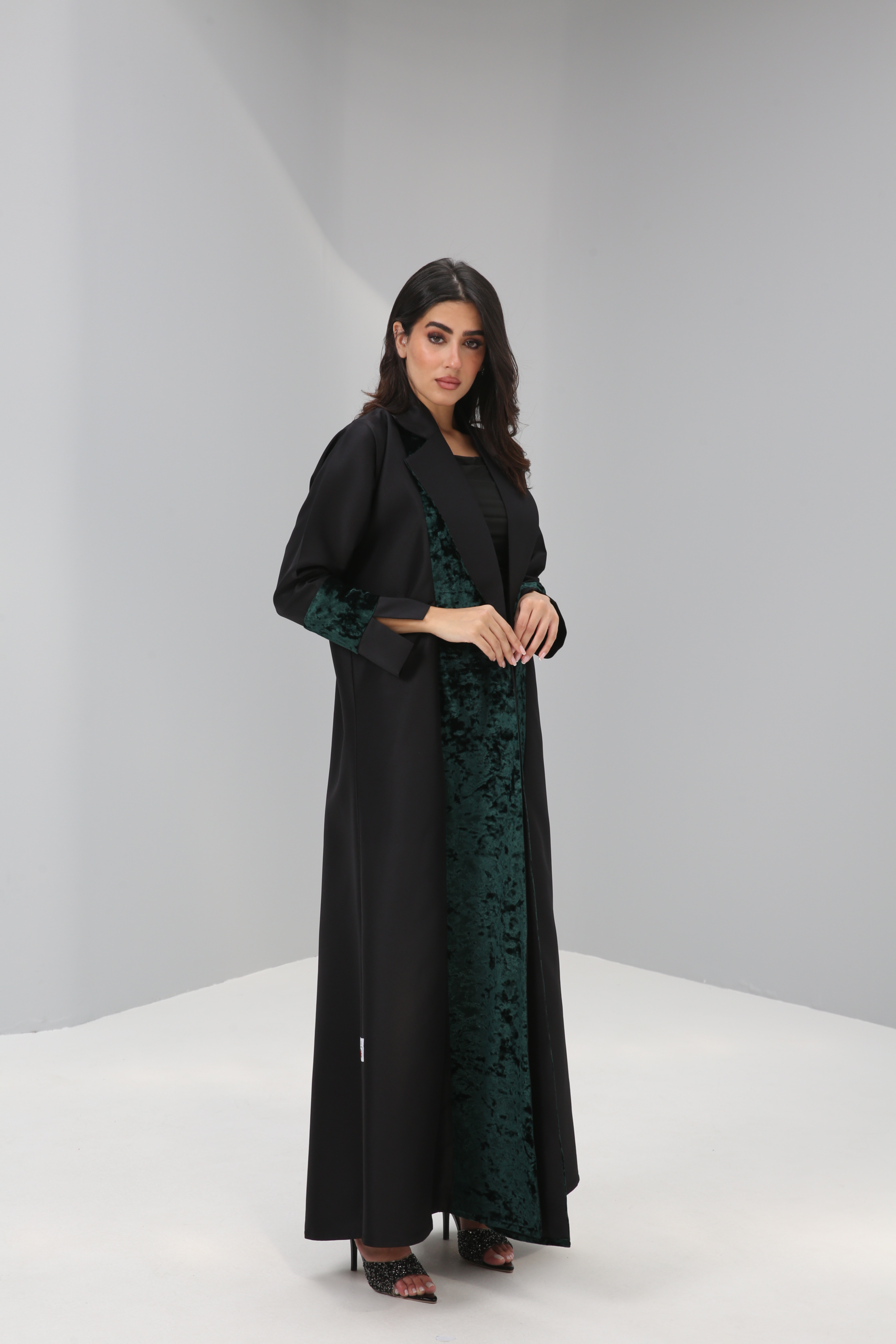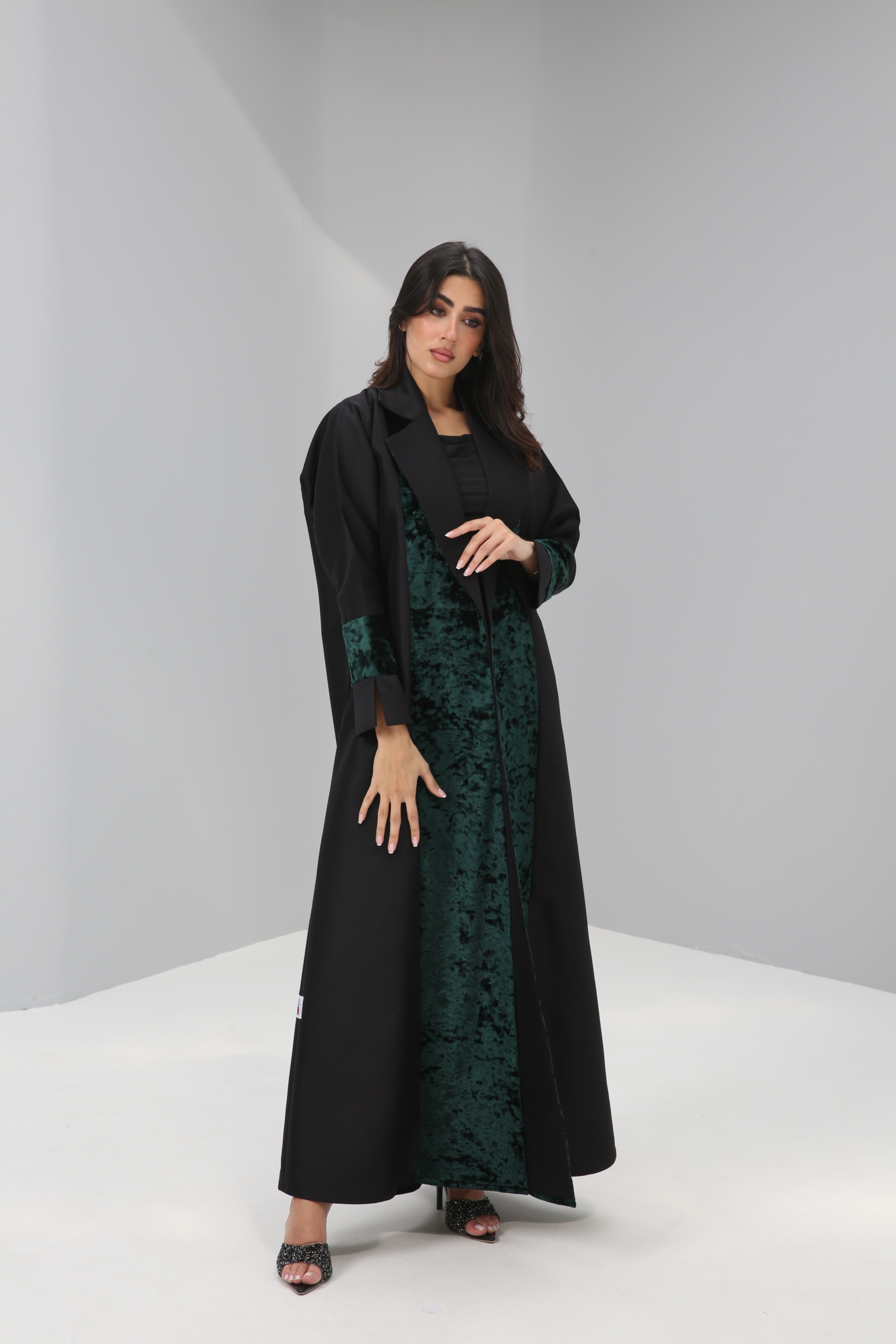 Step into refined elegance with our Black & Emerald Green Abaya – Luxe Edition, a masterpiece that blends the power of contrast with the grace of timeless design. Crafted from premium silk-touch crepe, the deep onyx black meets a rich emerald green, creating a look that is both regal and contemporary.