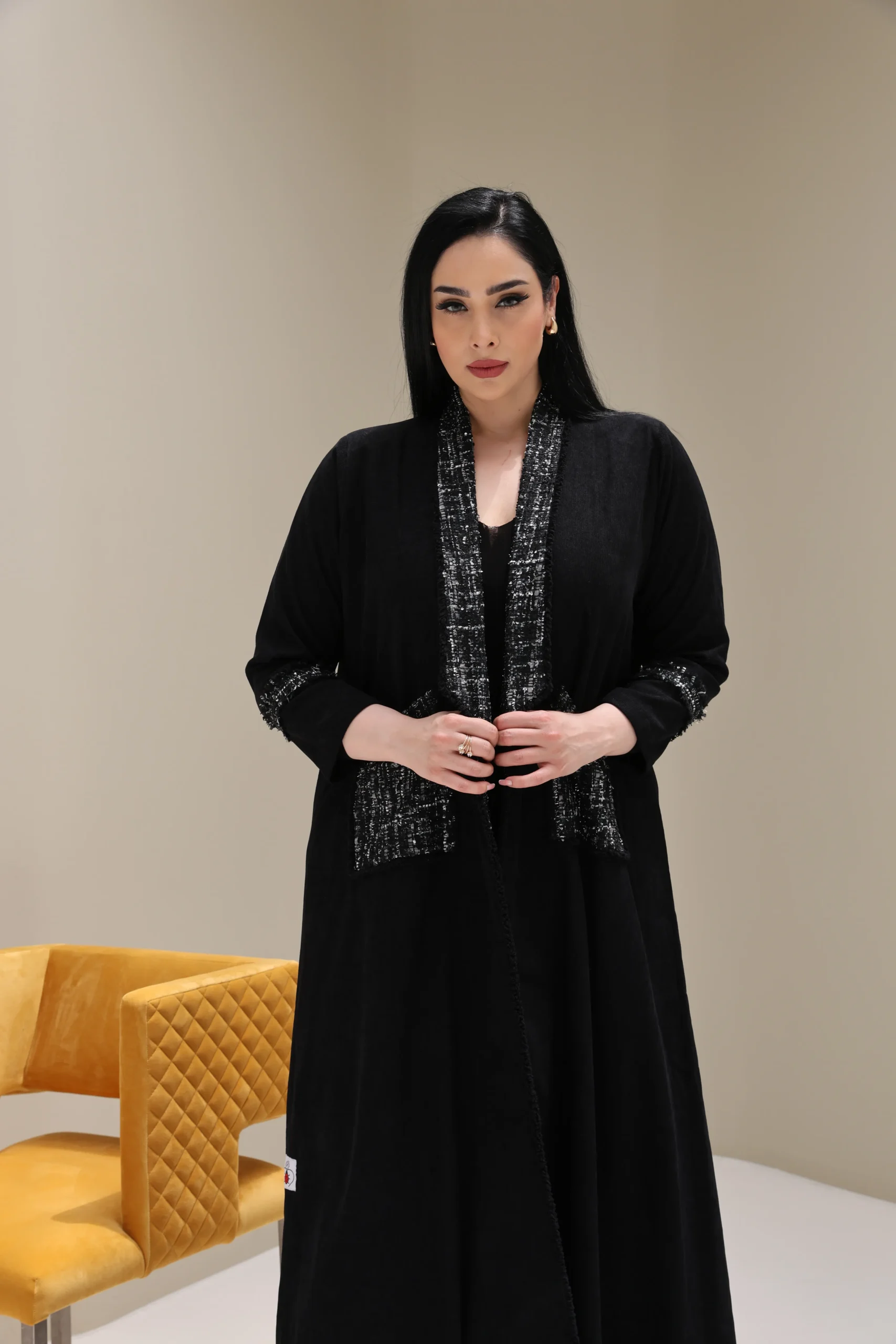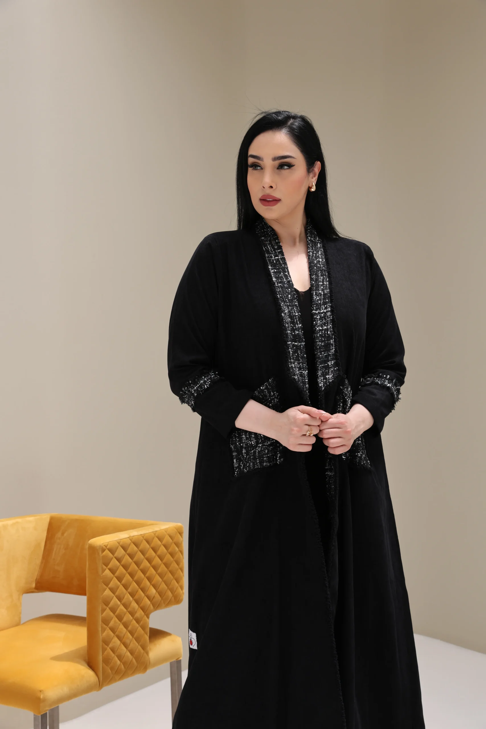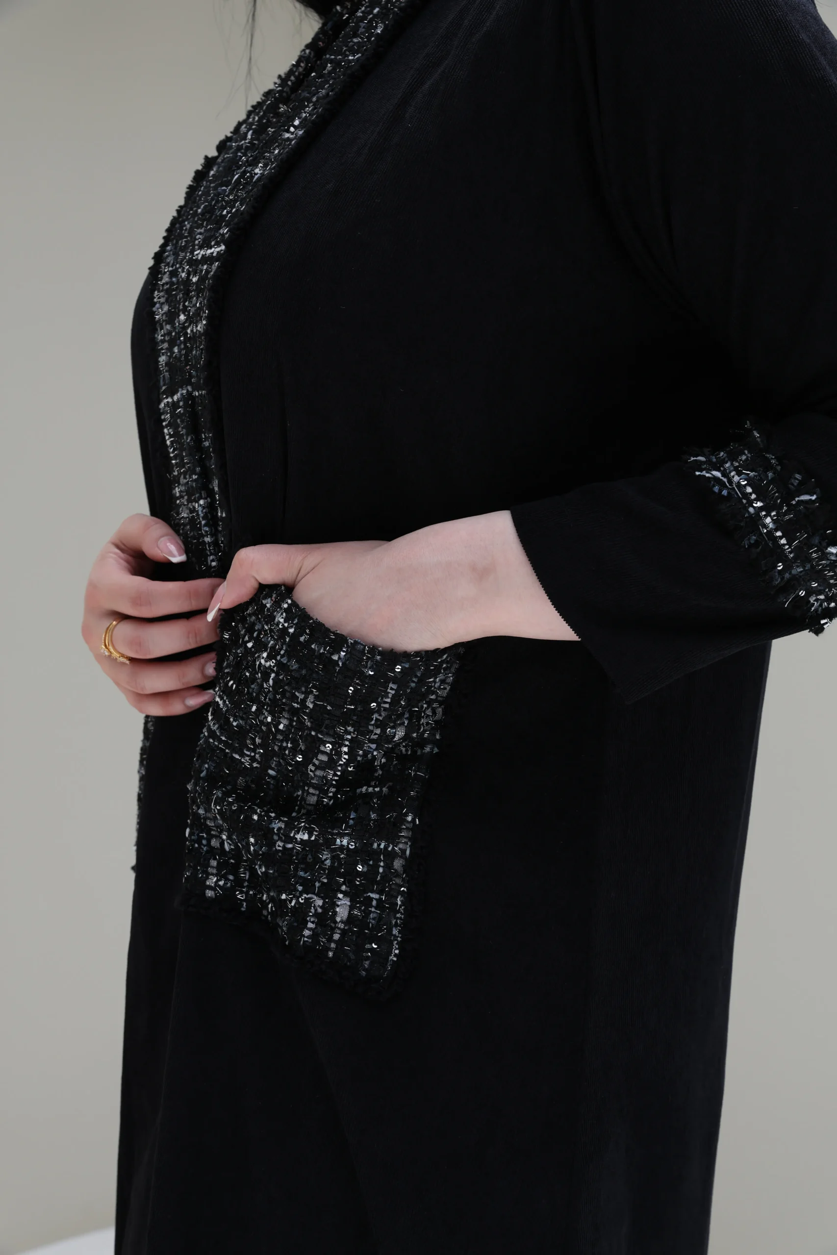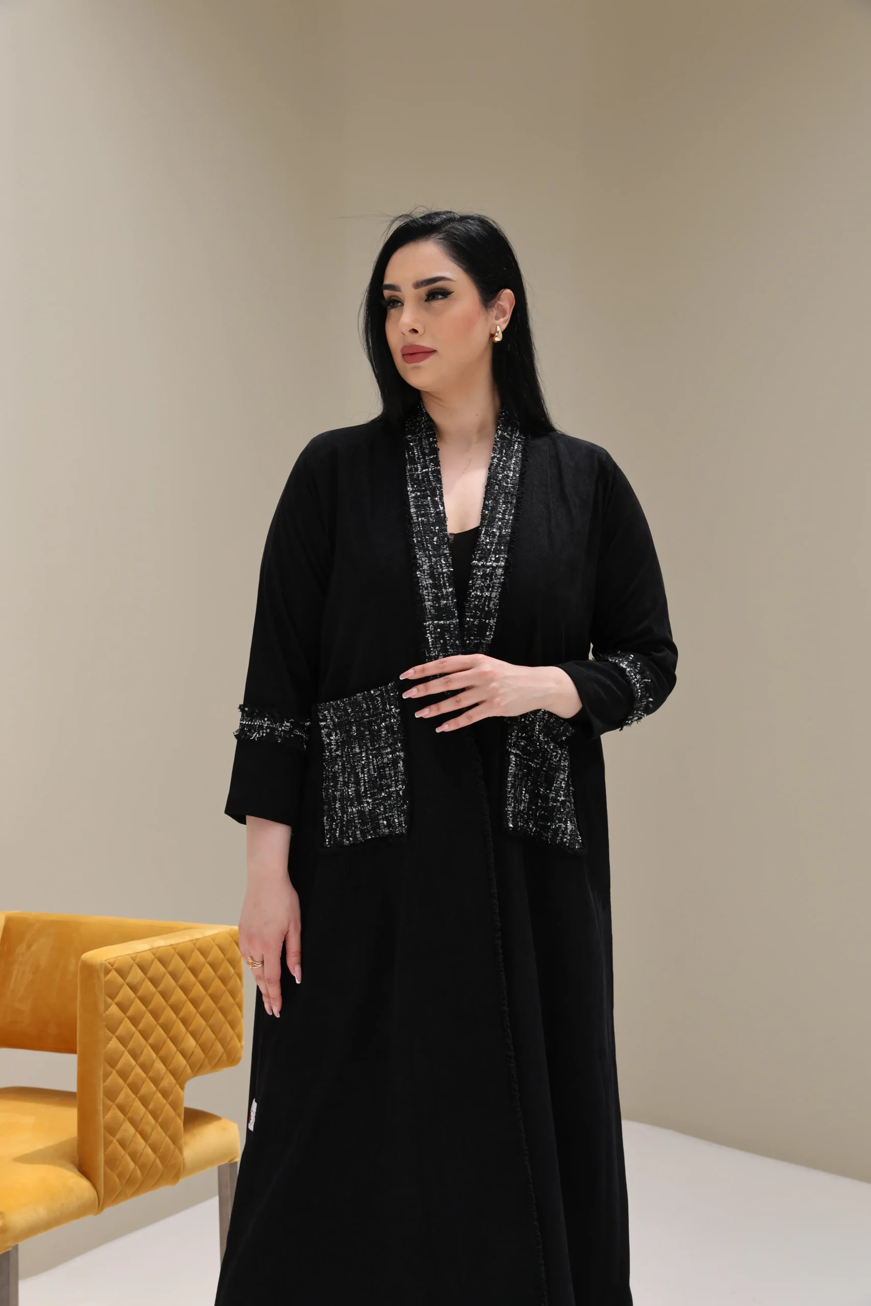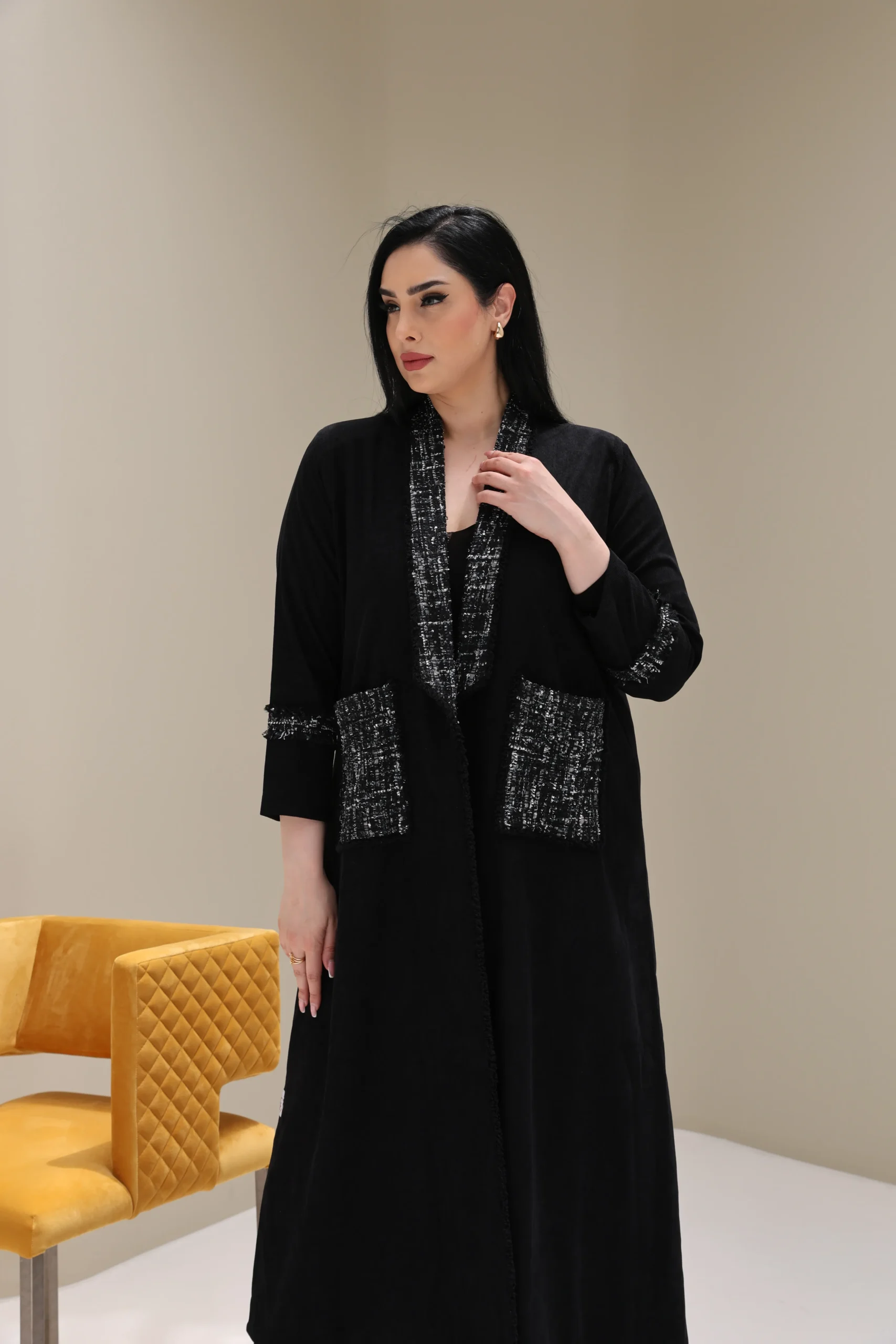 Black Abaya with Tweed Detailing – Luxe Edition