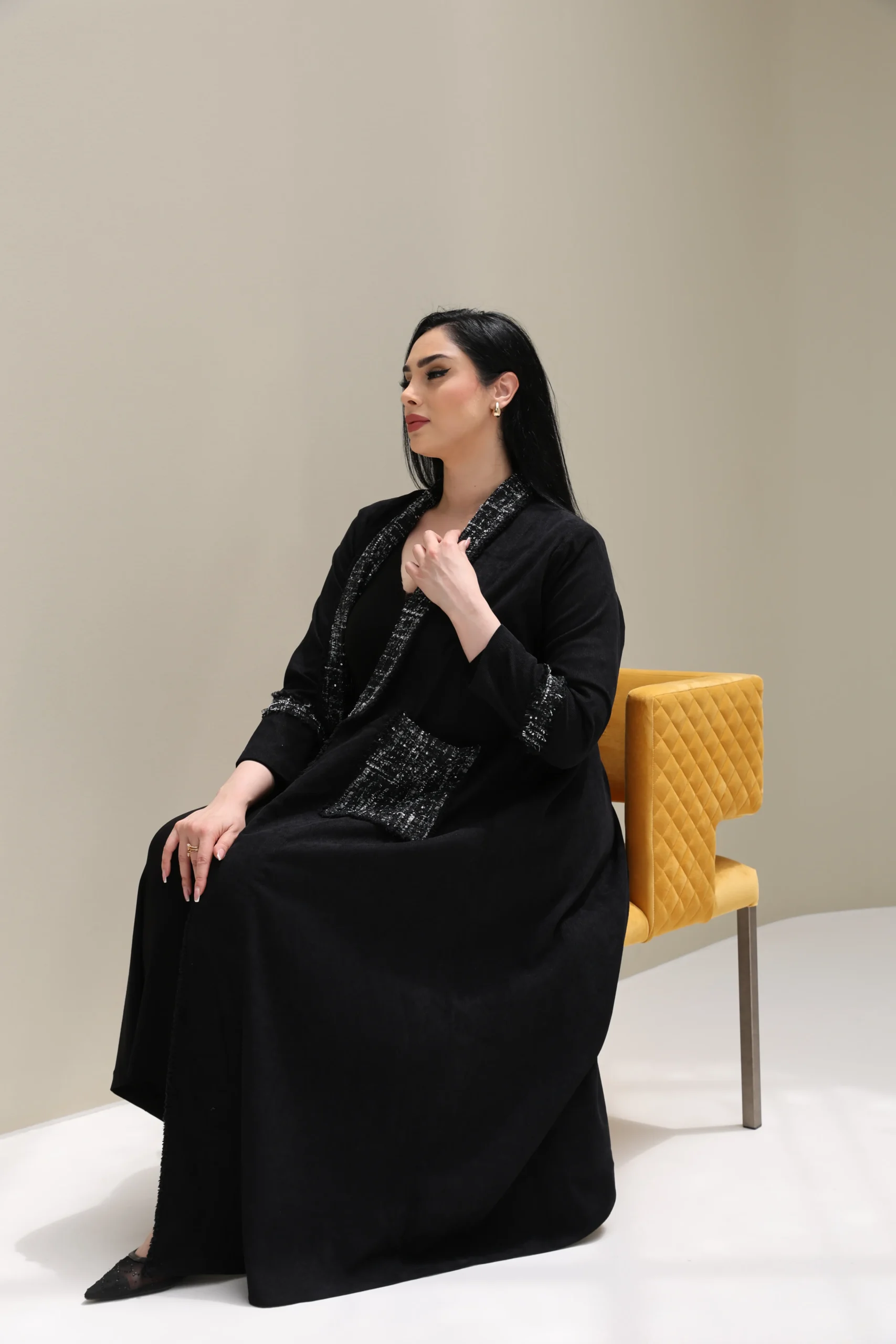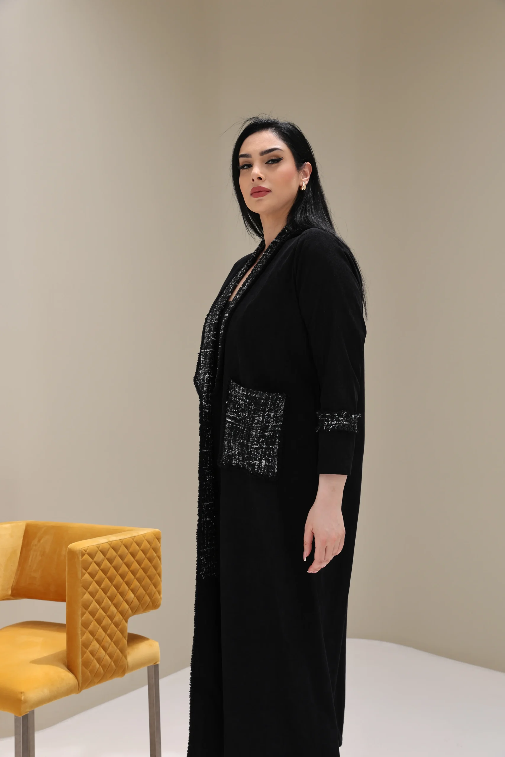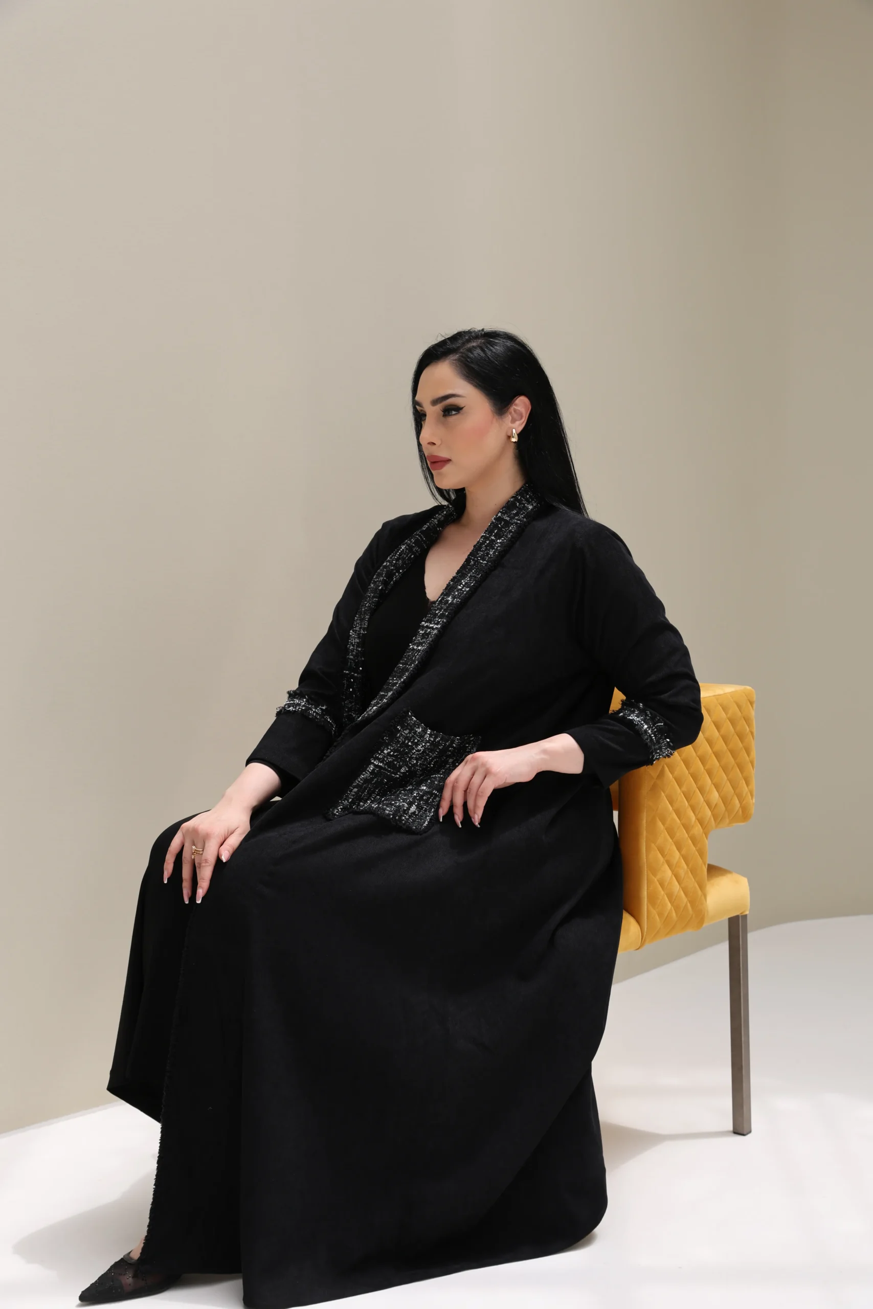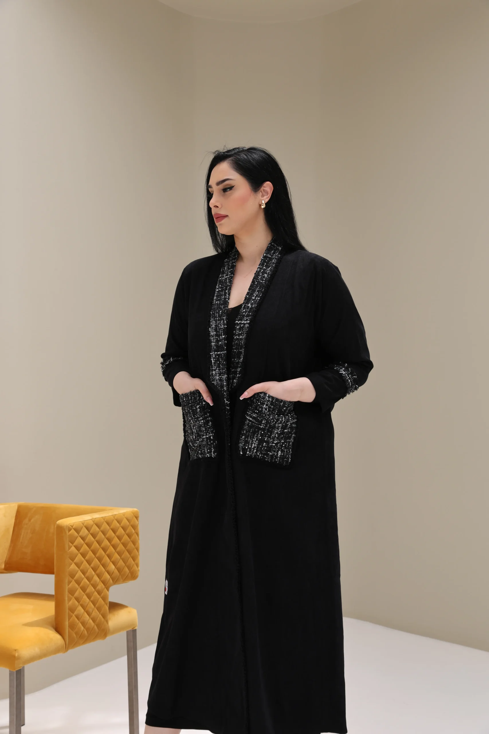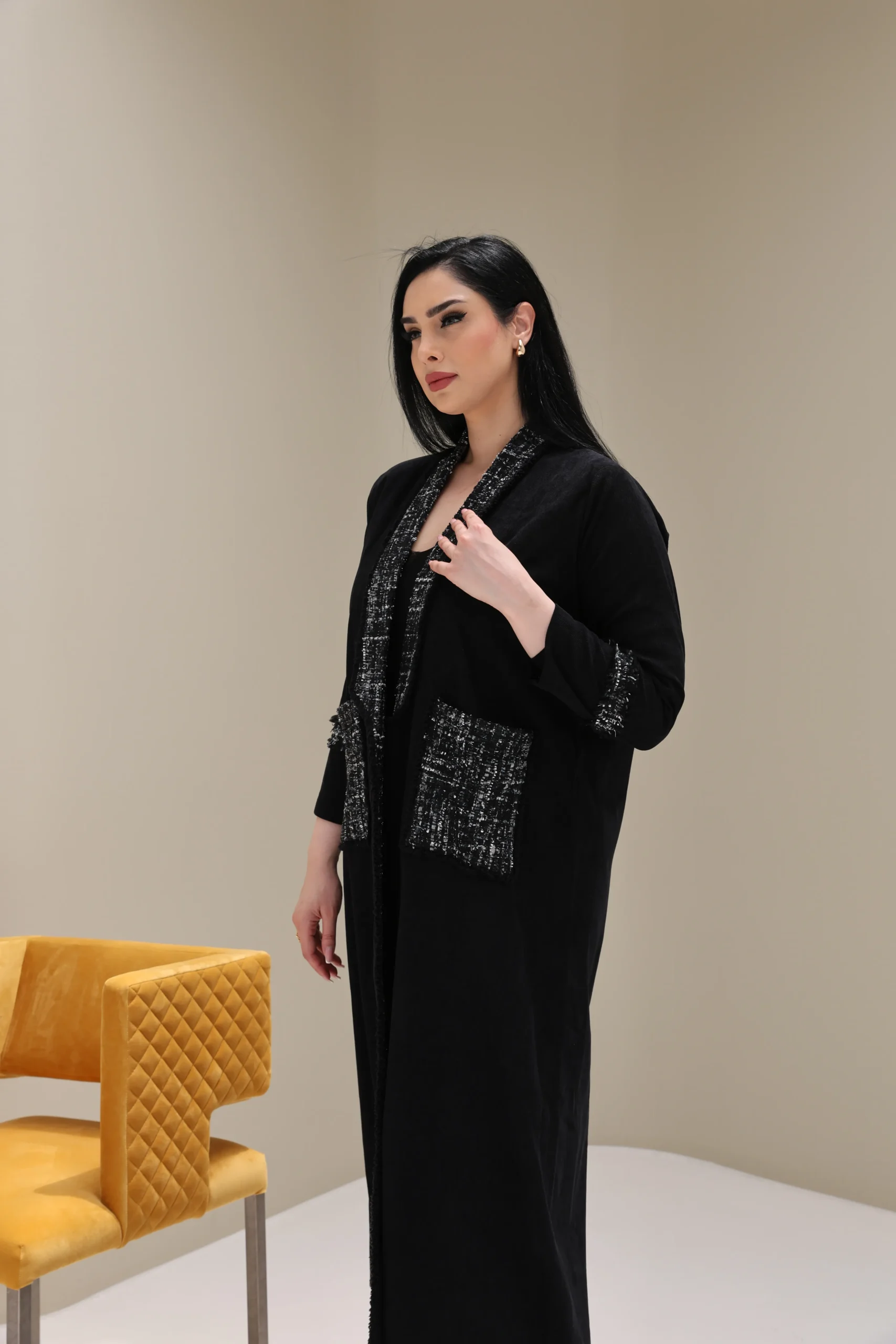 Black Abaya with Tweed Detailing – Luxe Edition