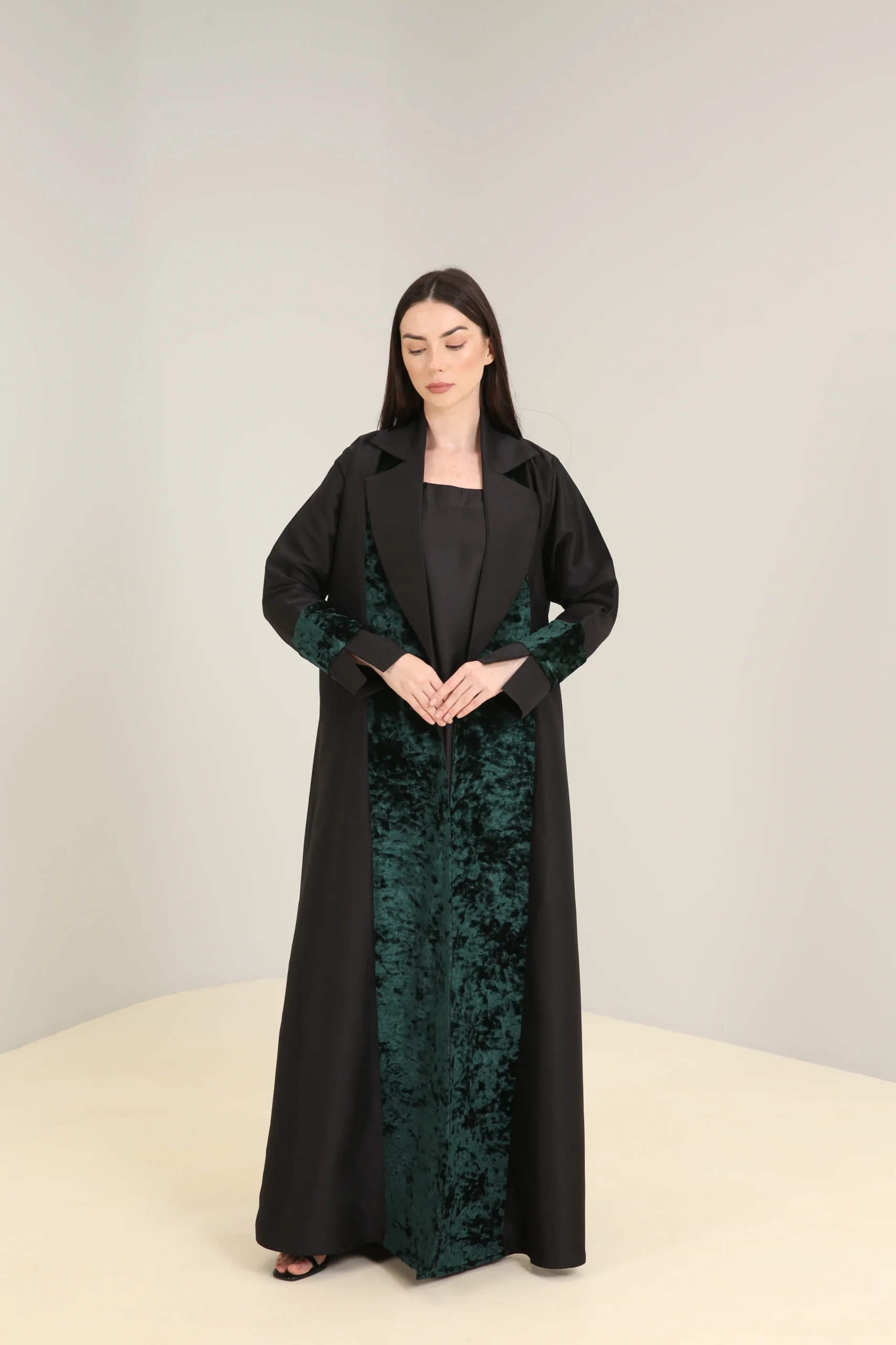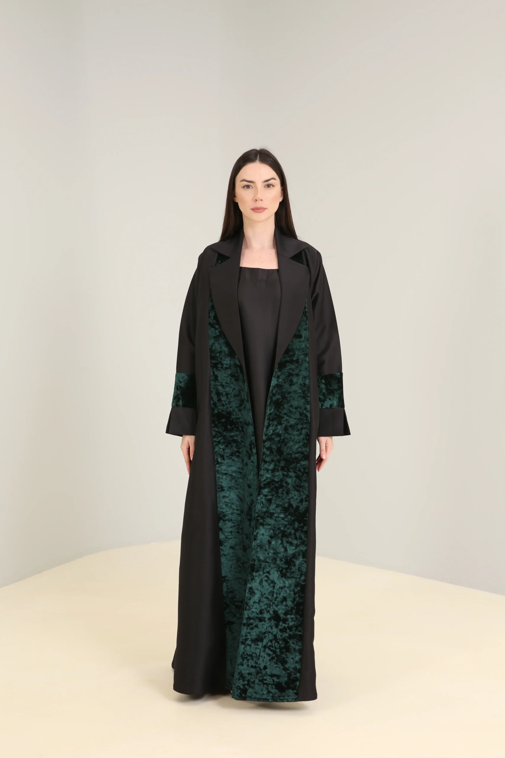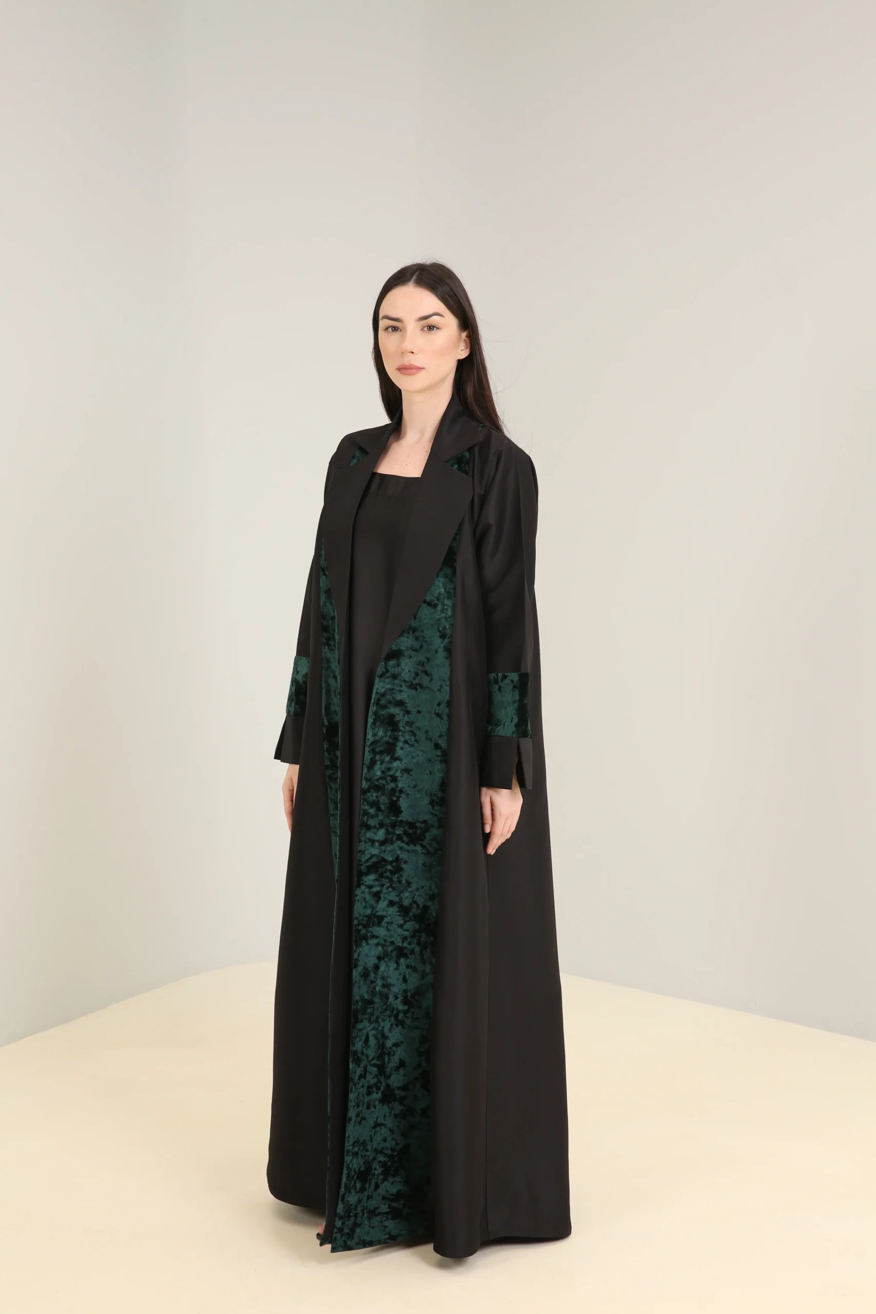 Cashmere Abaya with Green Floral Embossing – Luxe Edition