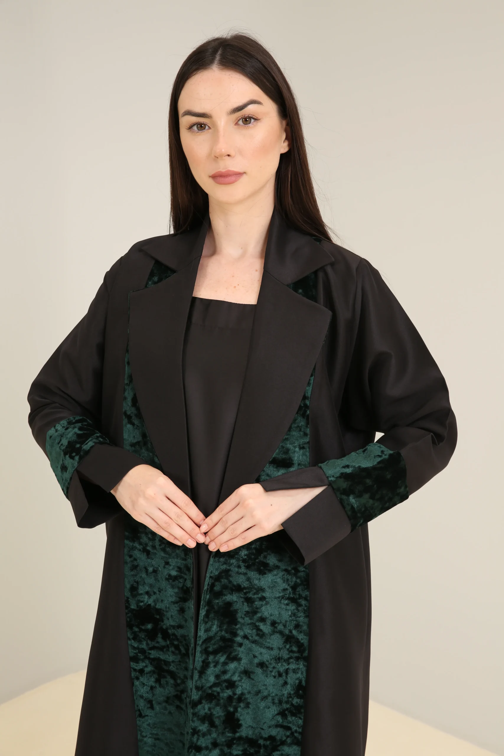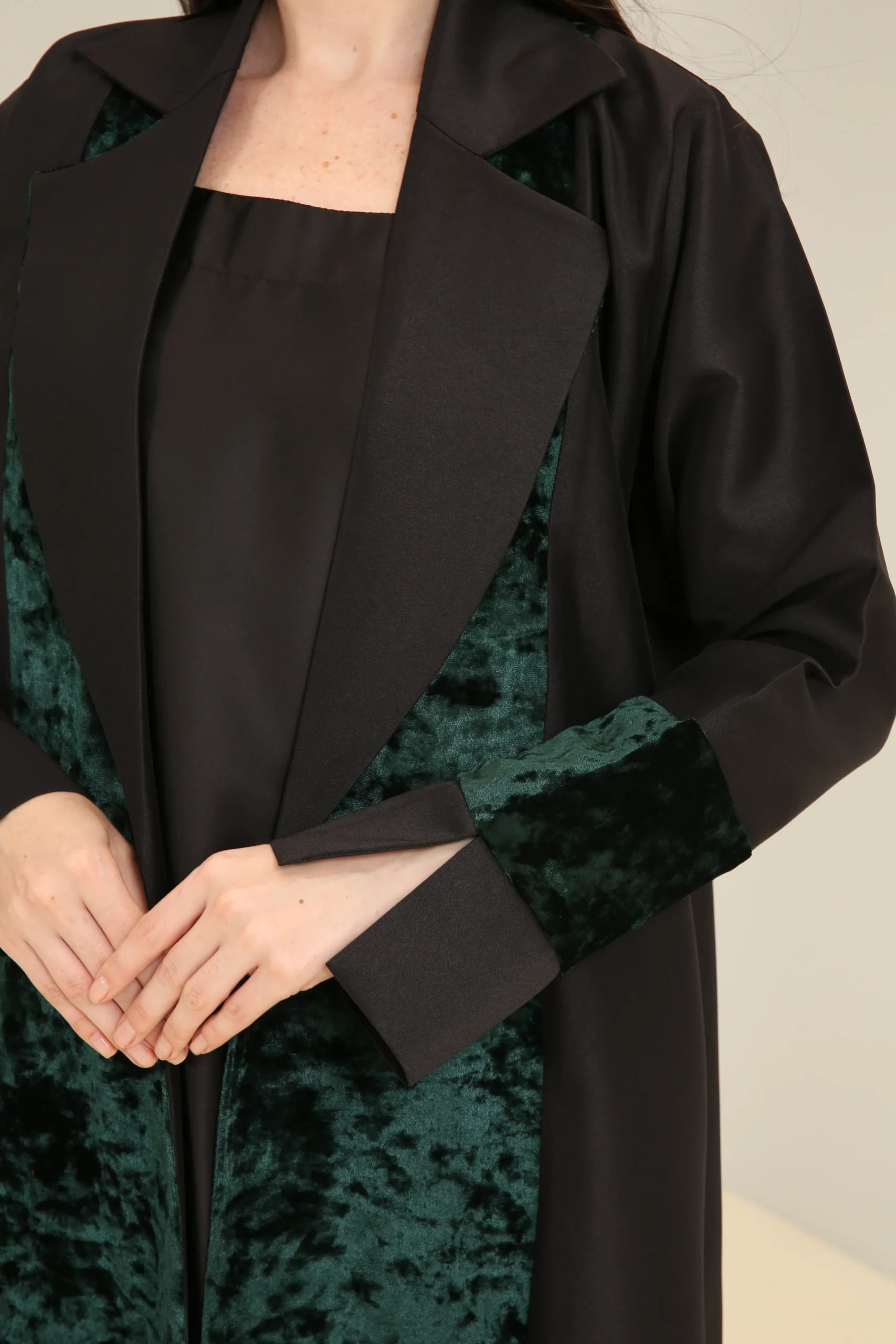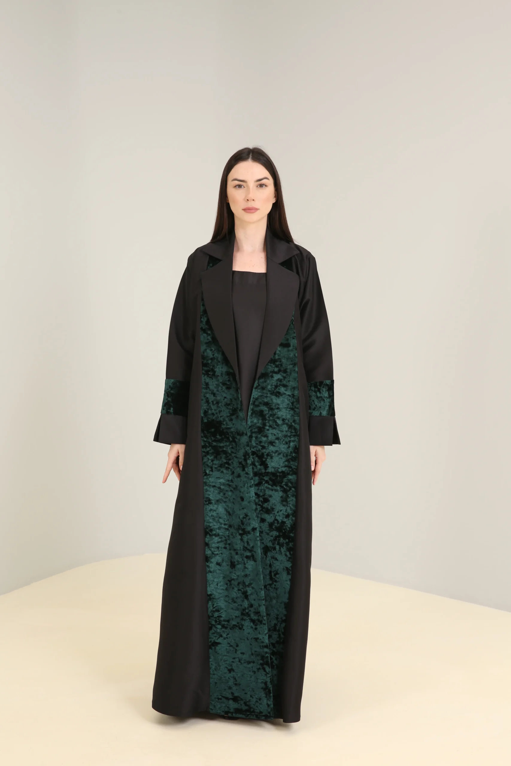 Cashmere Abaya with Green Floral Embossing – Luxe Edition