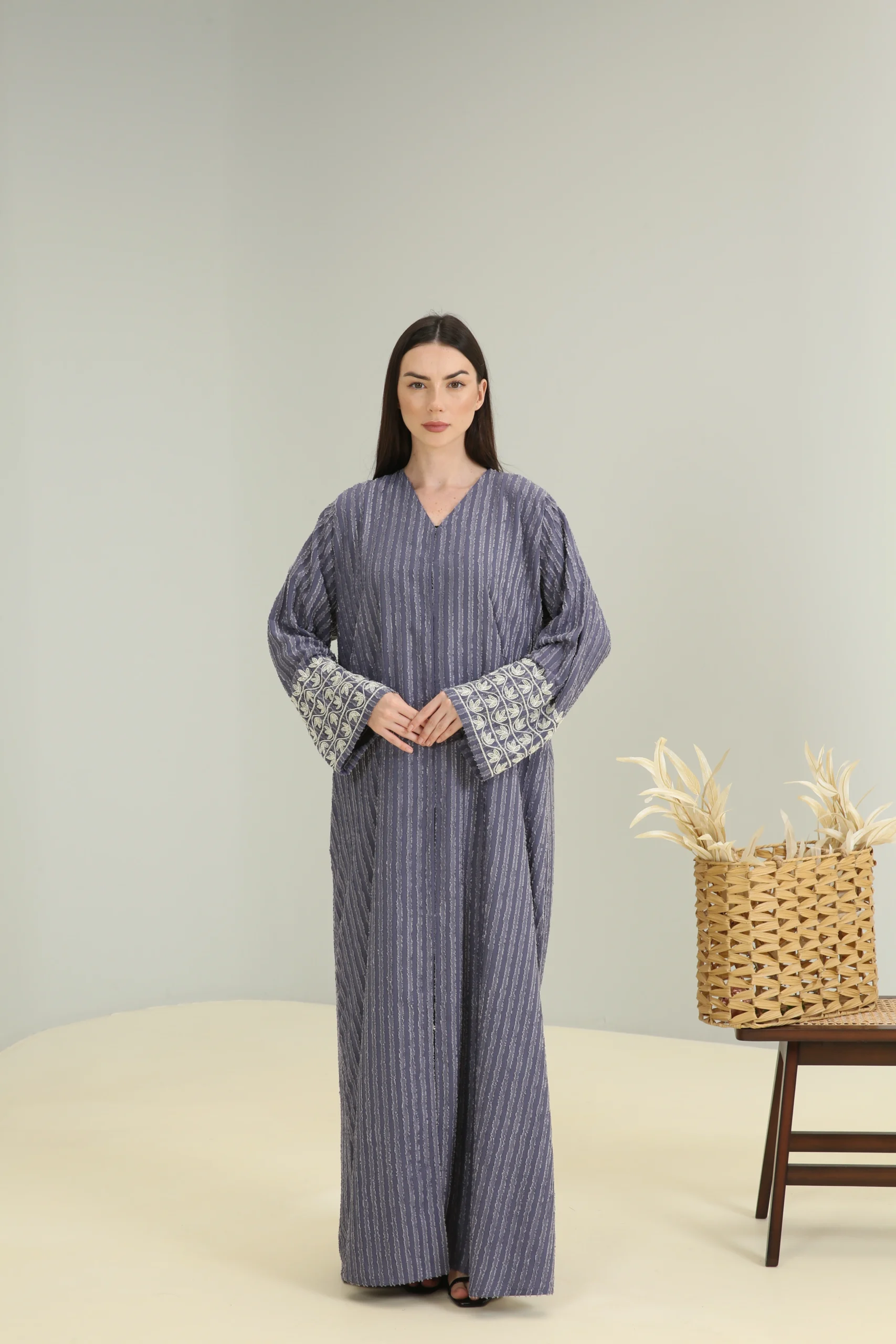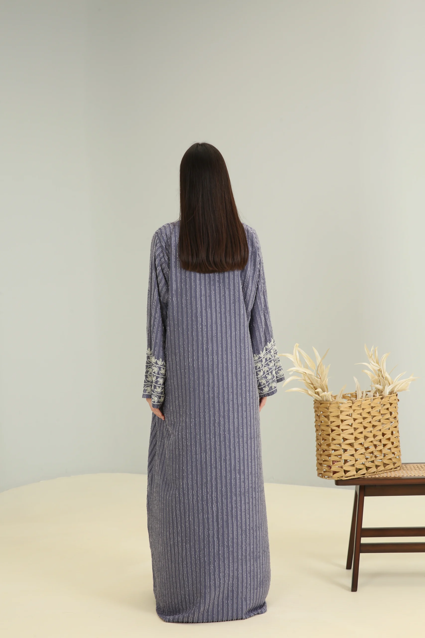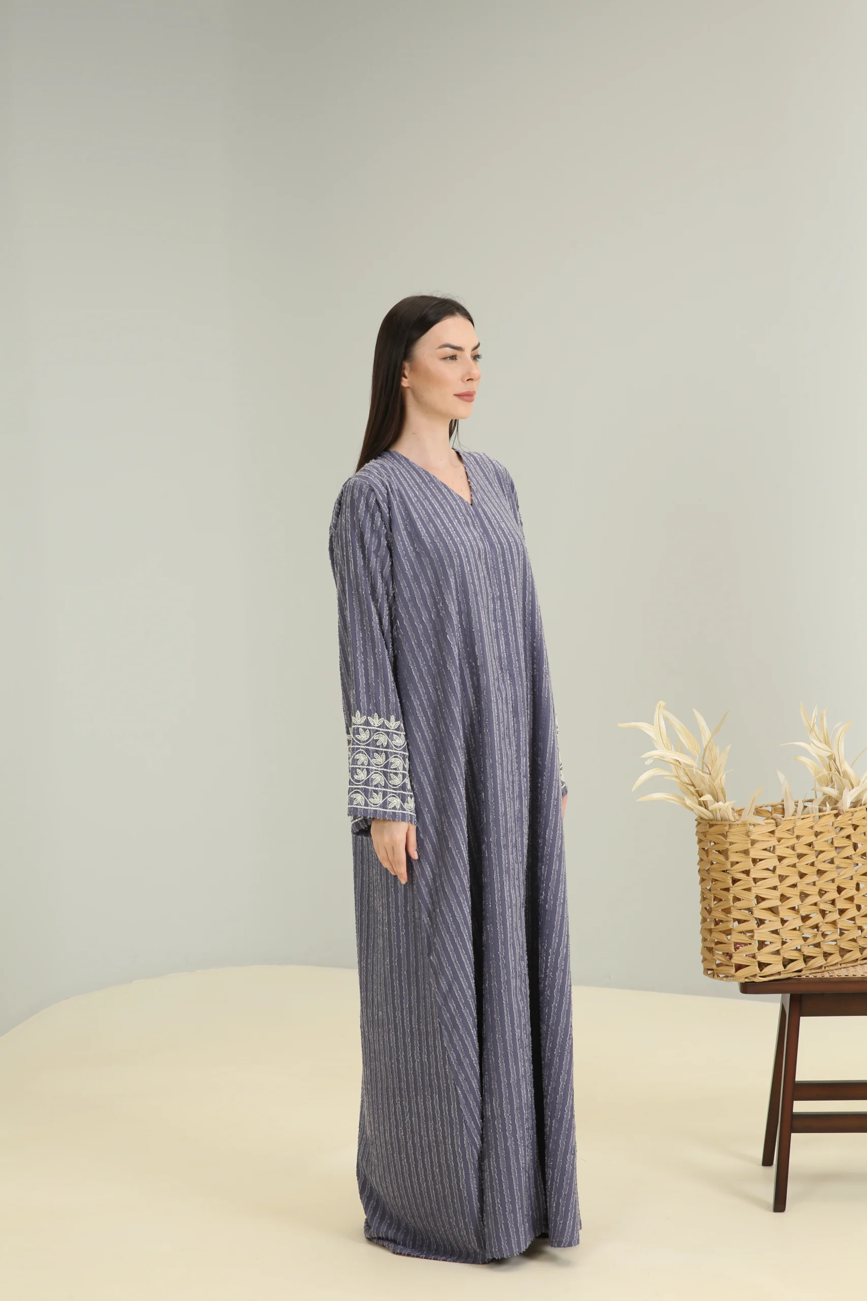 A jalabiya that reflects a love for unique texture and exquisite detail, perfect for the woman who chooses sophisticated style with a touch of ethereal beauty.