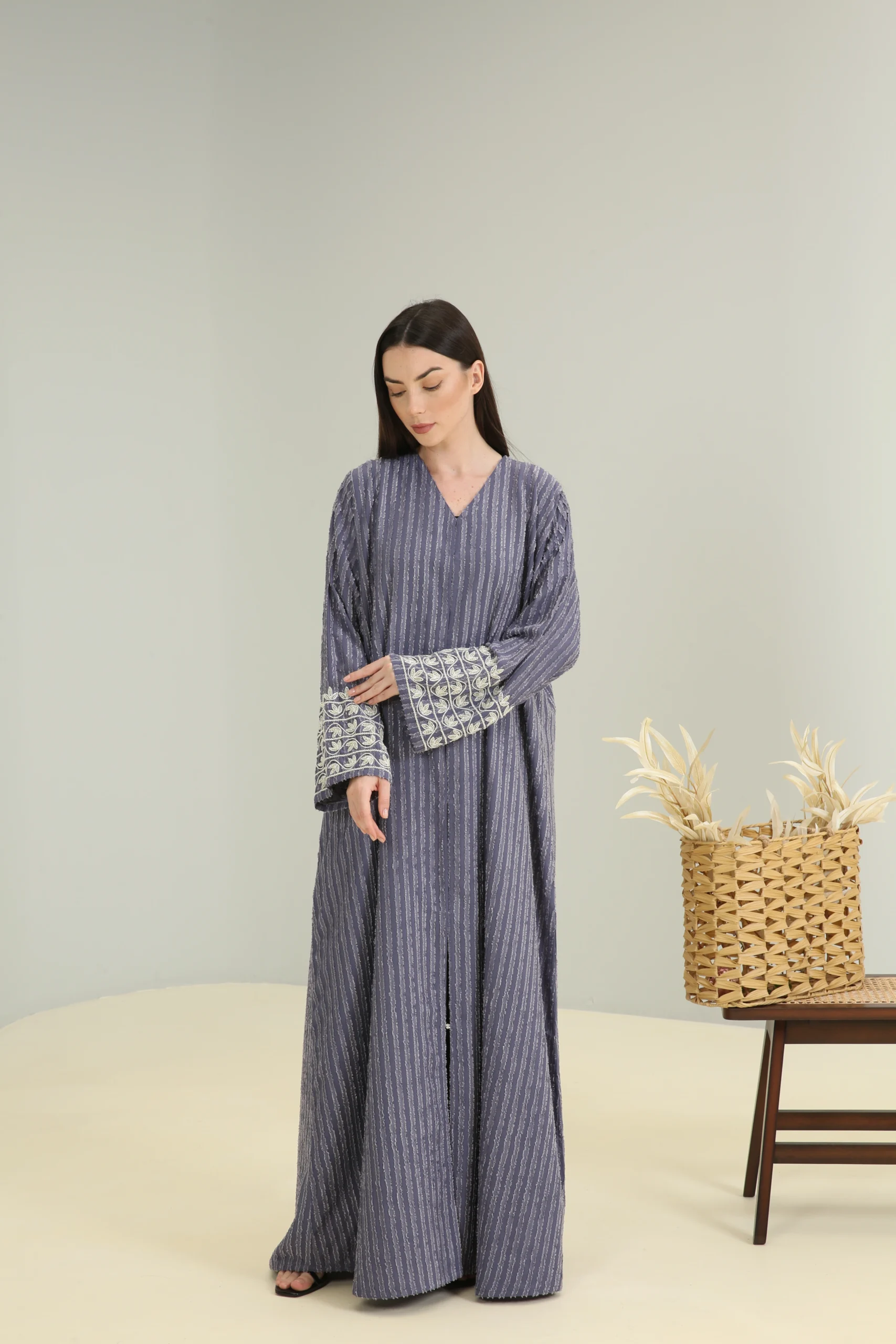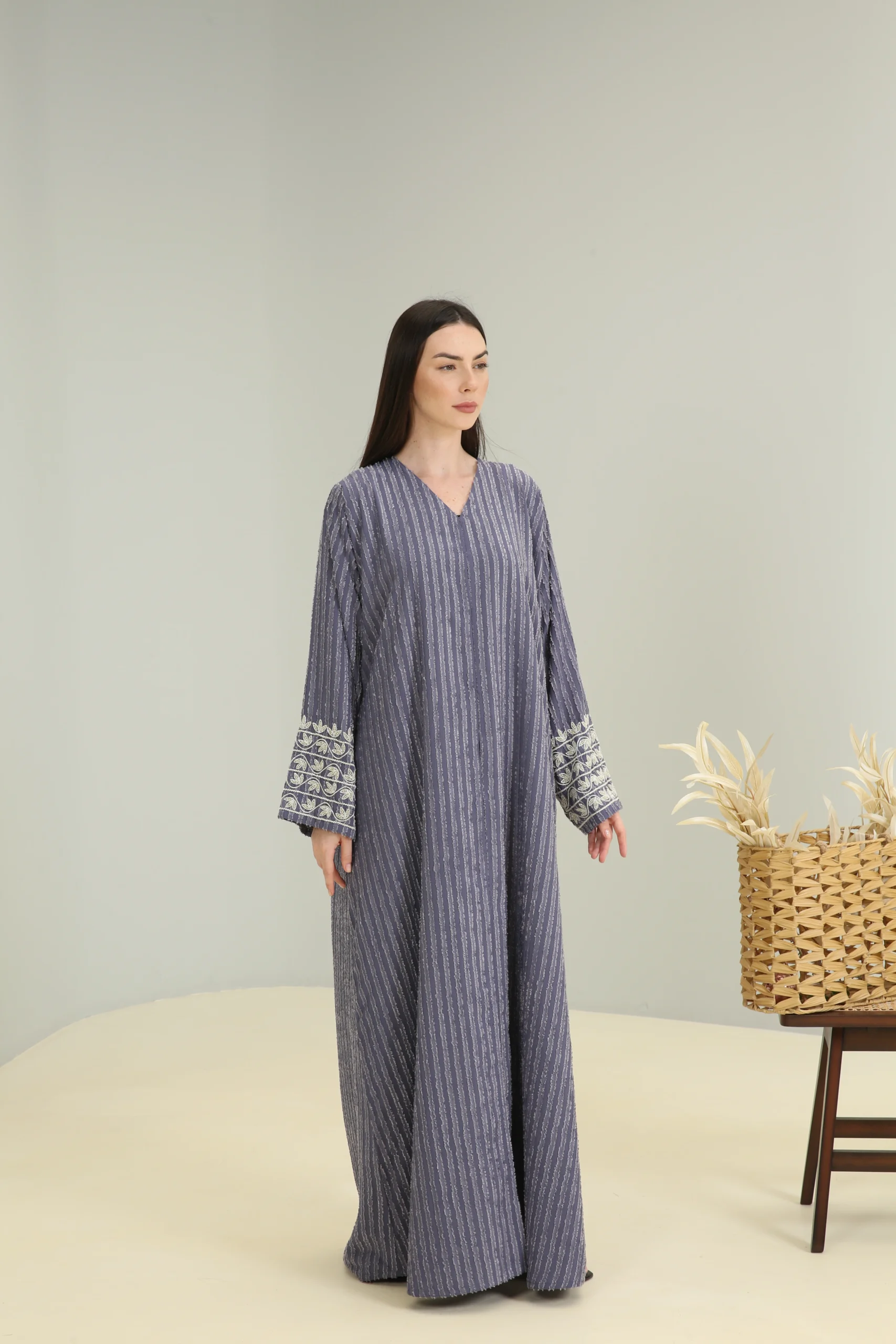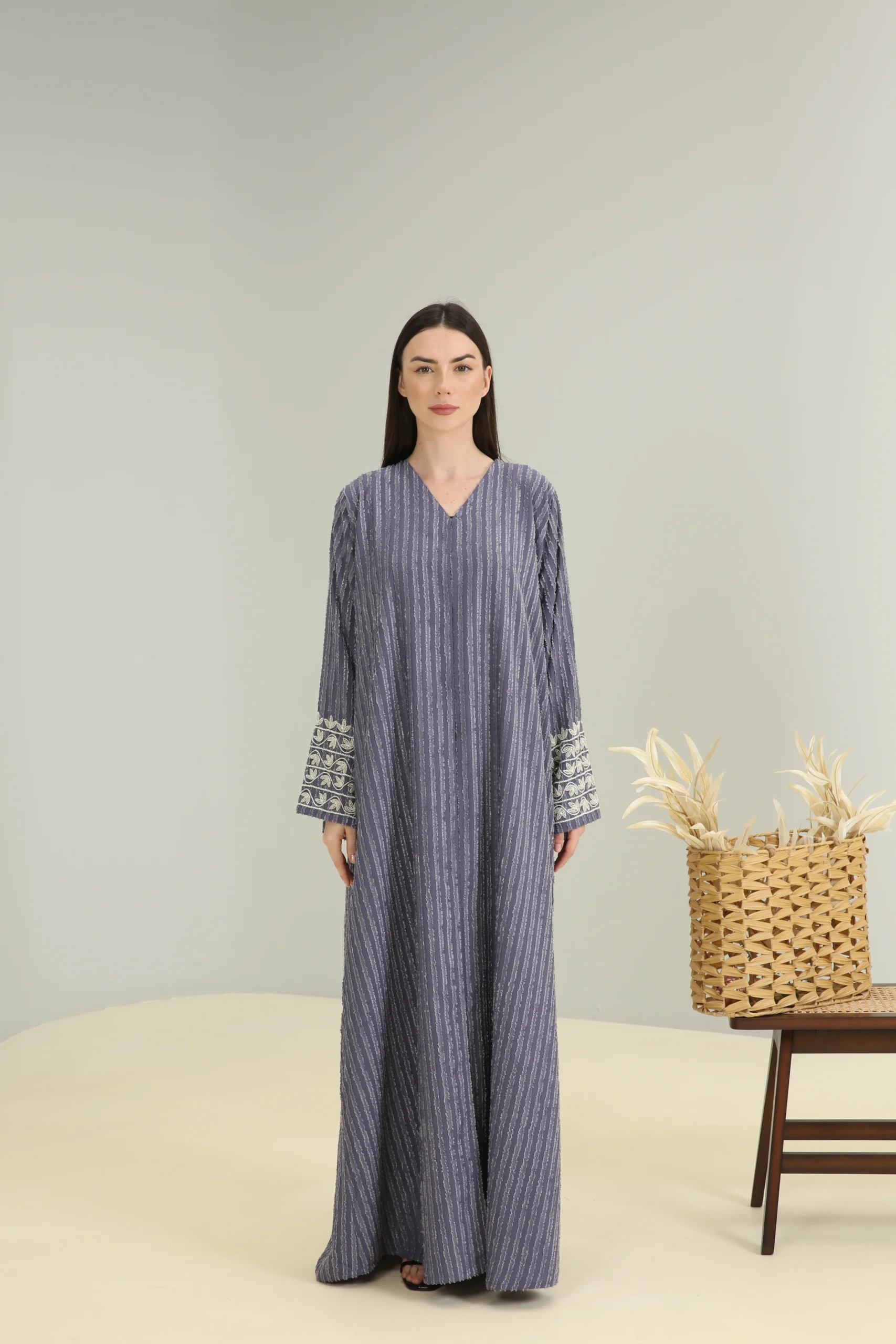 A jalabiya that reflects a love for unique texture and exquisite detail, perfect for the woman who chooses sophisticated style with a touch of ethereal beauty.