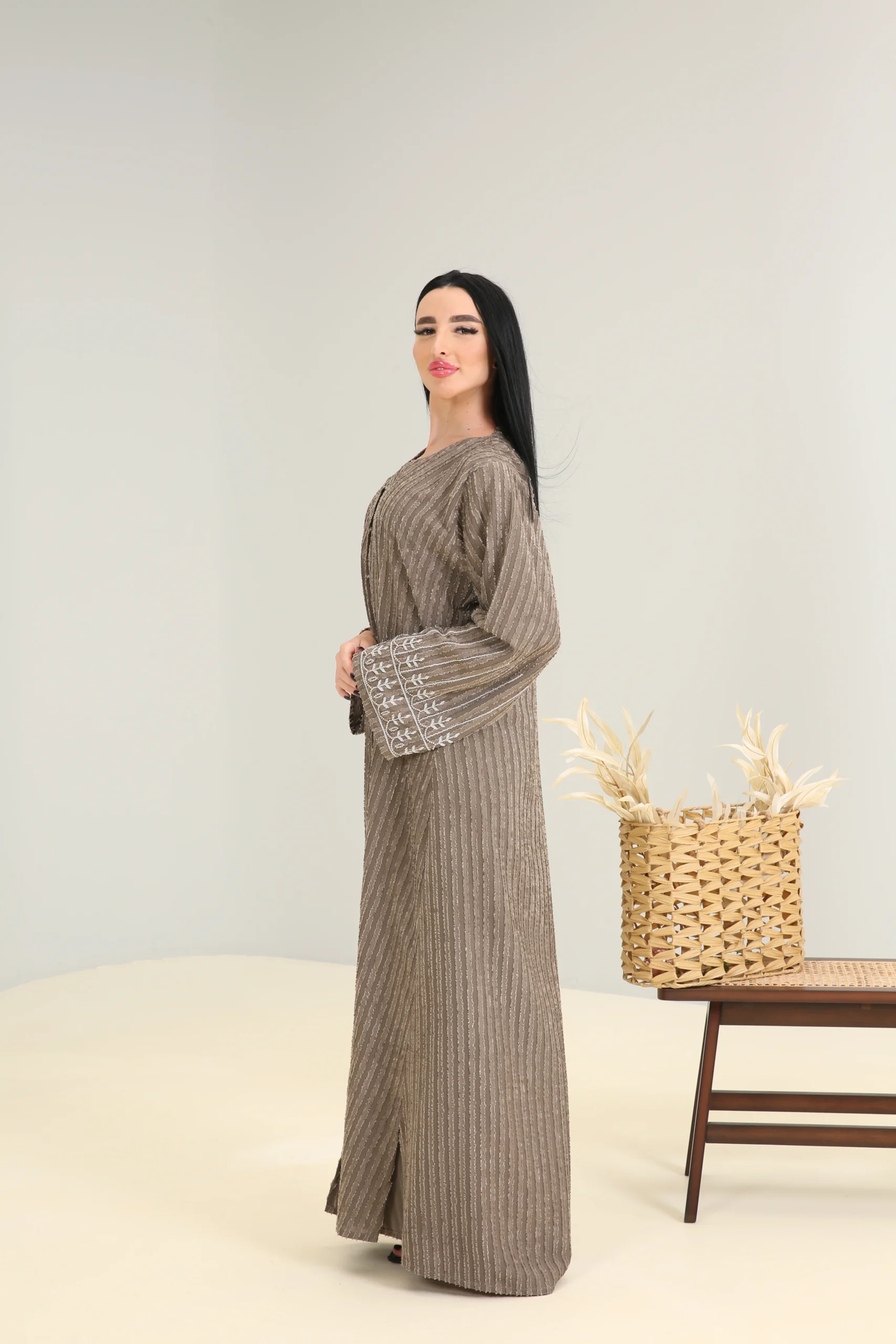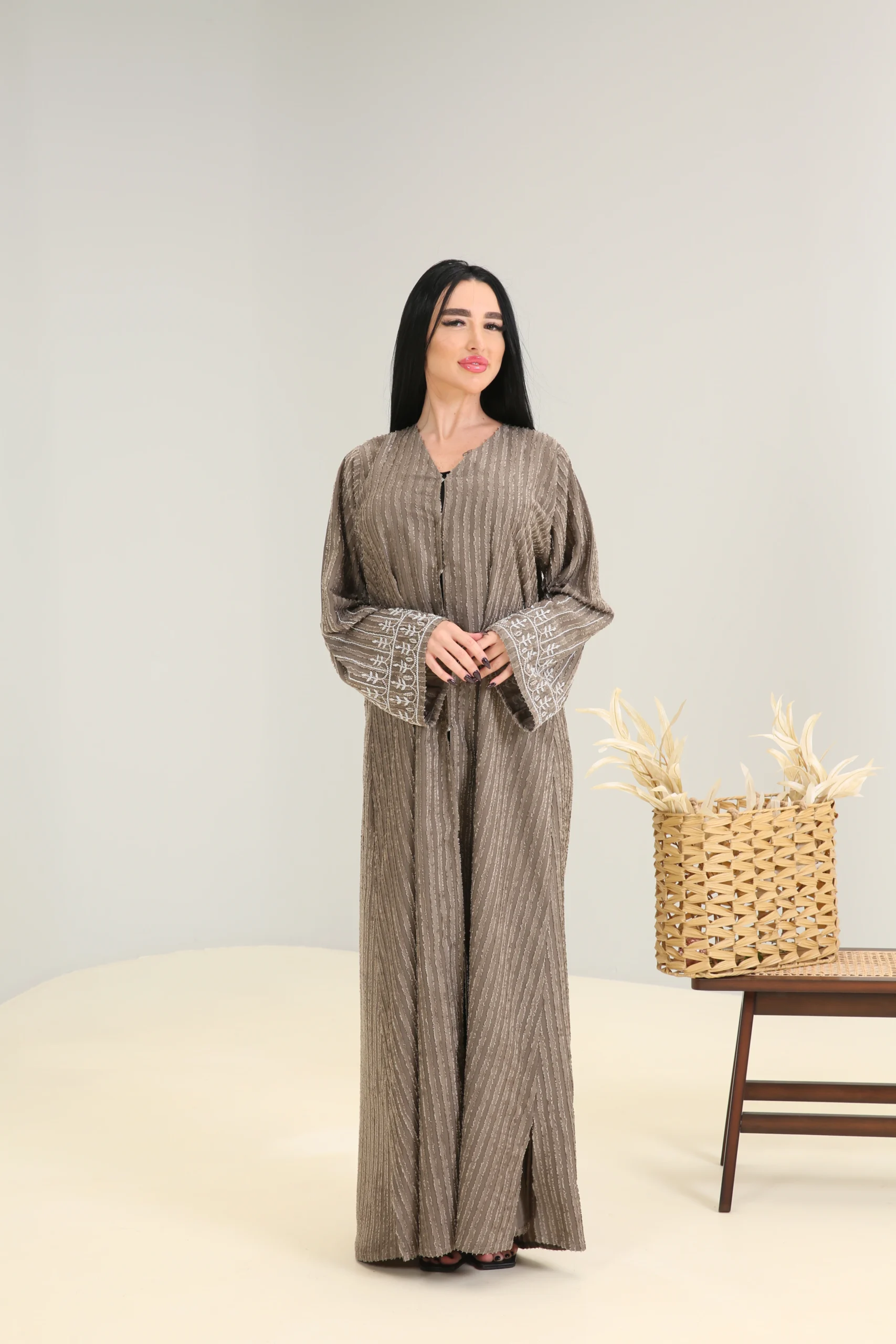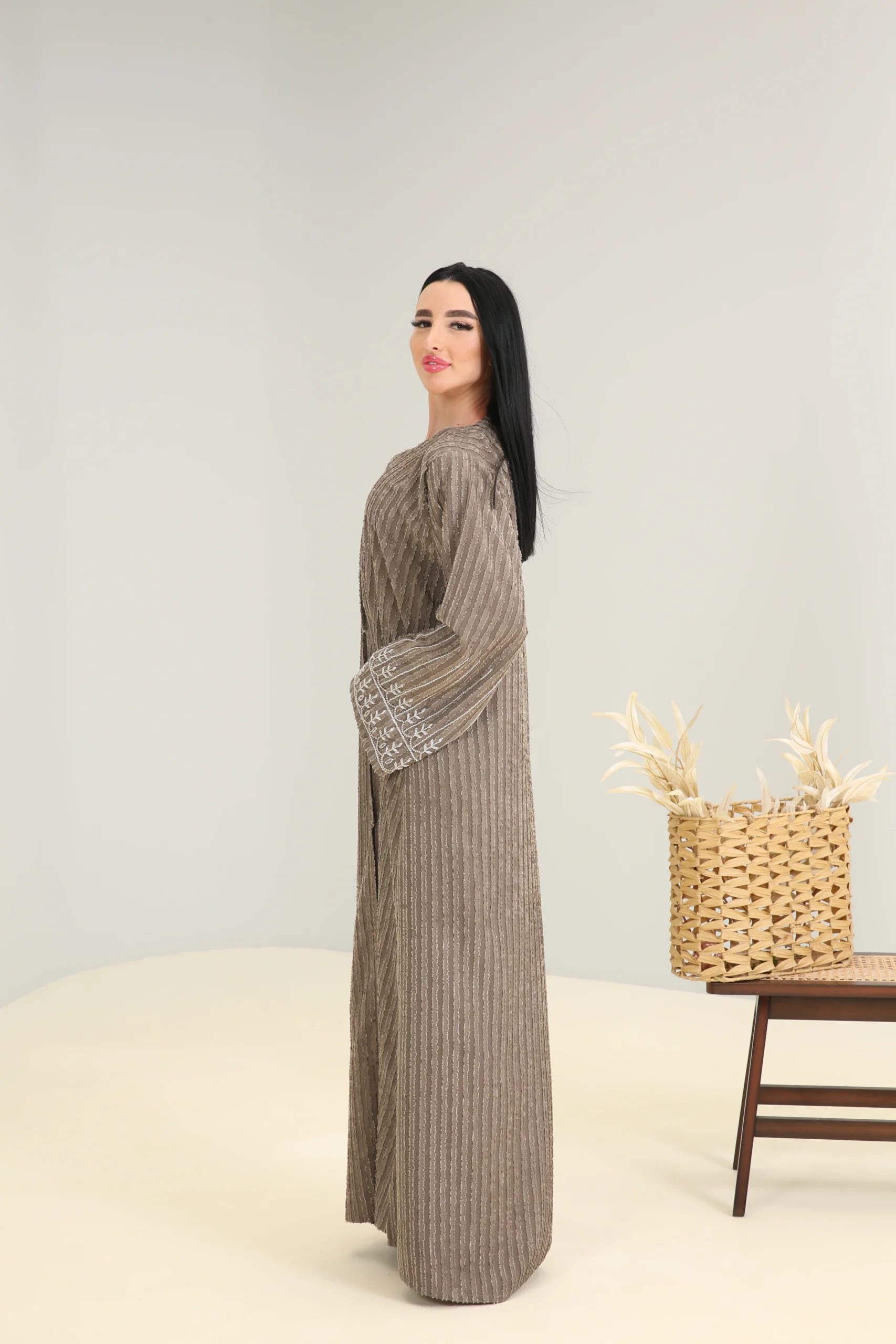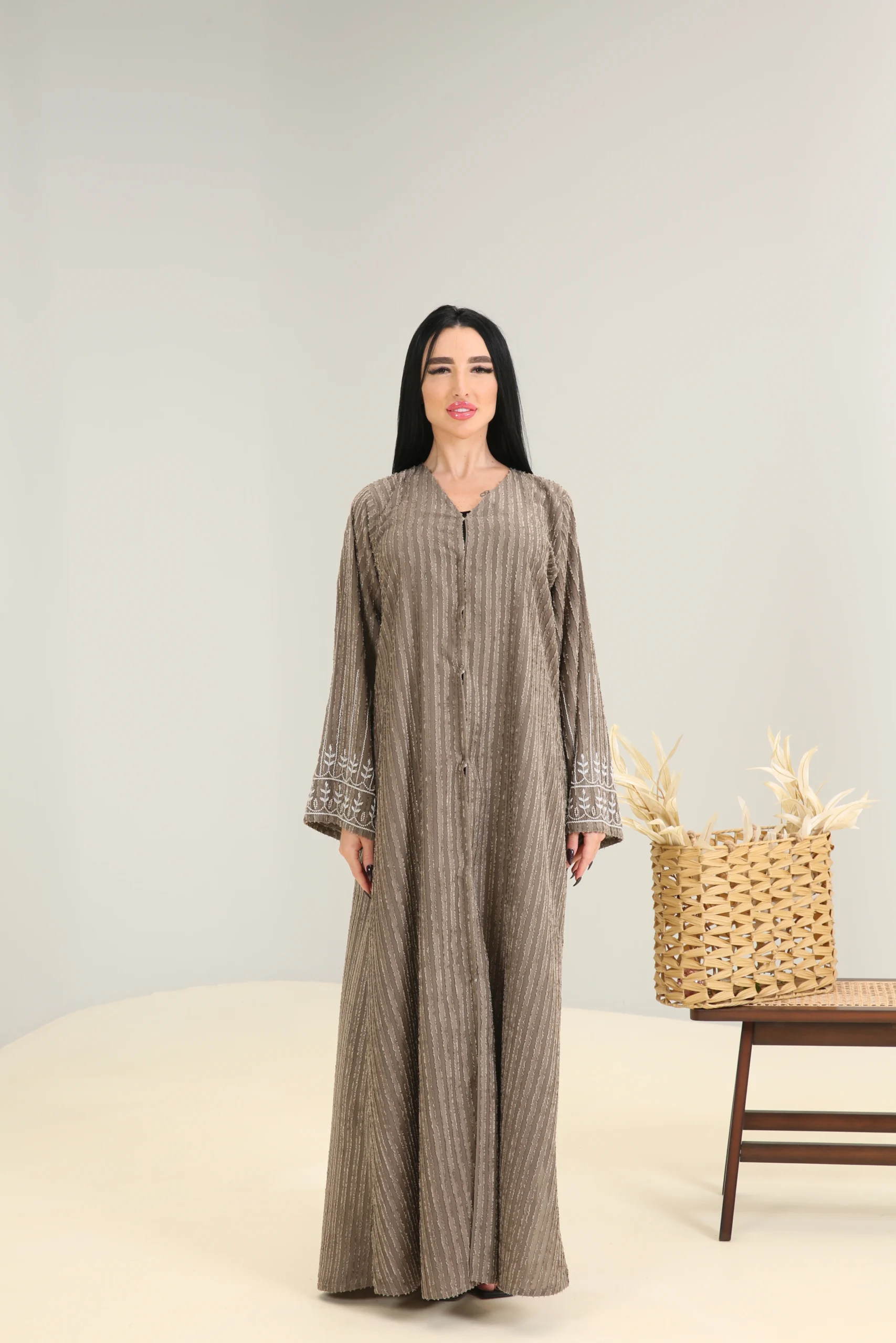 An abaya that reflects a love for rich texture and intricate detail, perfect for the woman who chooses to shine with effortless grace and style.