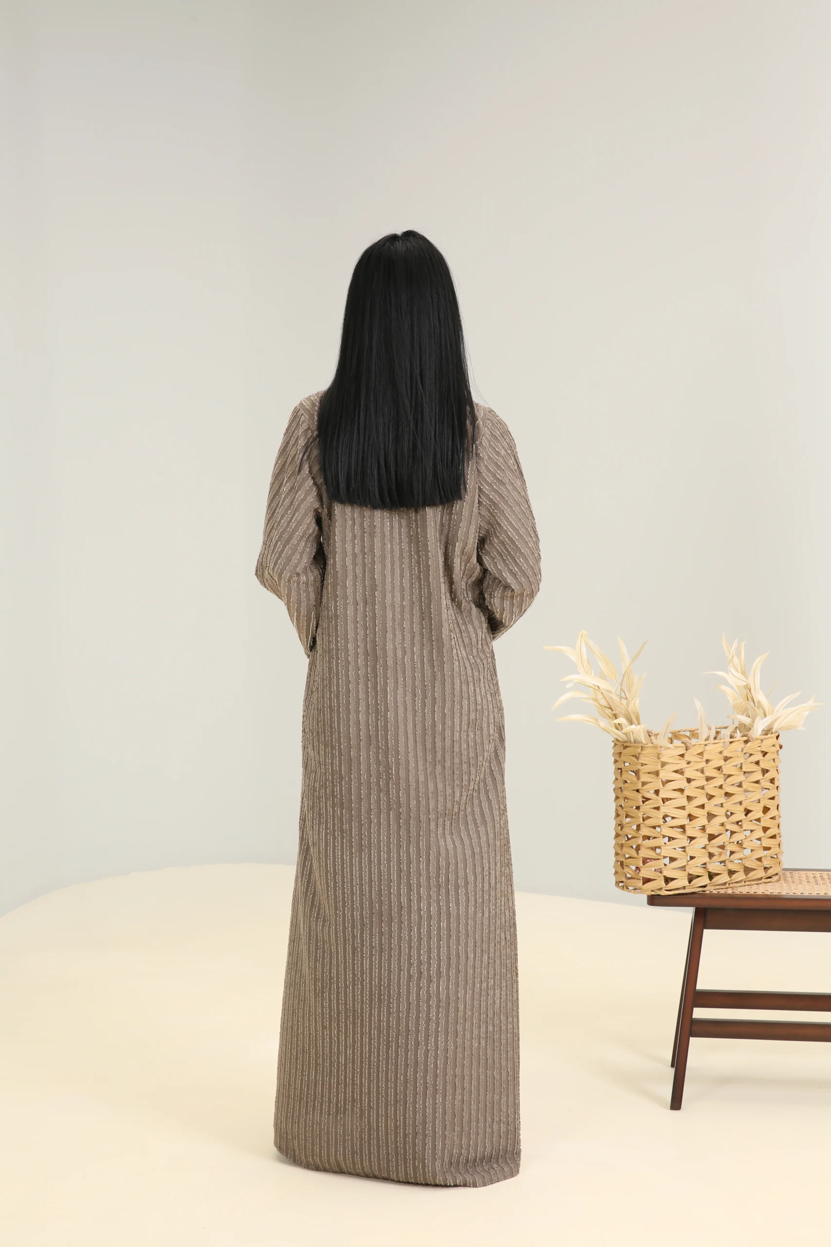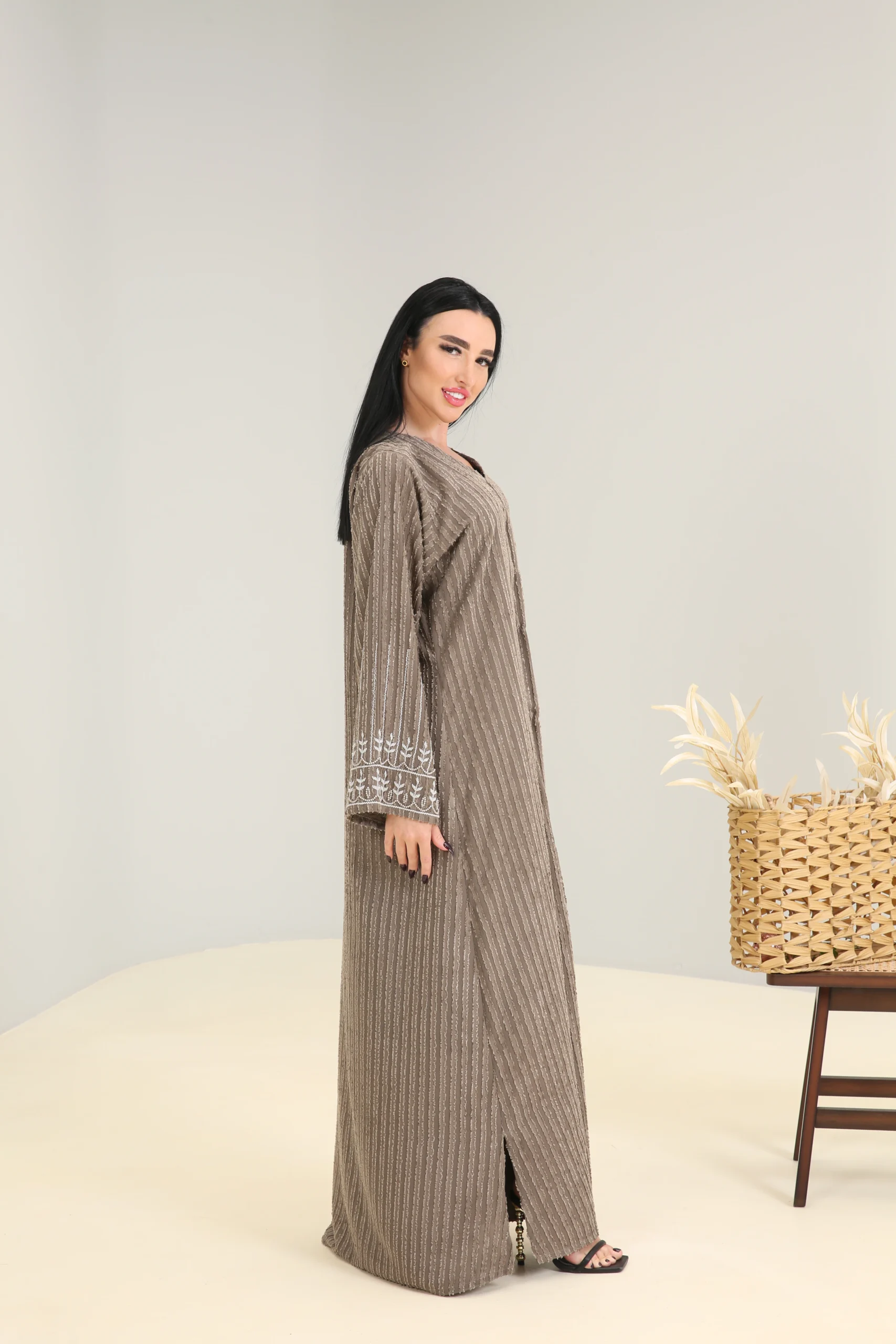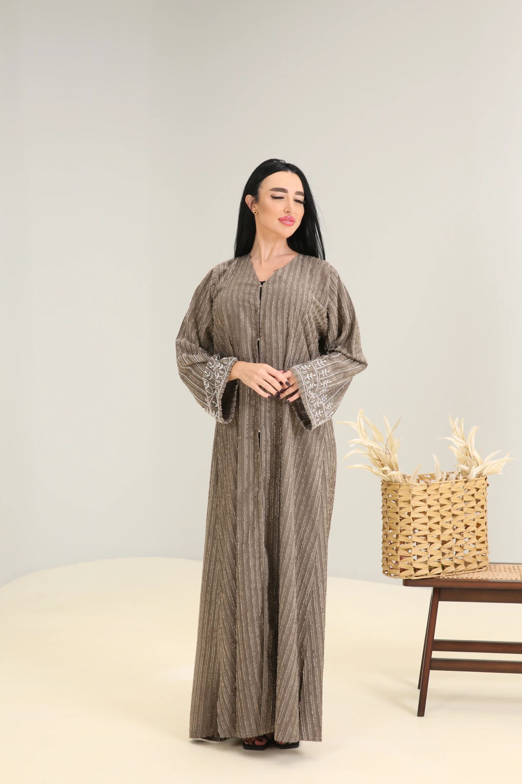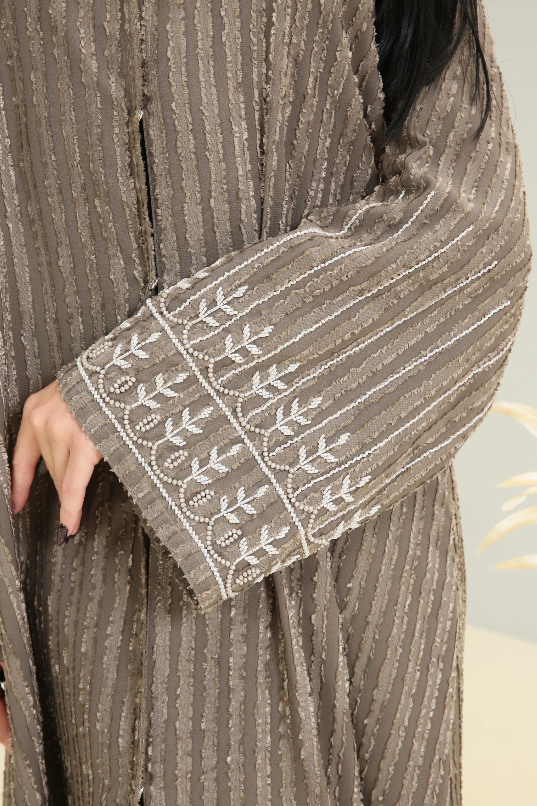 An abaya that reflects a love for rich texture and intricate detail, perfect for the woman who chooses to shine with effortless grace and style.