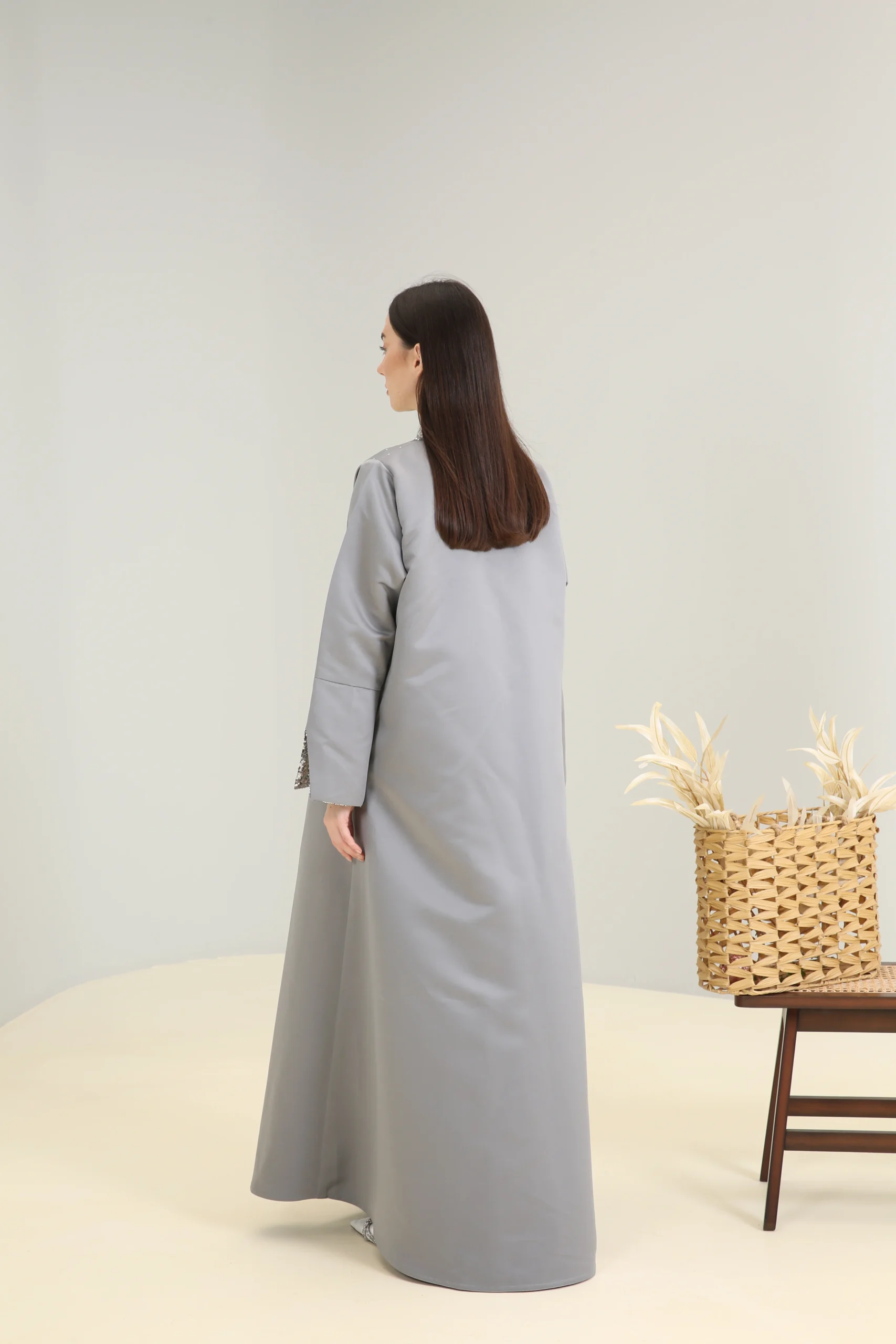 An abaya that reflects powerful elegance and sophisticated sparkle, perfect for the woman who chooses to shine with confidence and modern style.