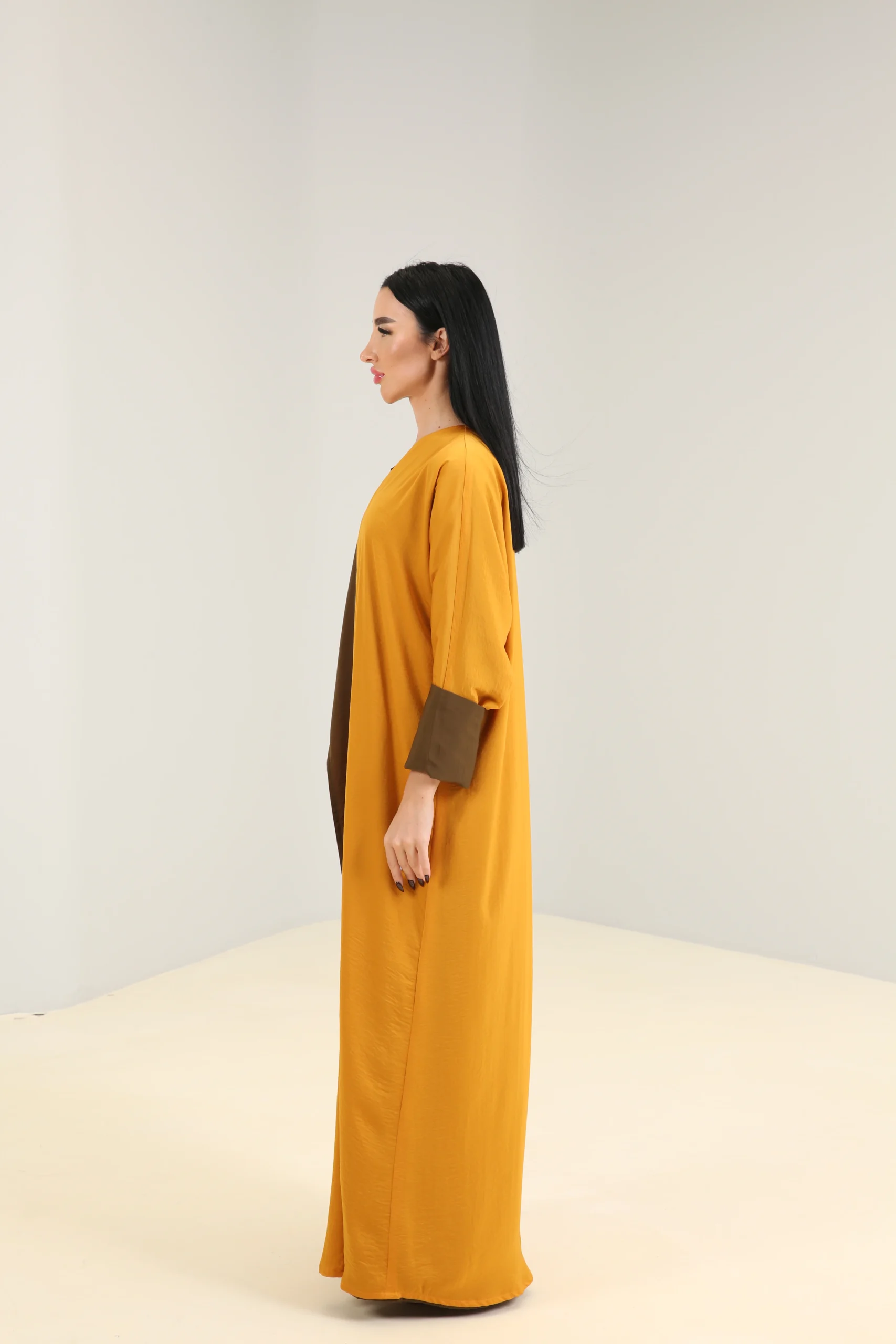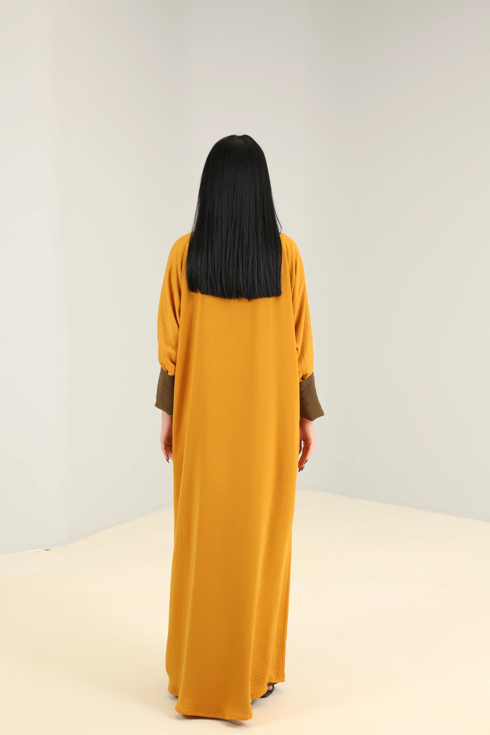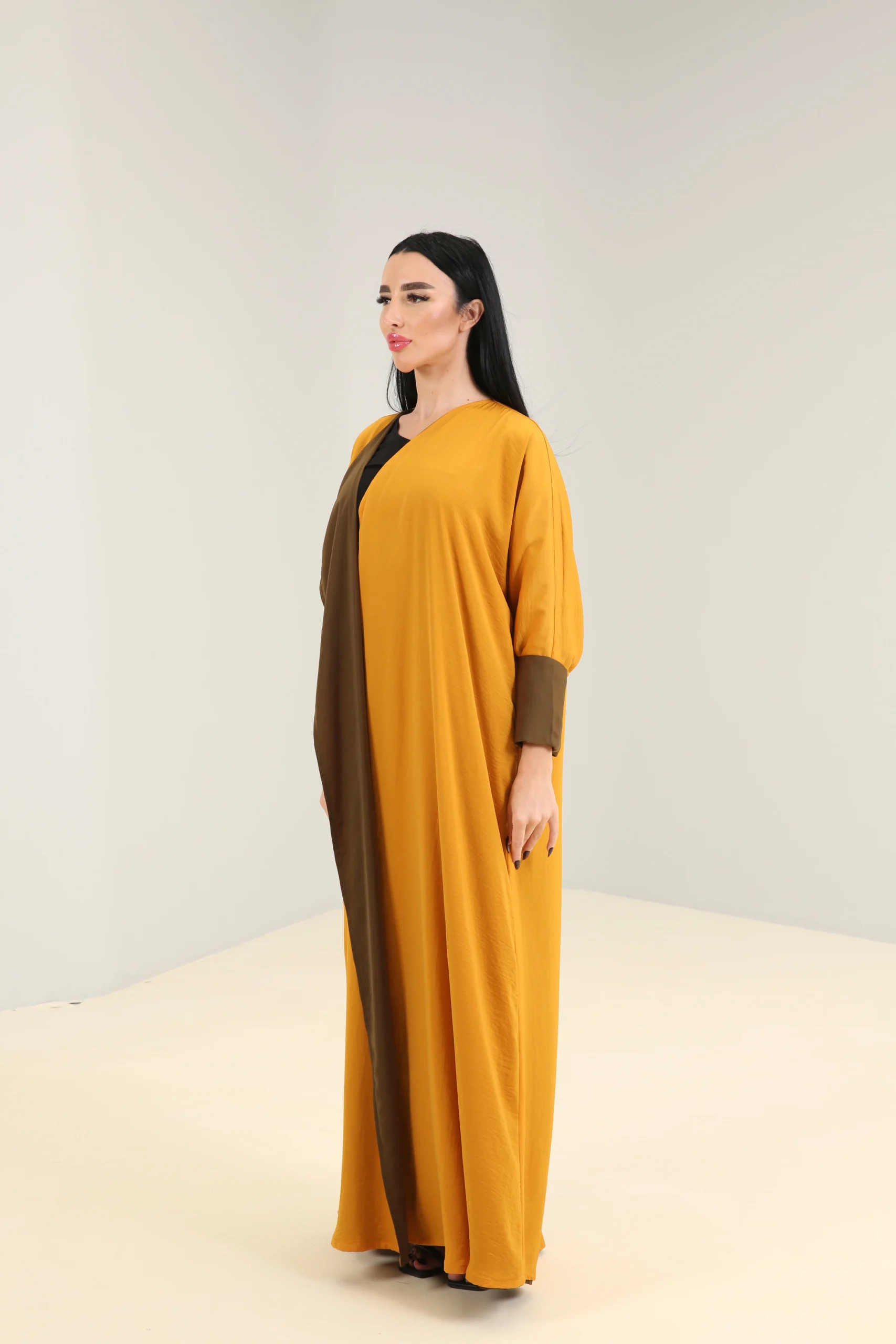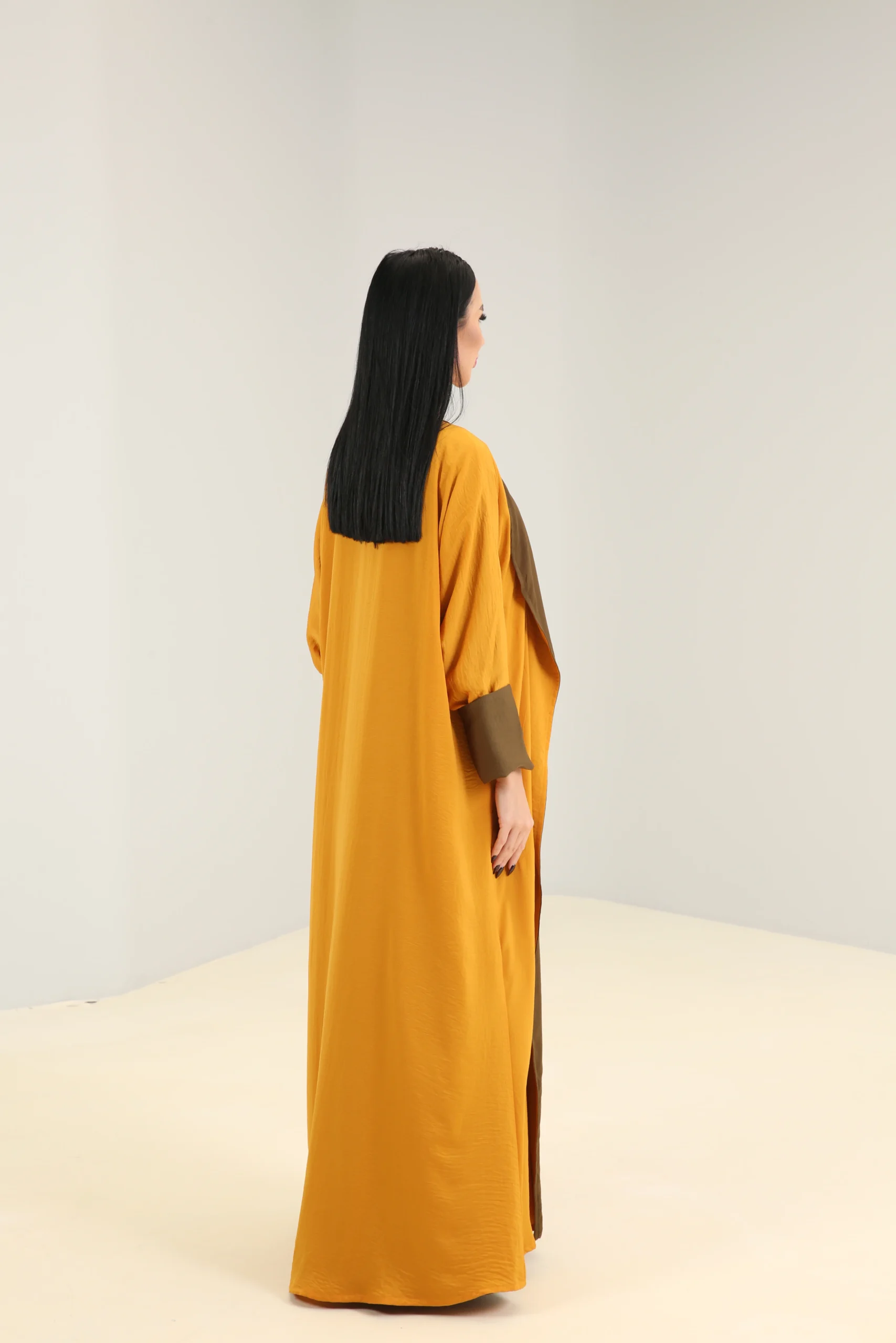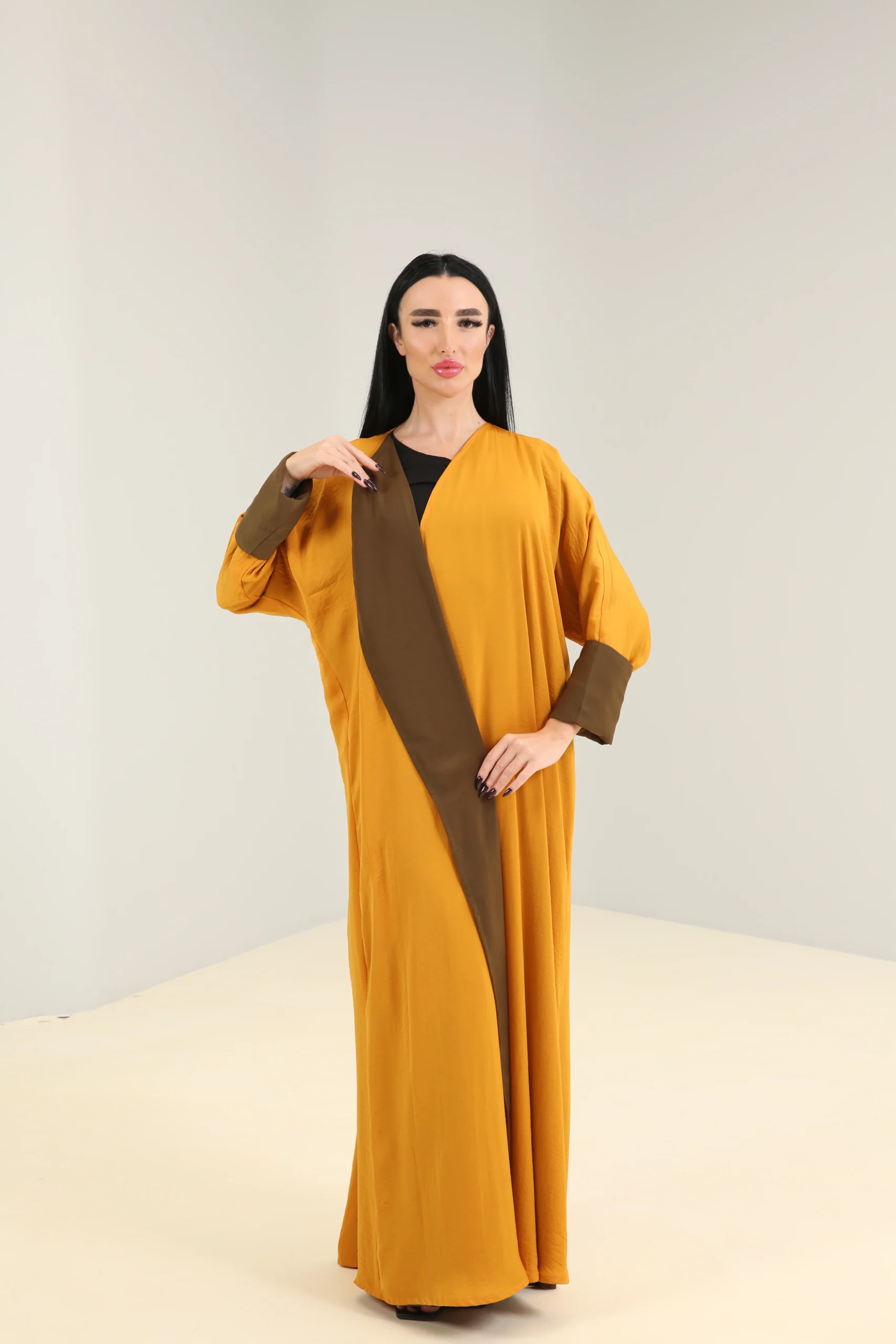An abaya that reflects powerful style and sunny confidence, perfect for the woman who chooses to shine with a bold yet graceful elegance.