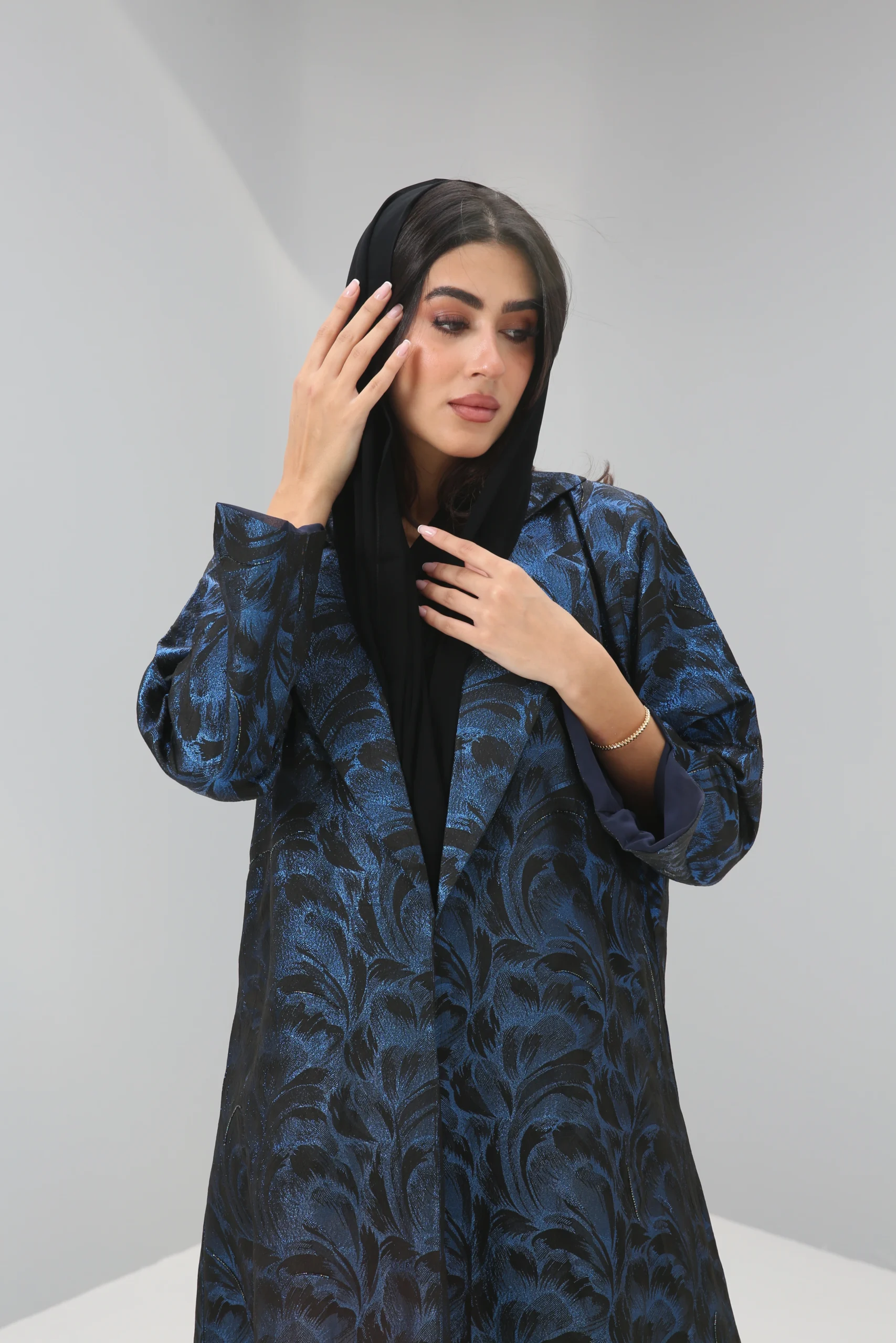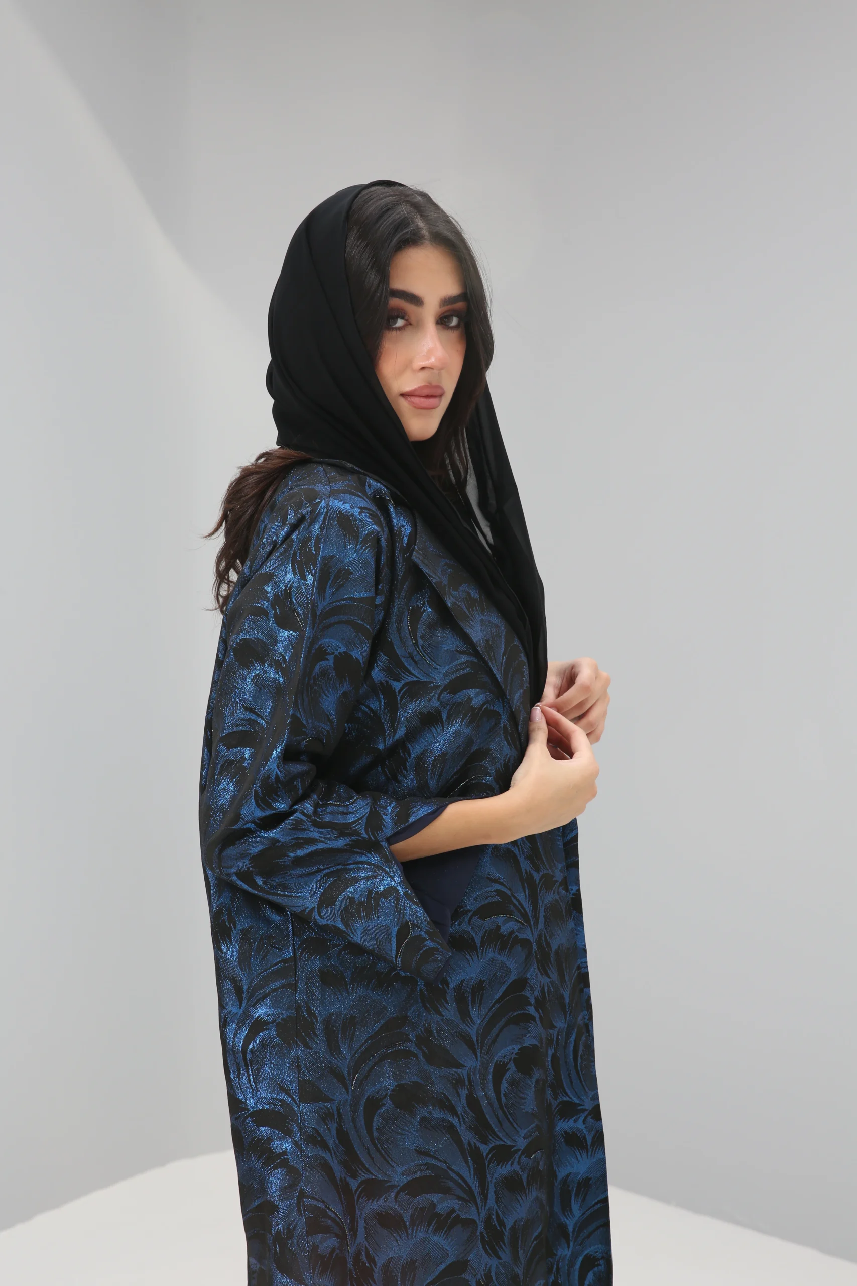 The Sapphire Brocade Abaya – Majestic Elegance