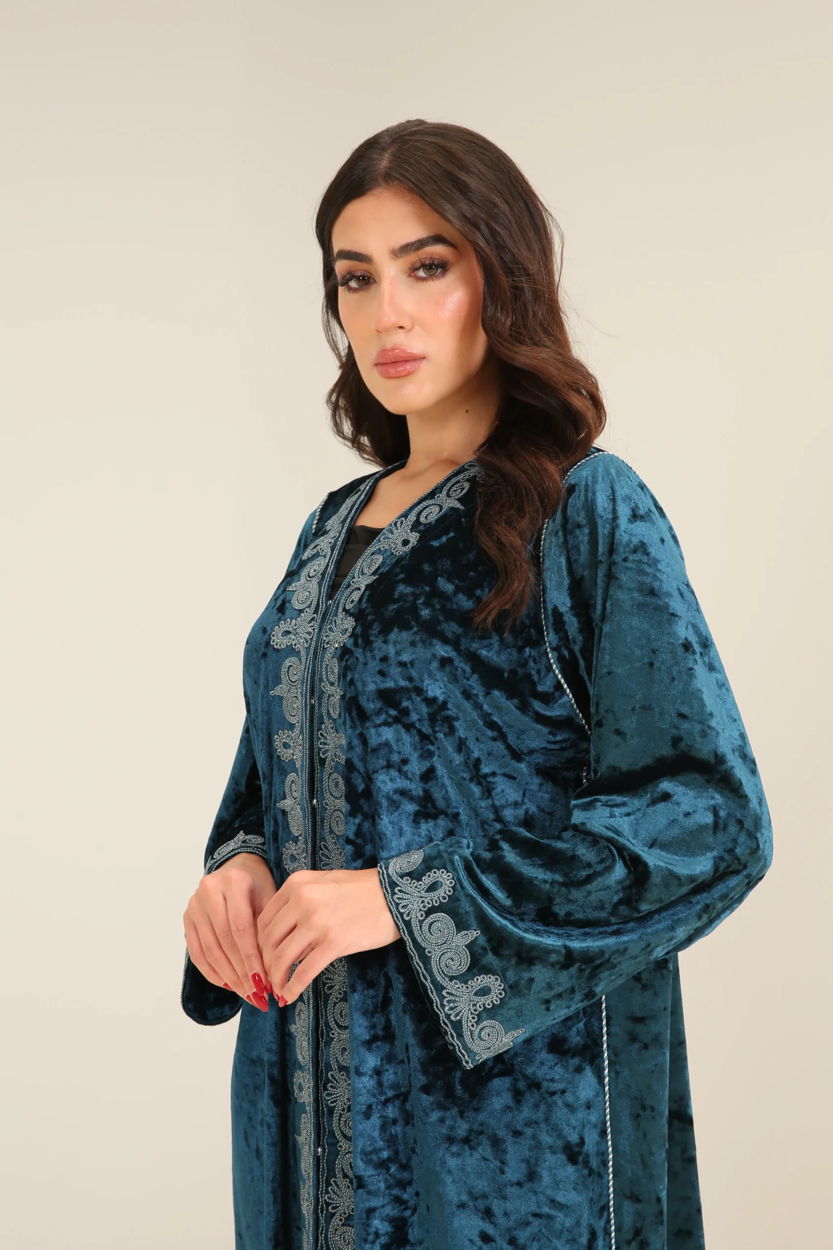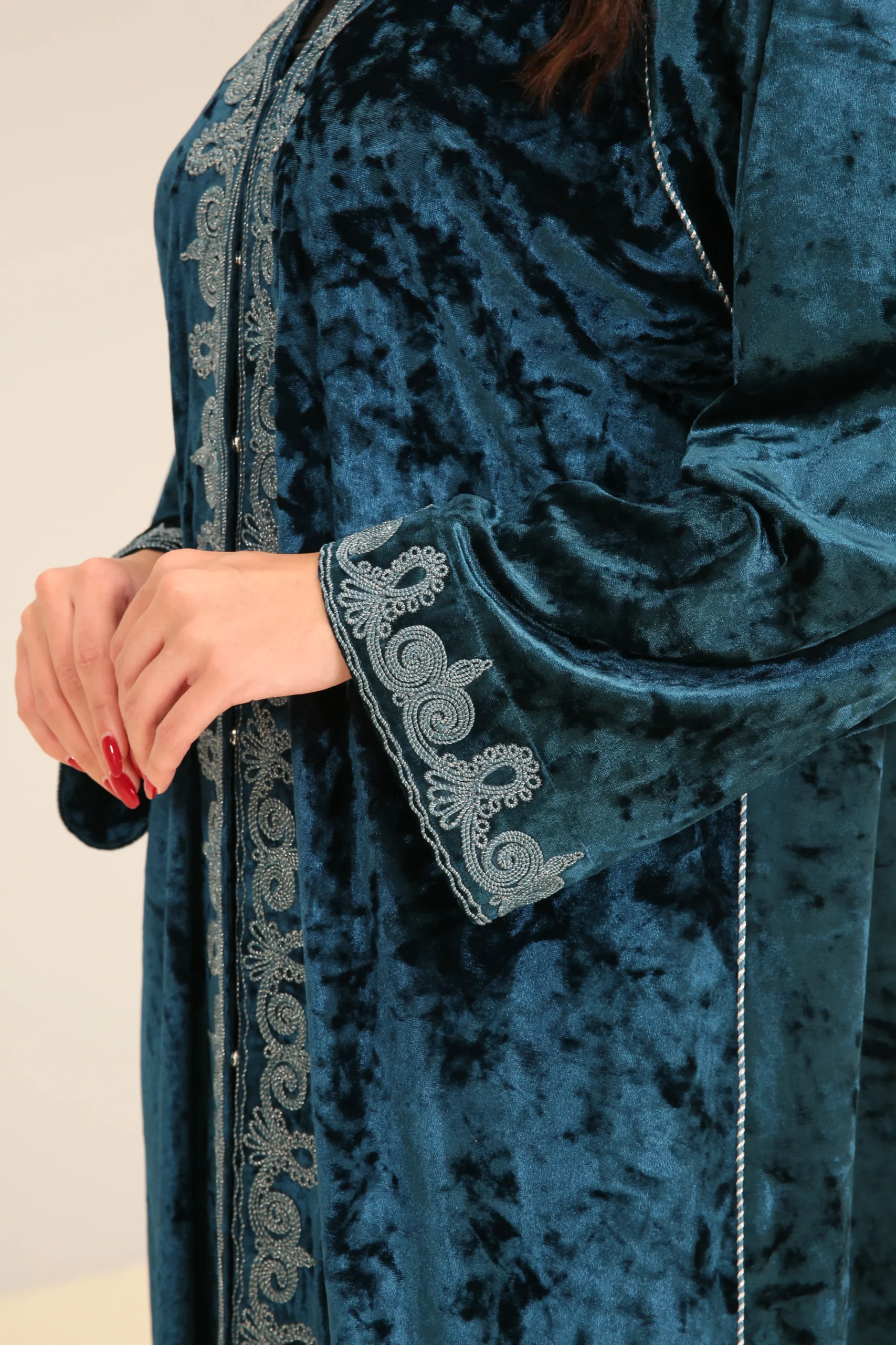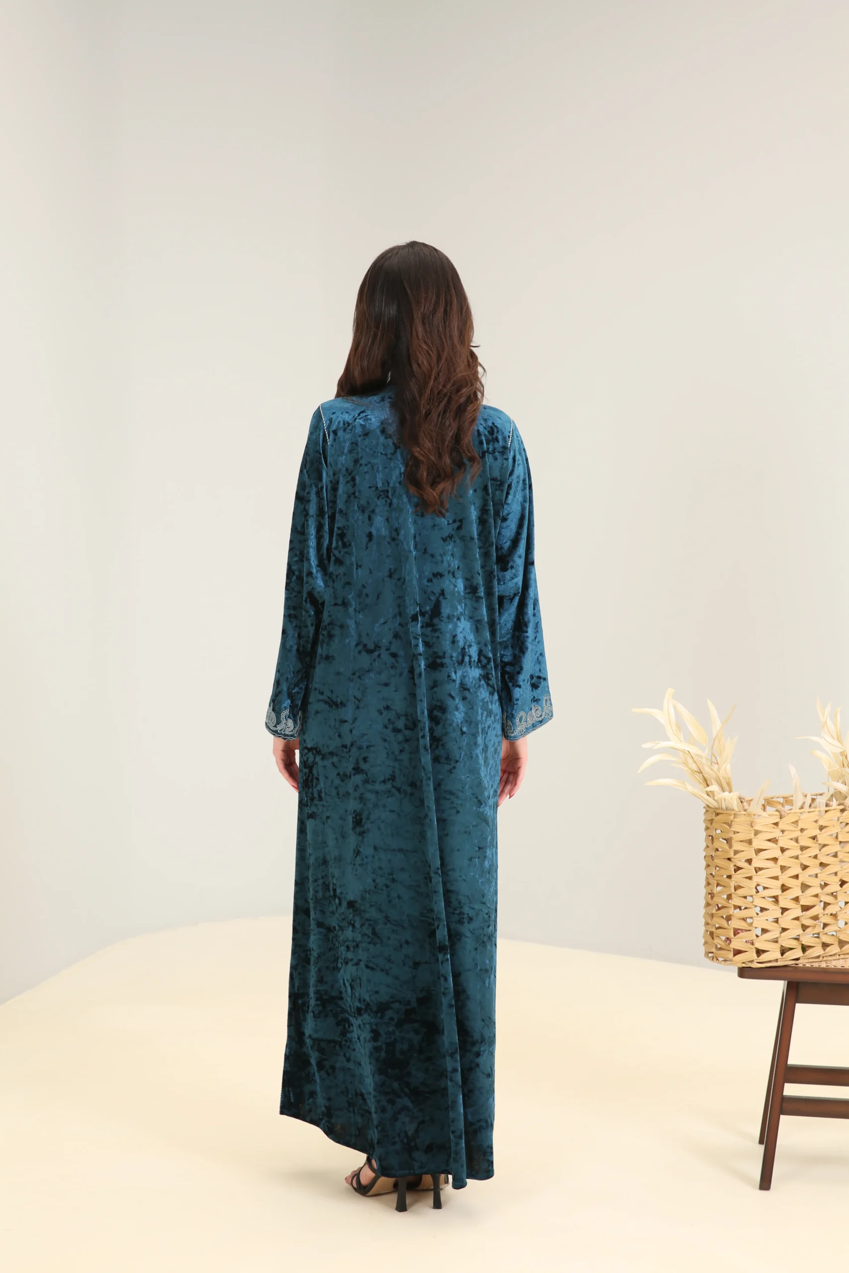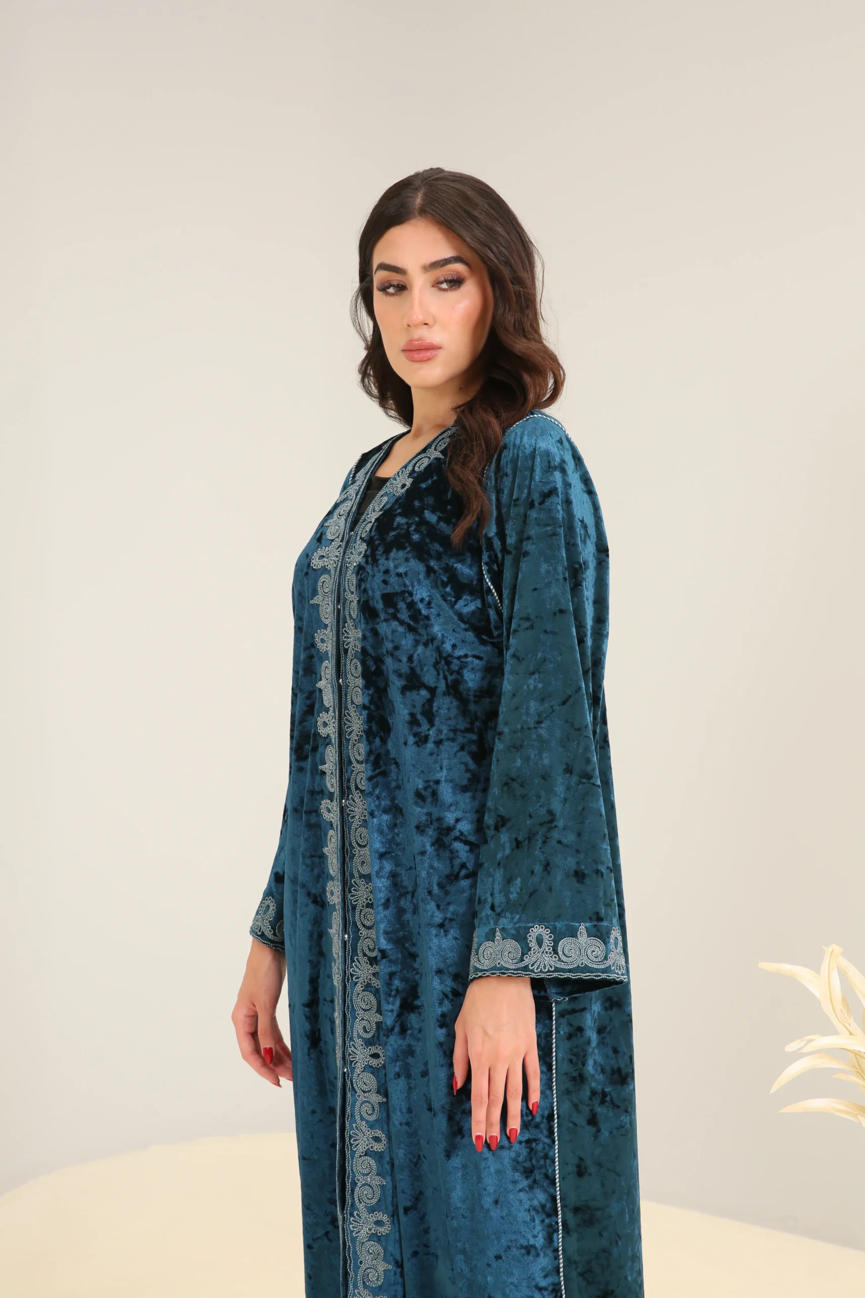 Deep Turquoise Abaya with Accent Detailing – Luxe Edition