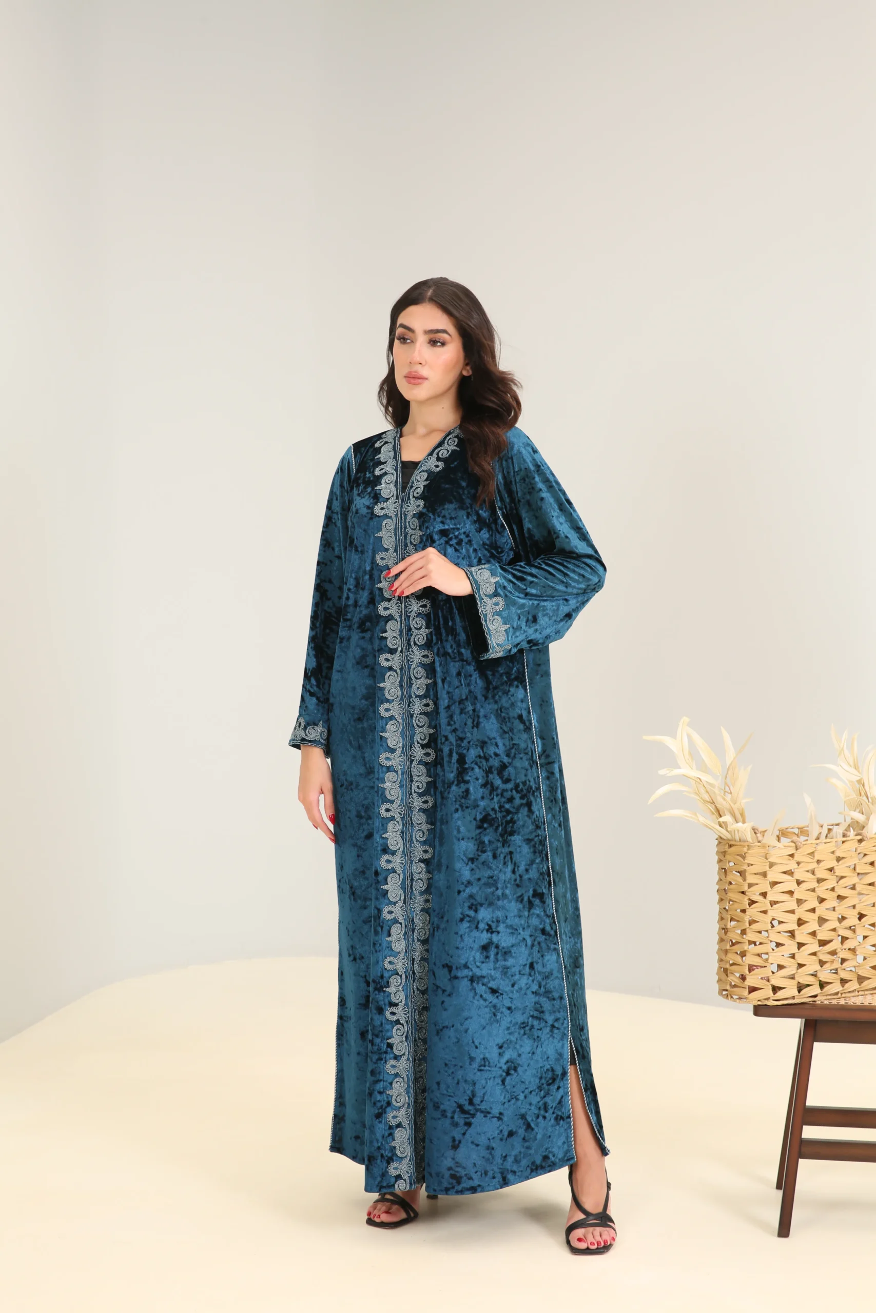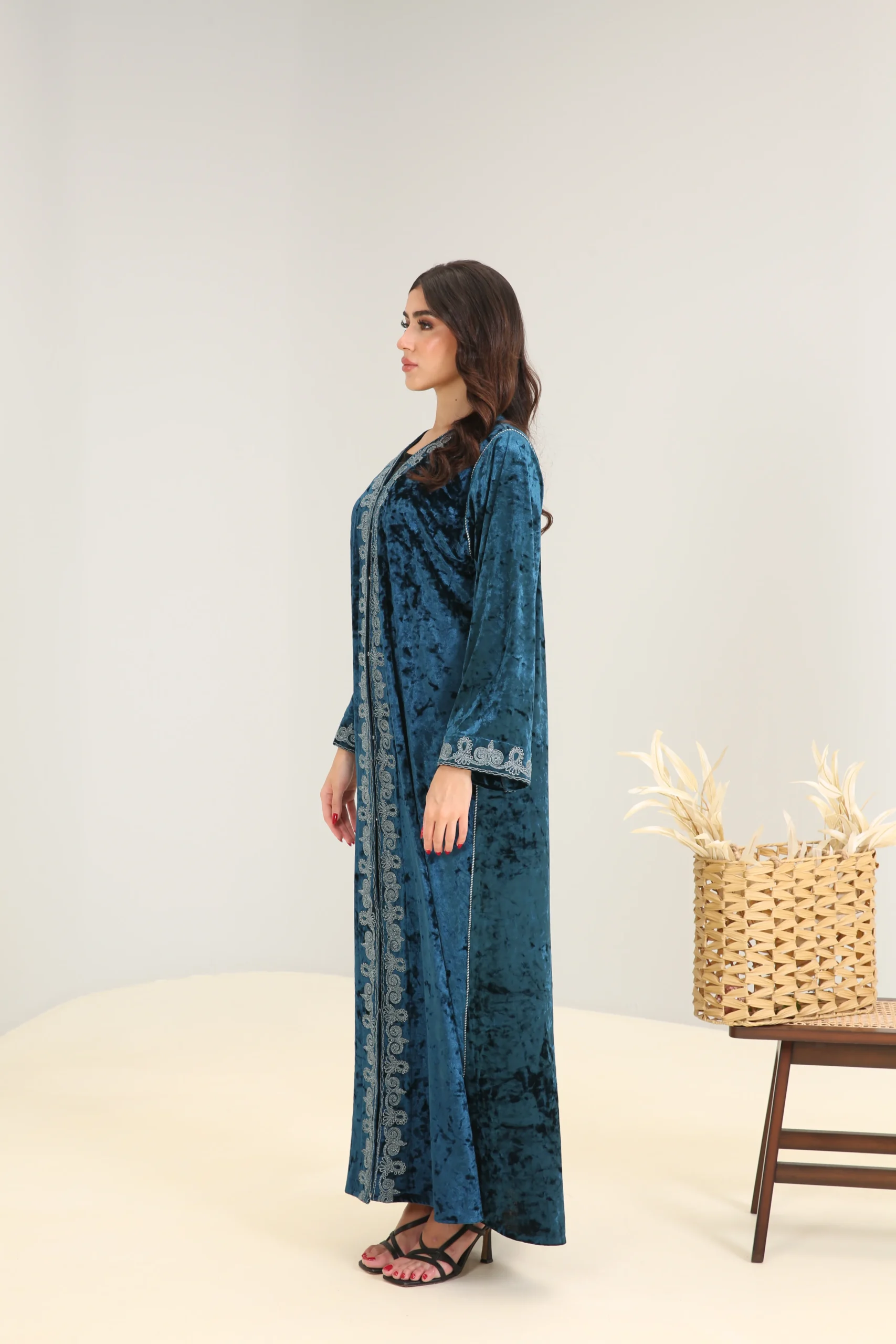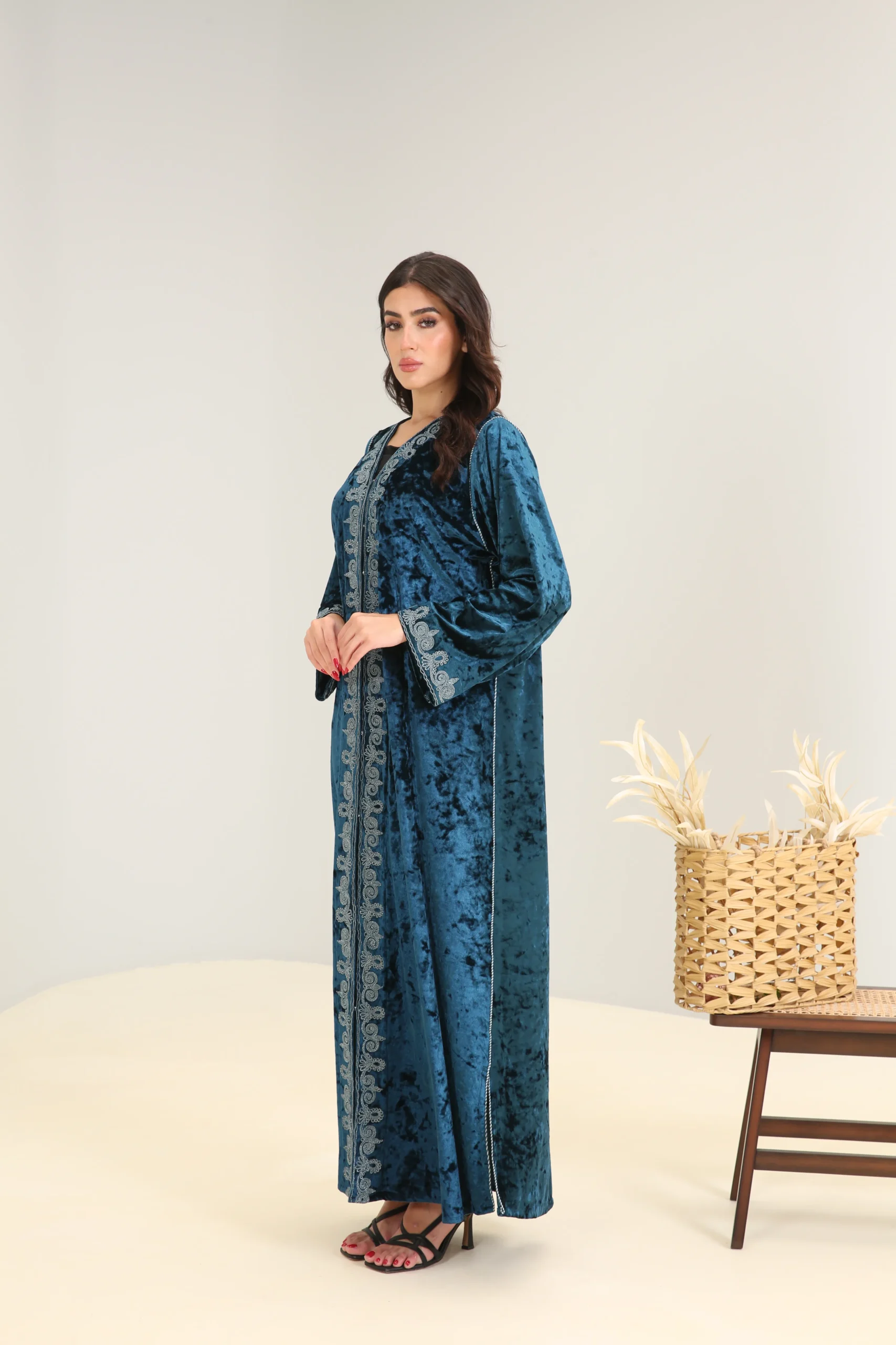 Deep Turquoise Abaya with Accent Detailing – Luxe Edition