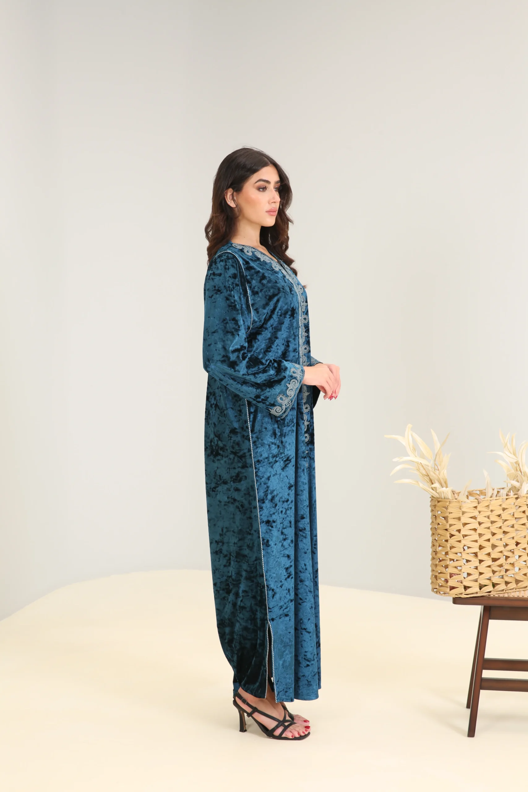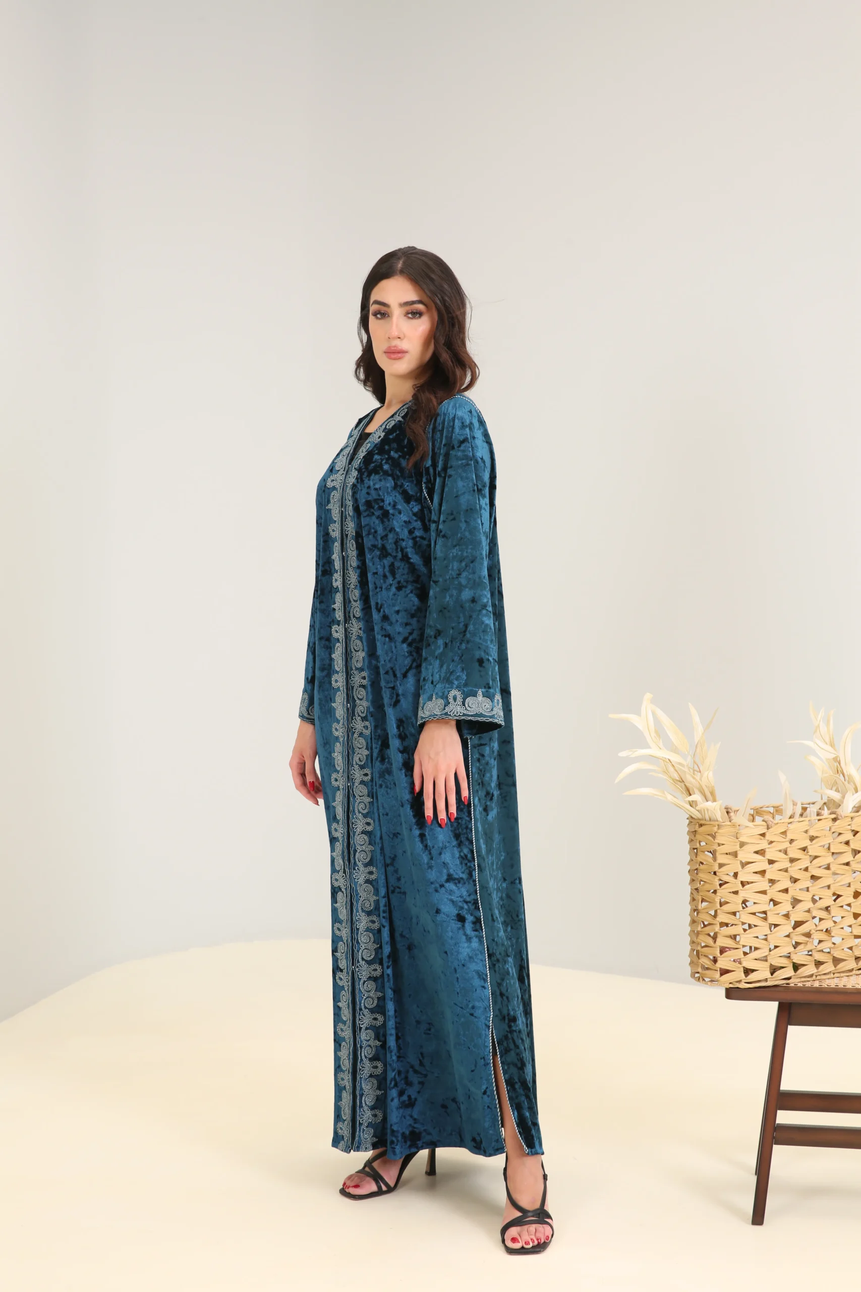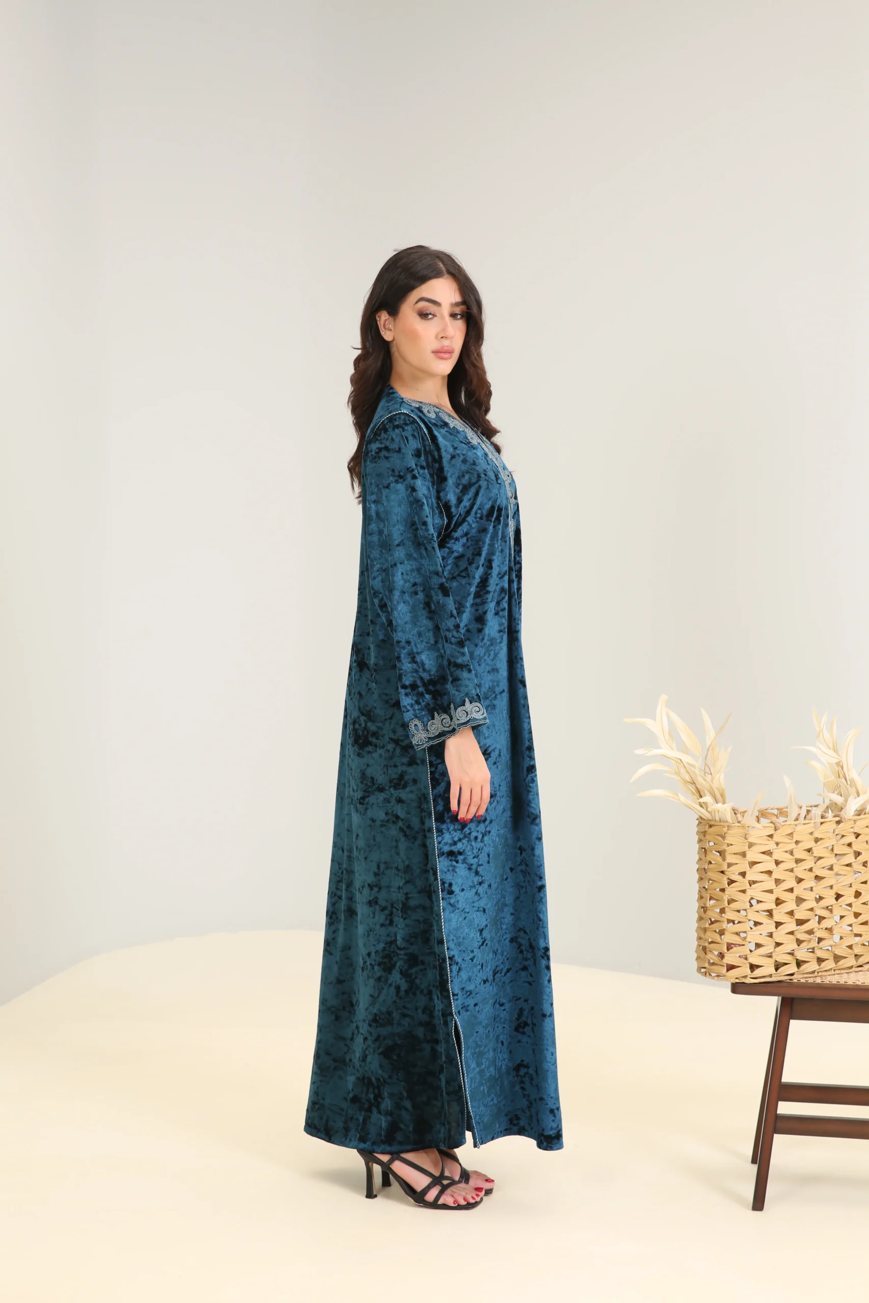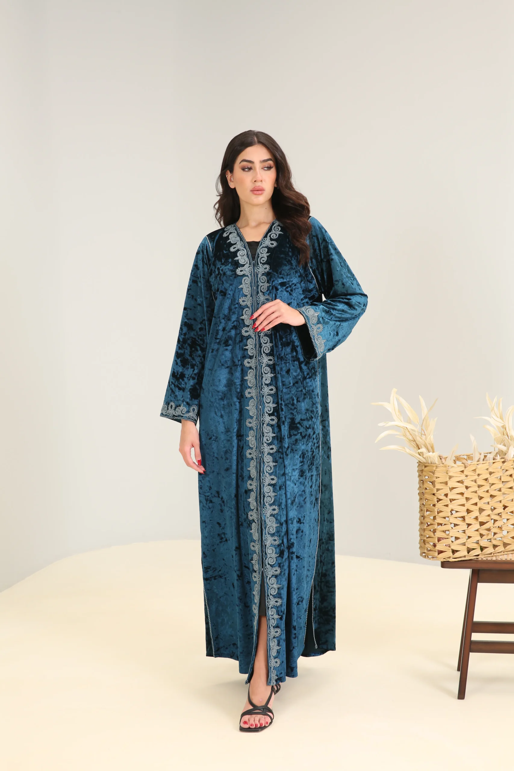 Deep Turquoise Abaya with Accent Detailing – Luxe Edition