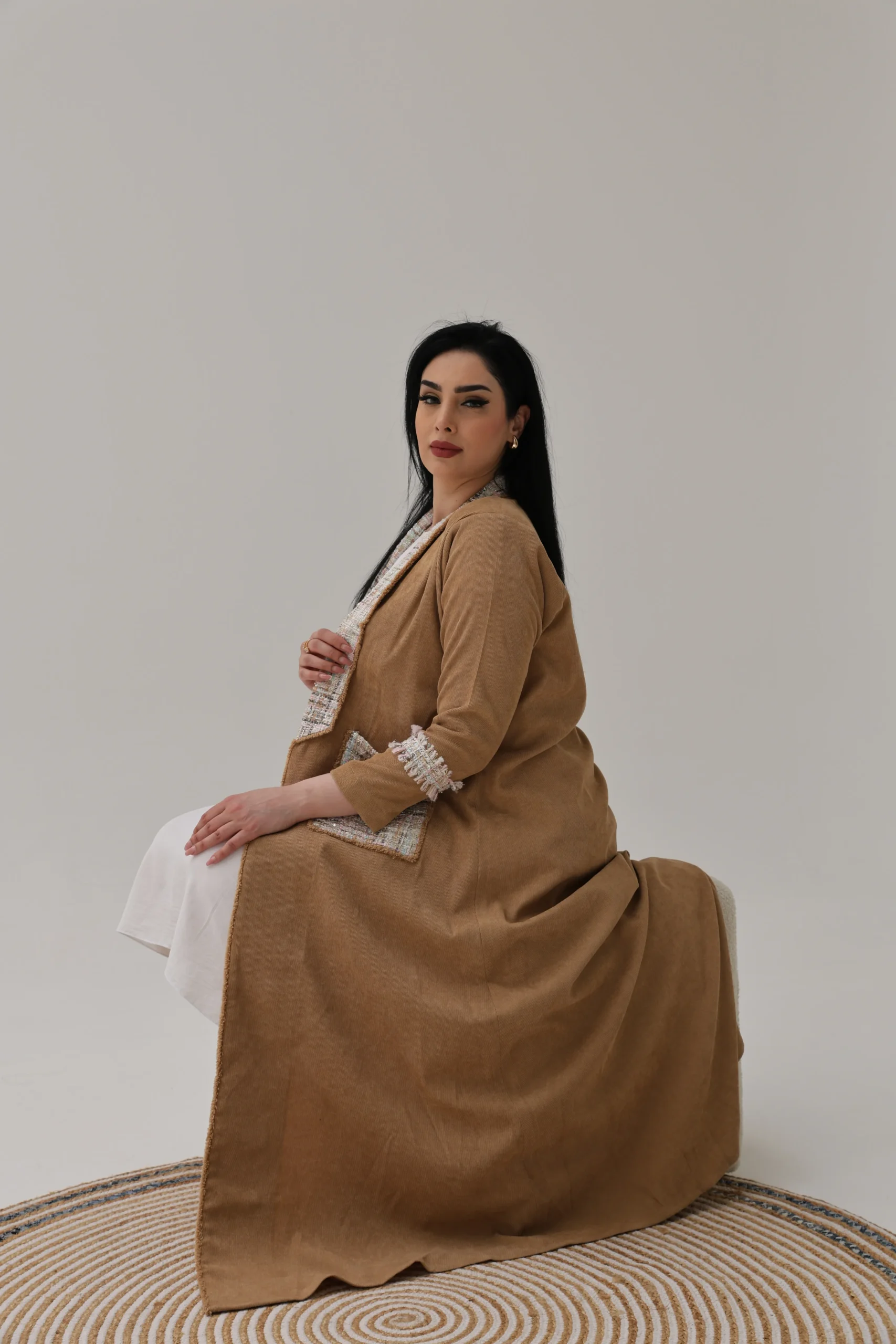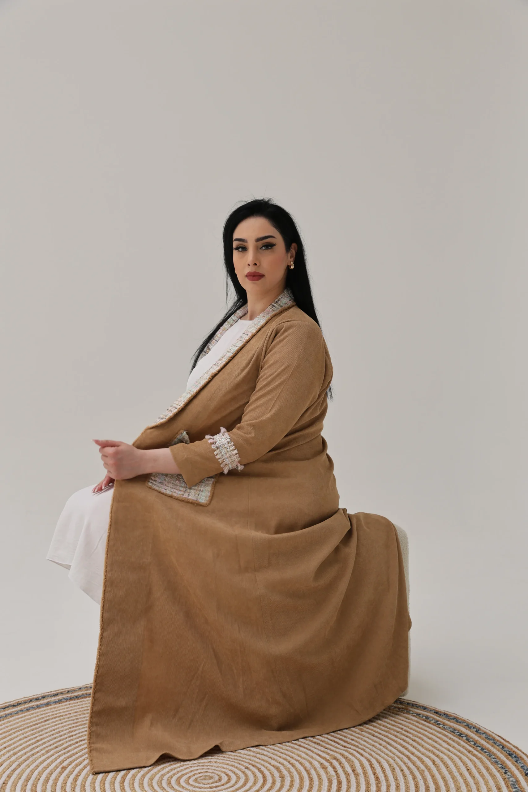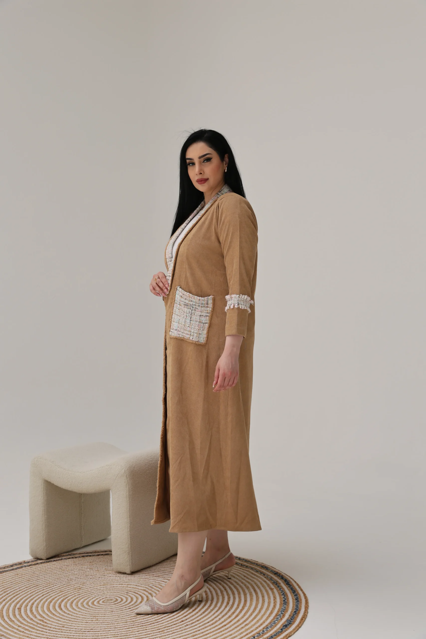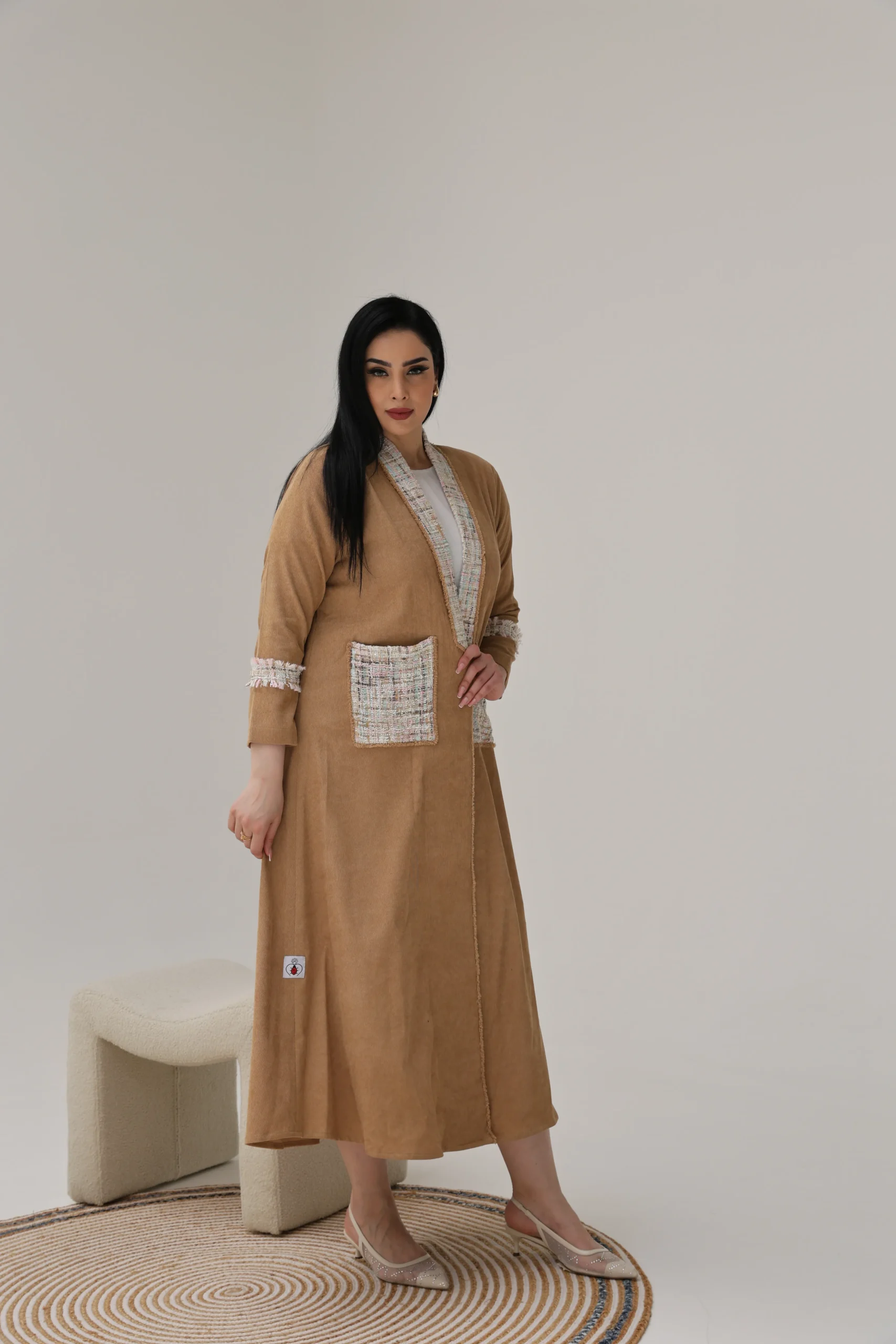 Light Brown Abaya with Tweed Detailing – Luxe Edition