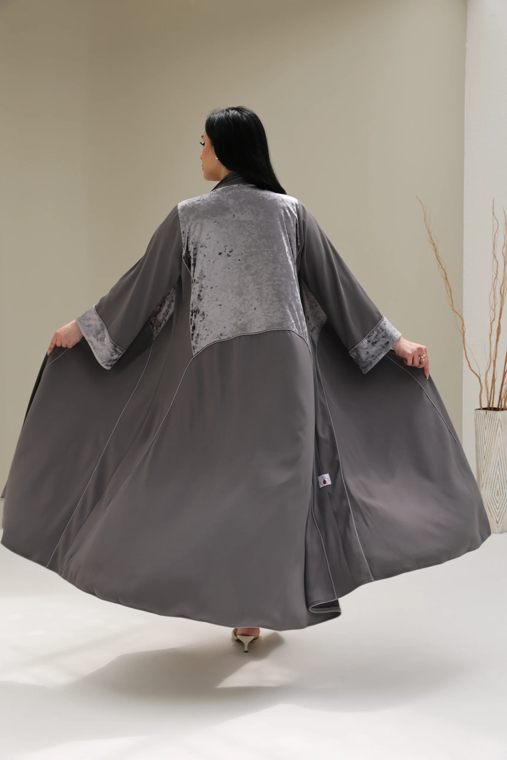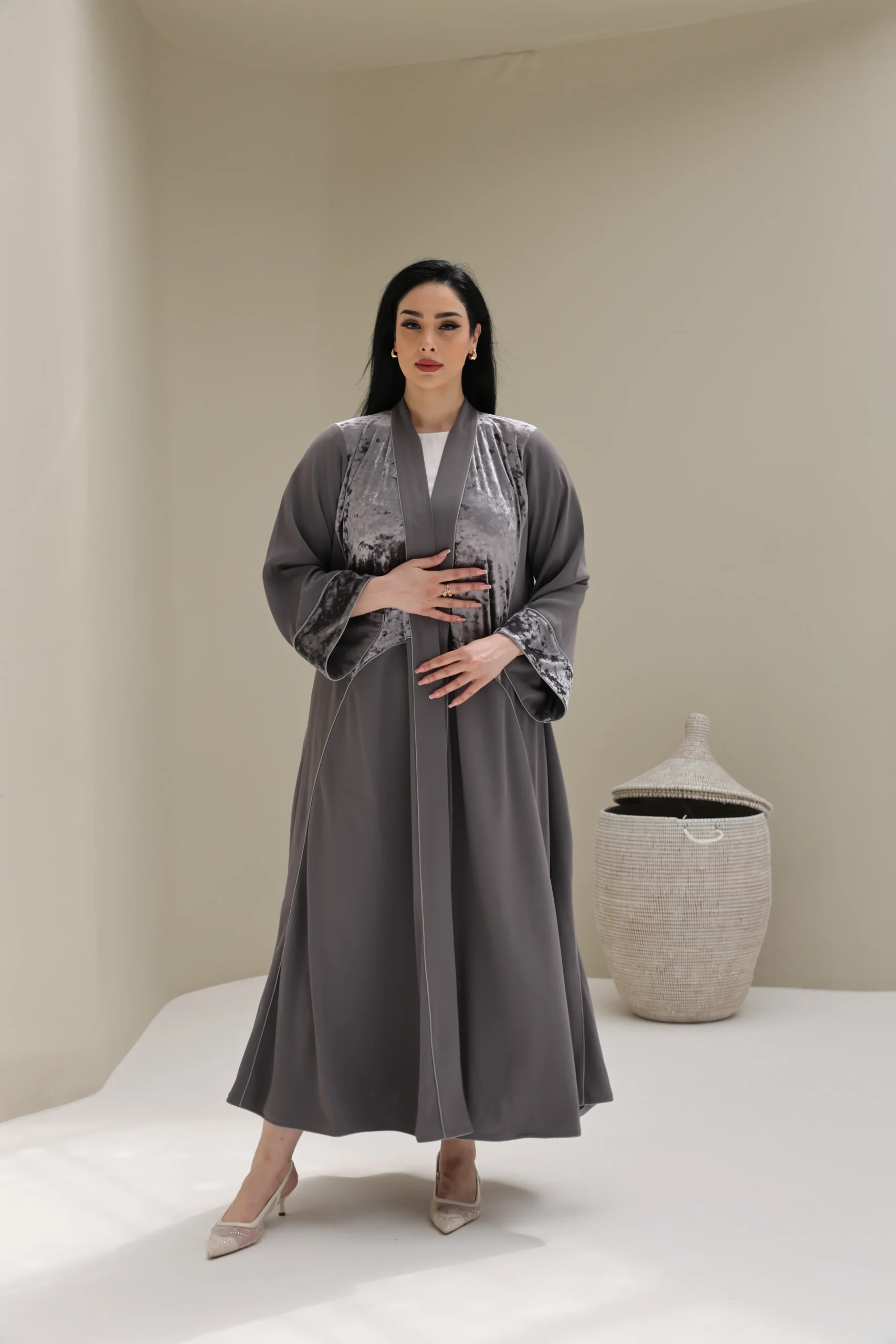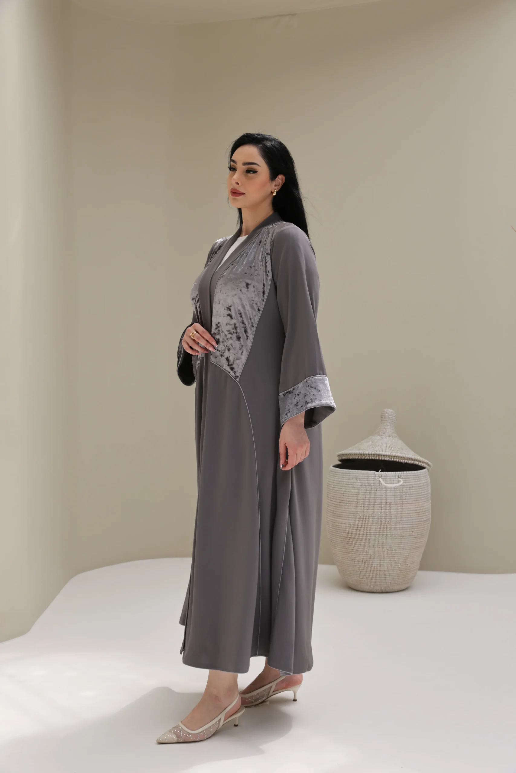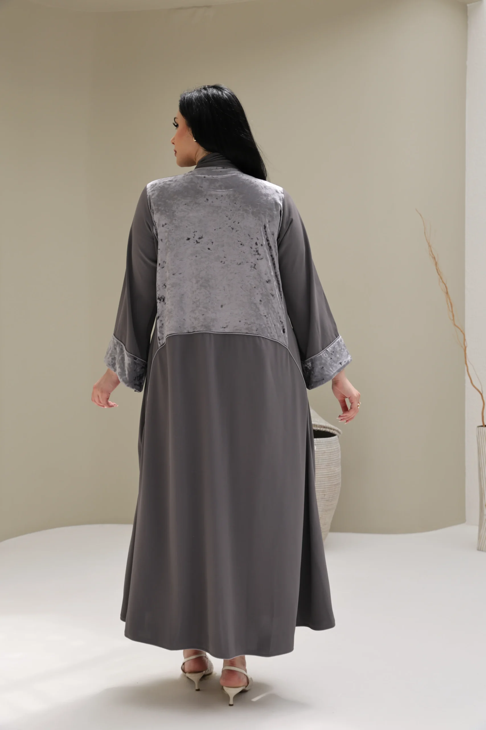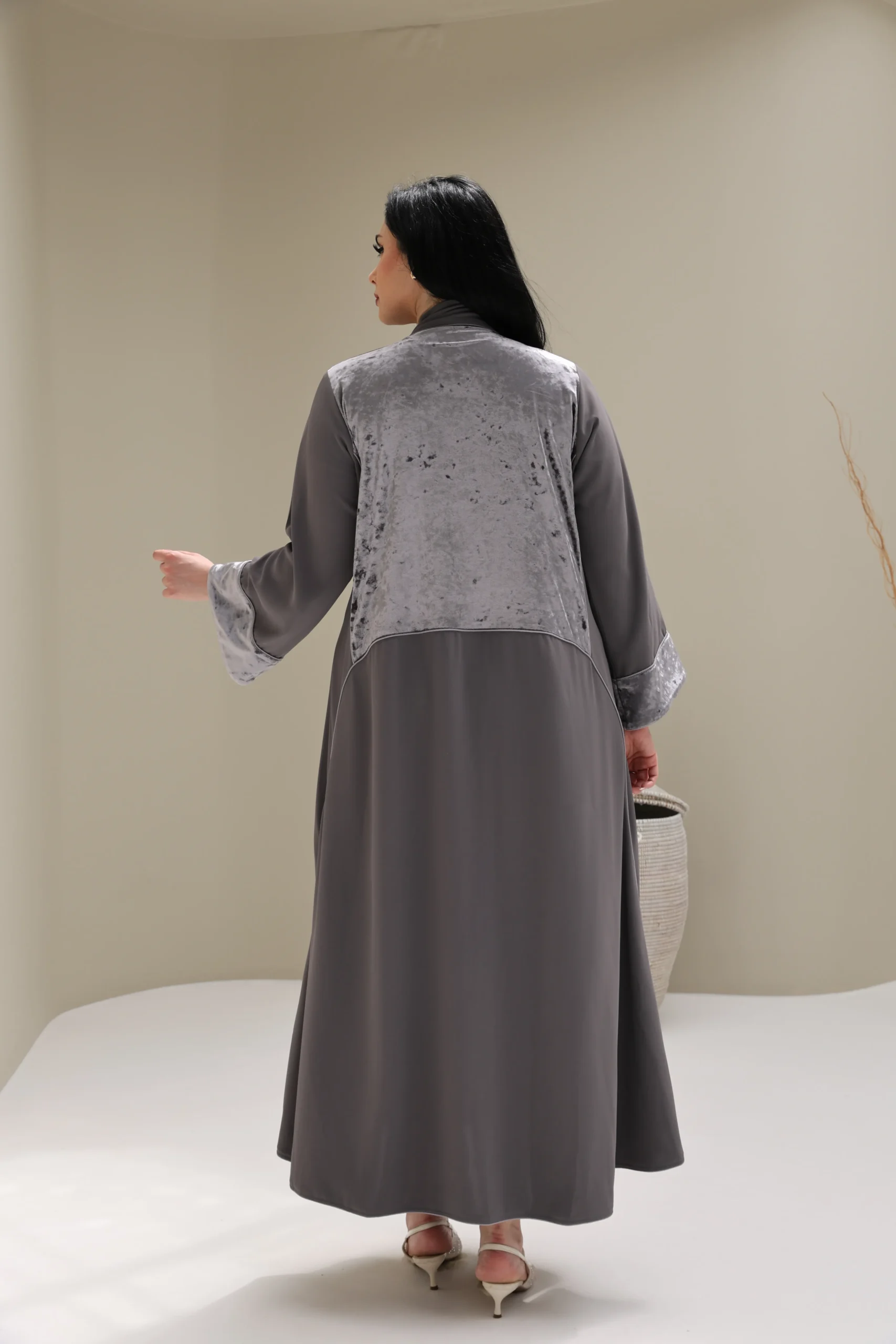 Grey & Beige Cashmere Abaya with Triangular Breastplate Panel – Luxe Edition