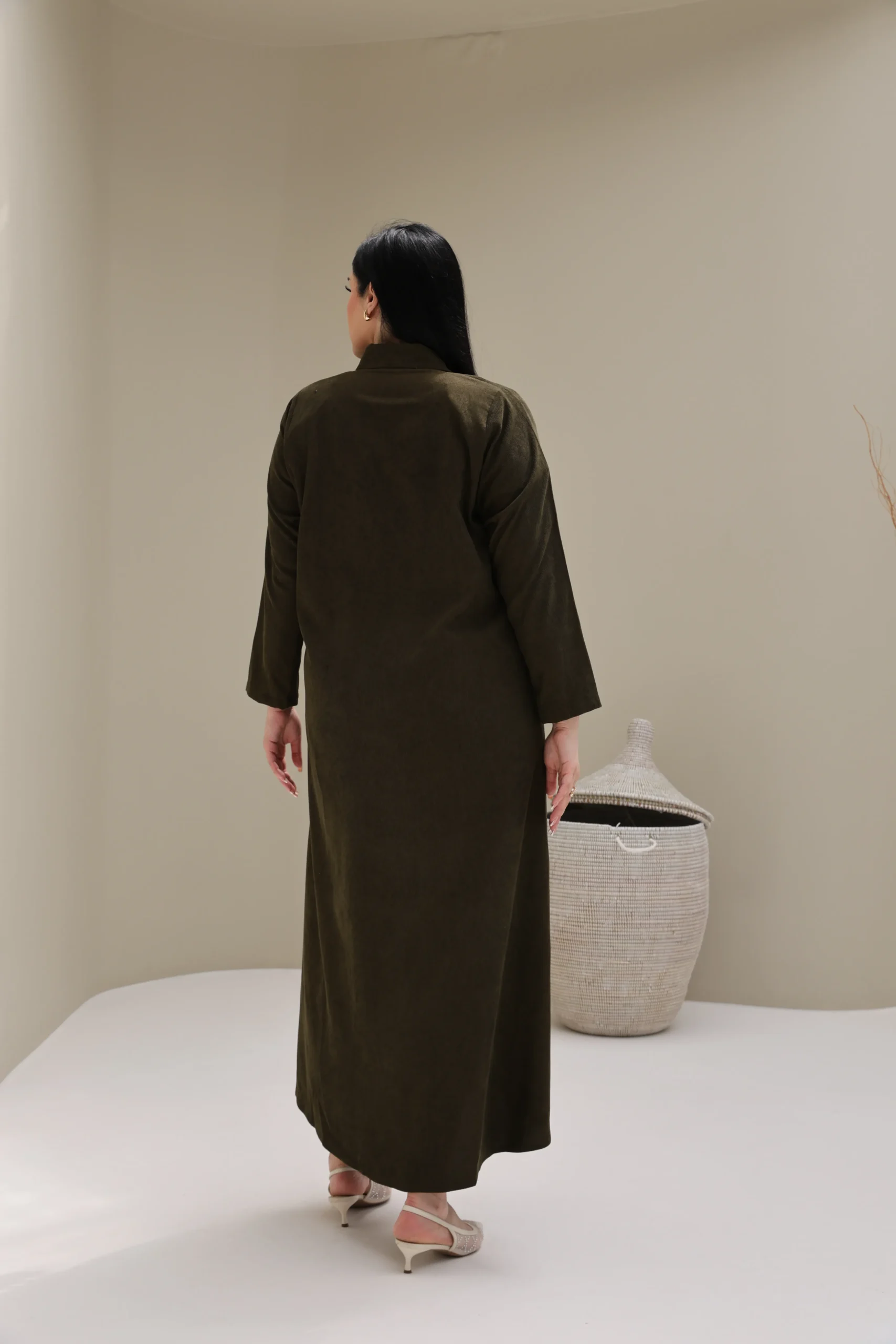 Deep Sea Green Corduroy Abaya – Luxe Edition