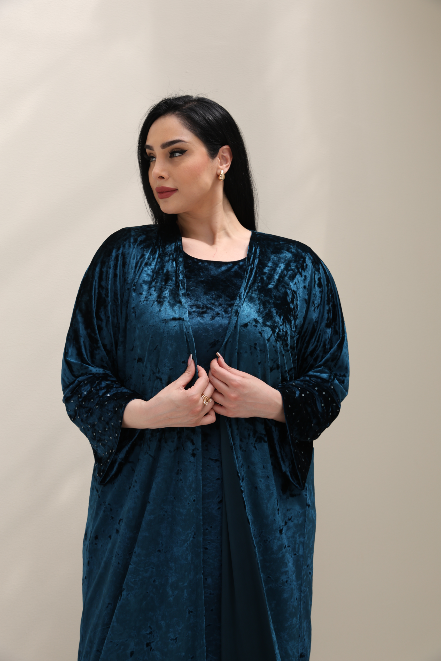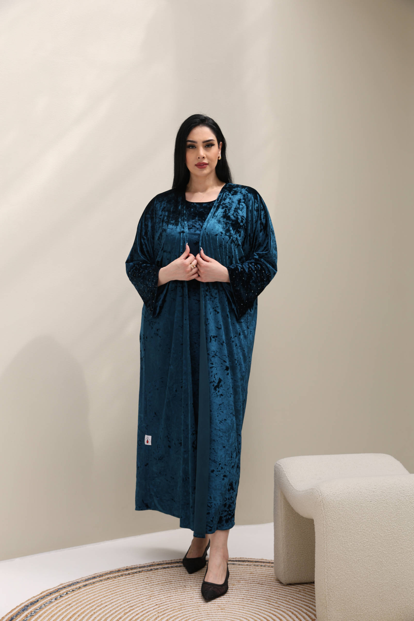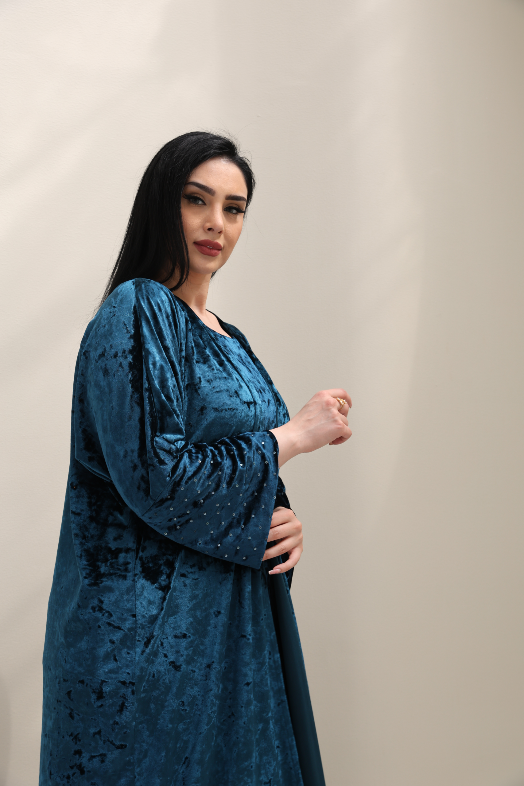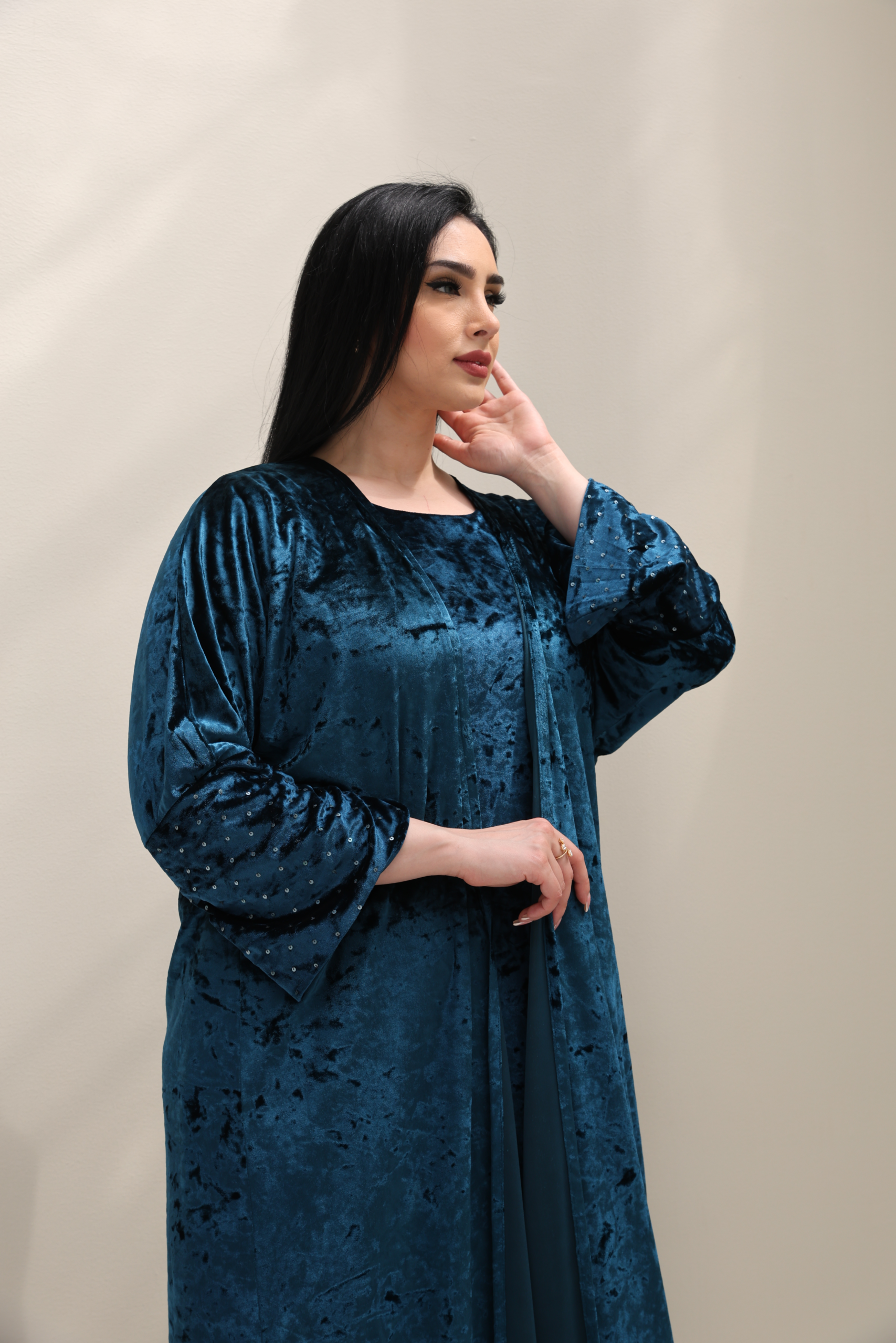 The Teal Blue Velvet Abaya is a celebration of modern femininity — quietly bold, infinitely elegant, and undeniably timeless.