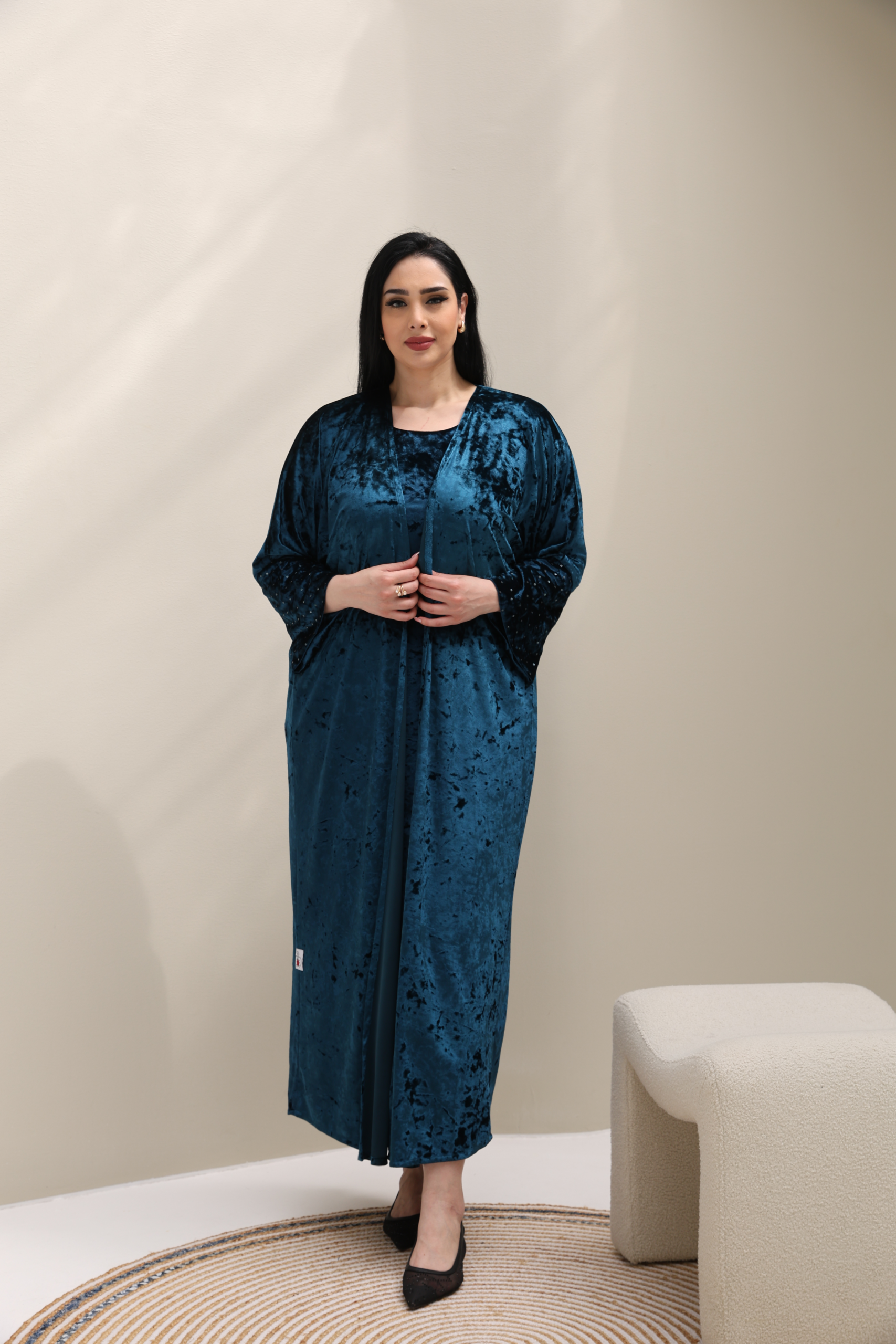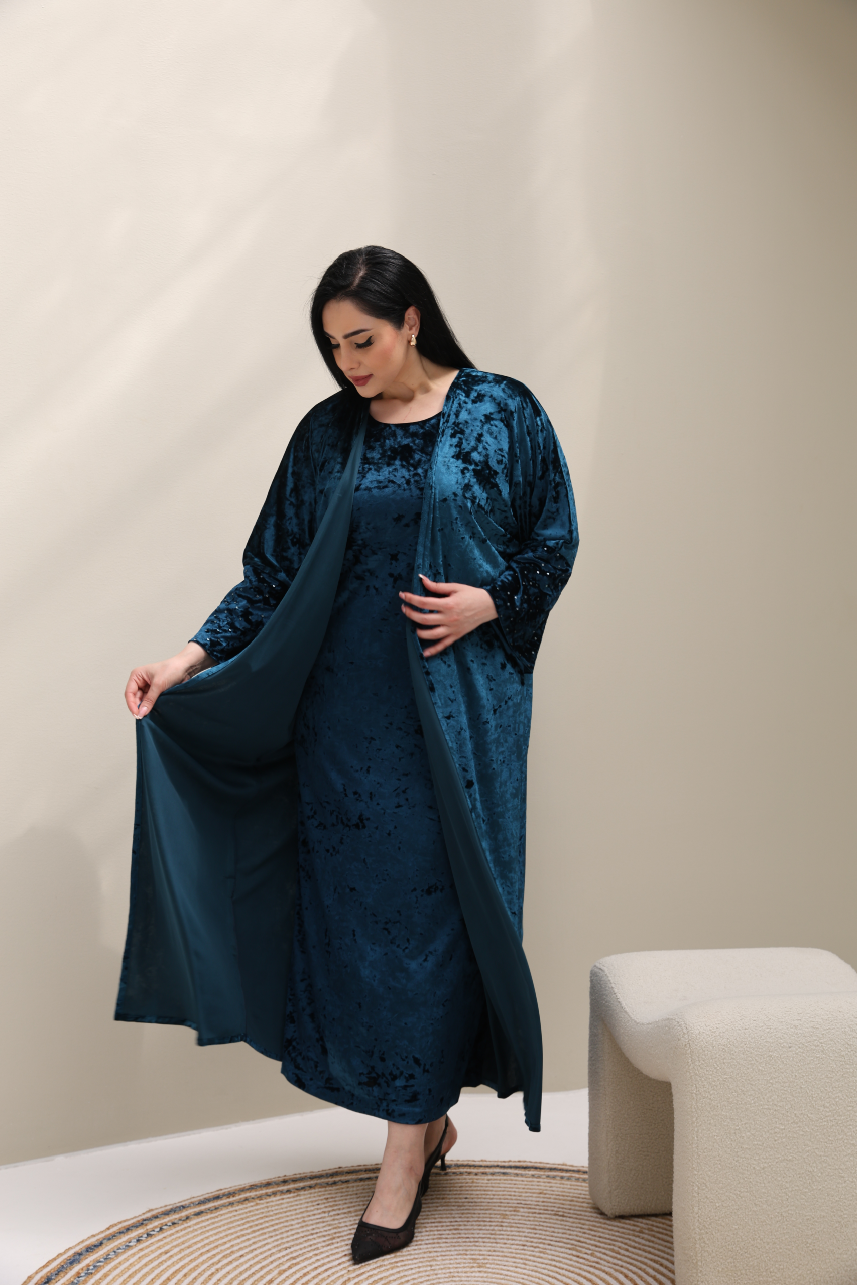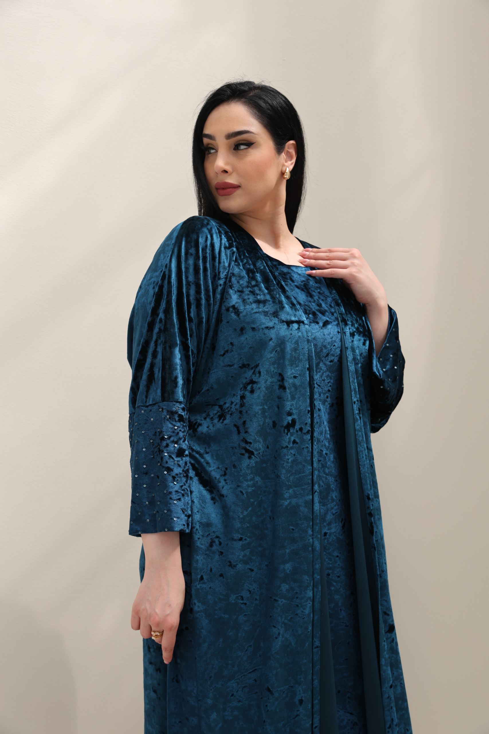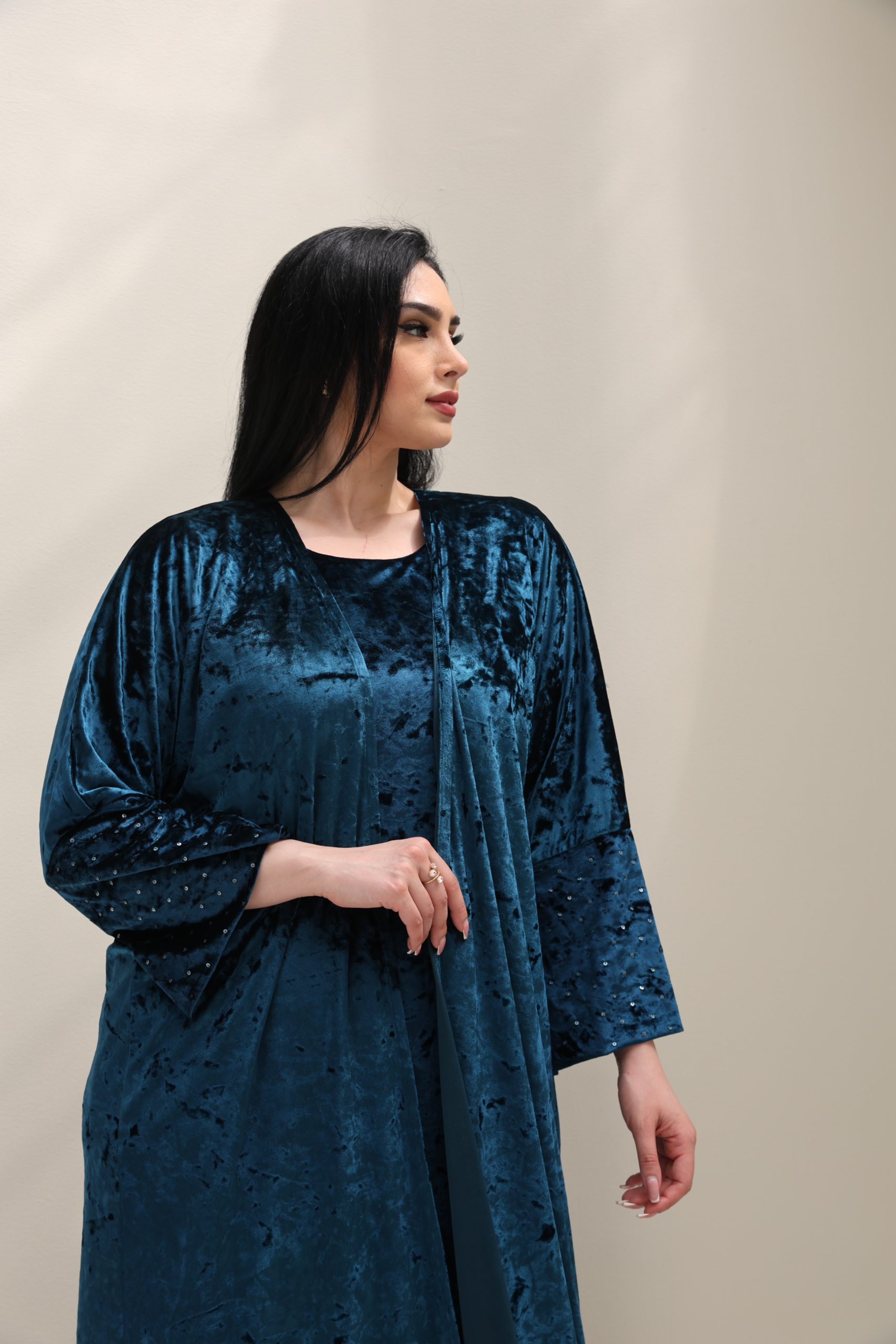 The Teal Blue Velvet Abaya is a celebration of modern femininity — quietly bold, infinitely elegant, and undeniably timeless.