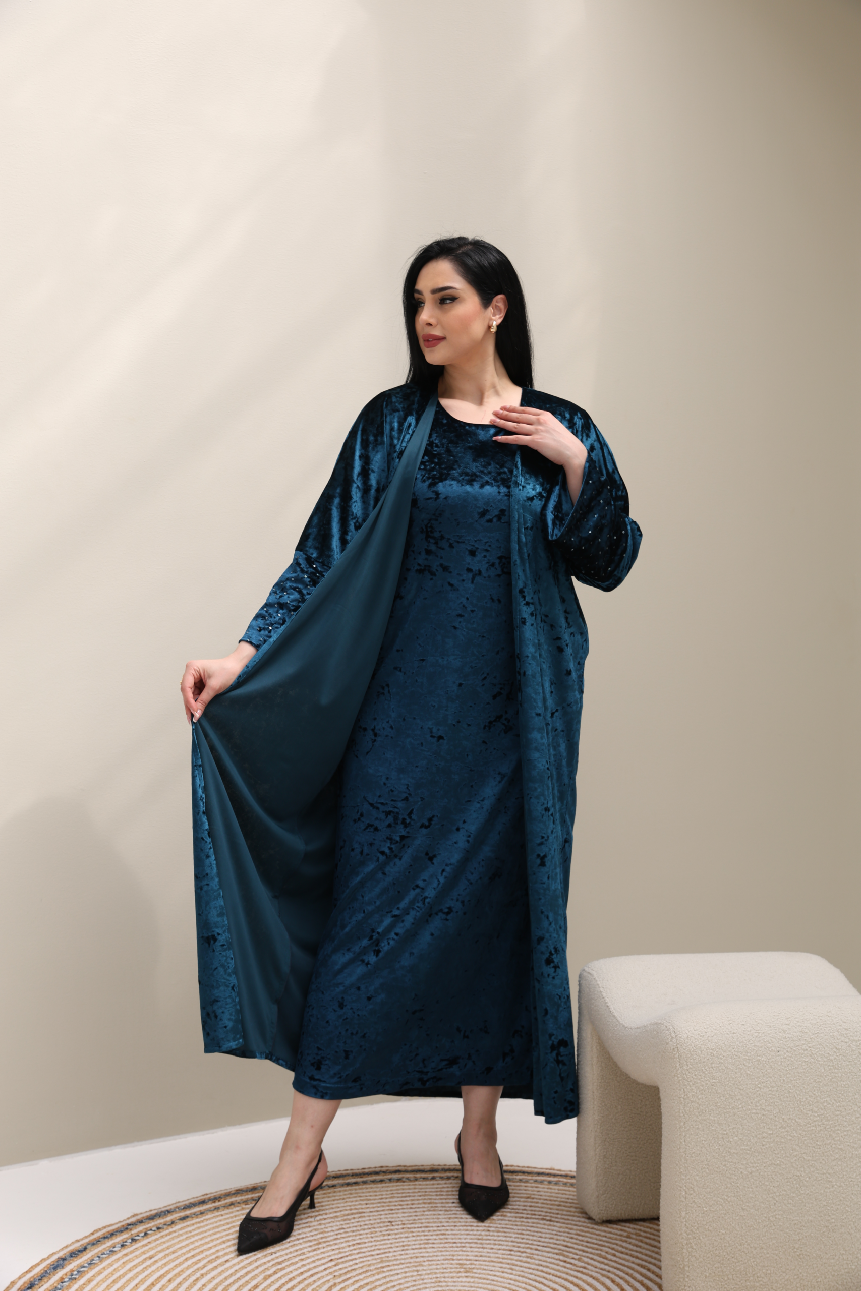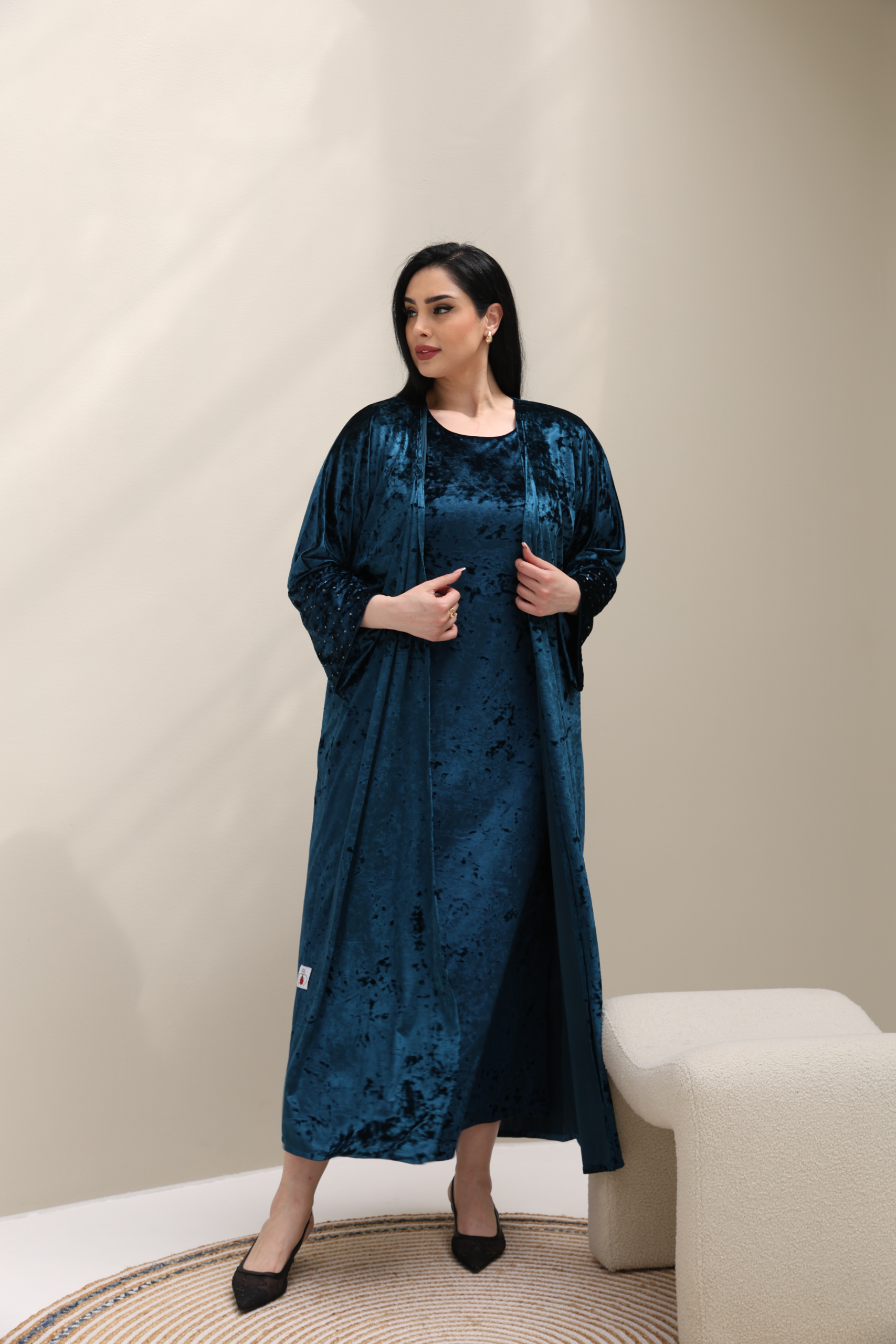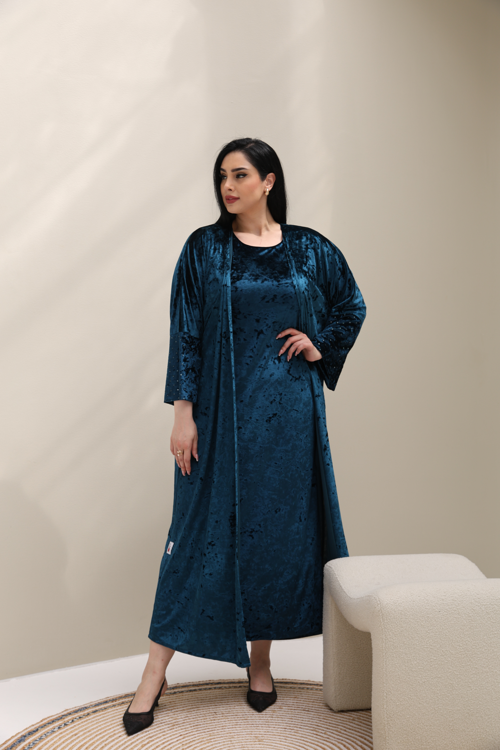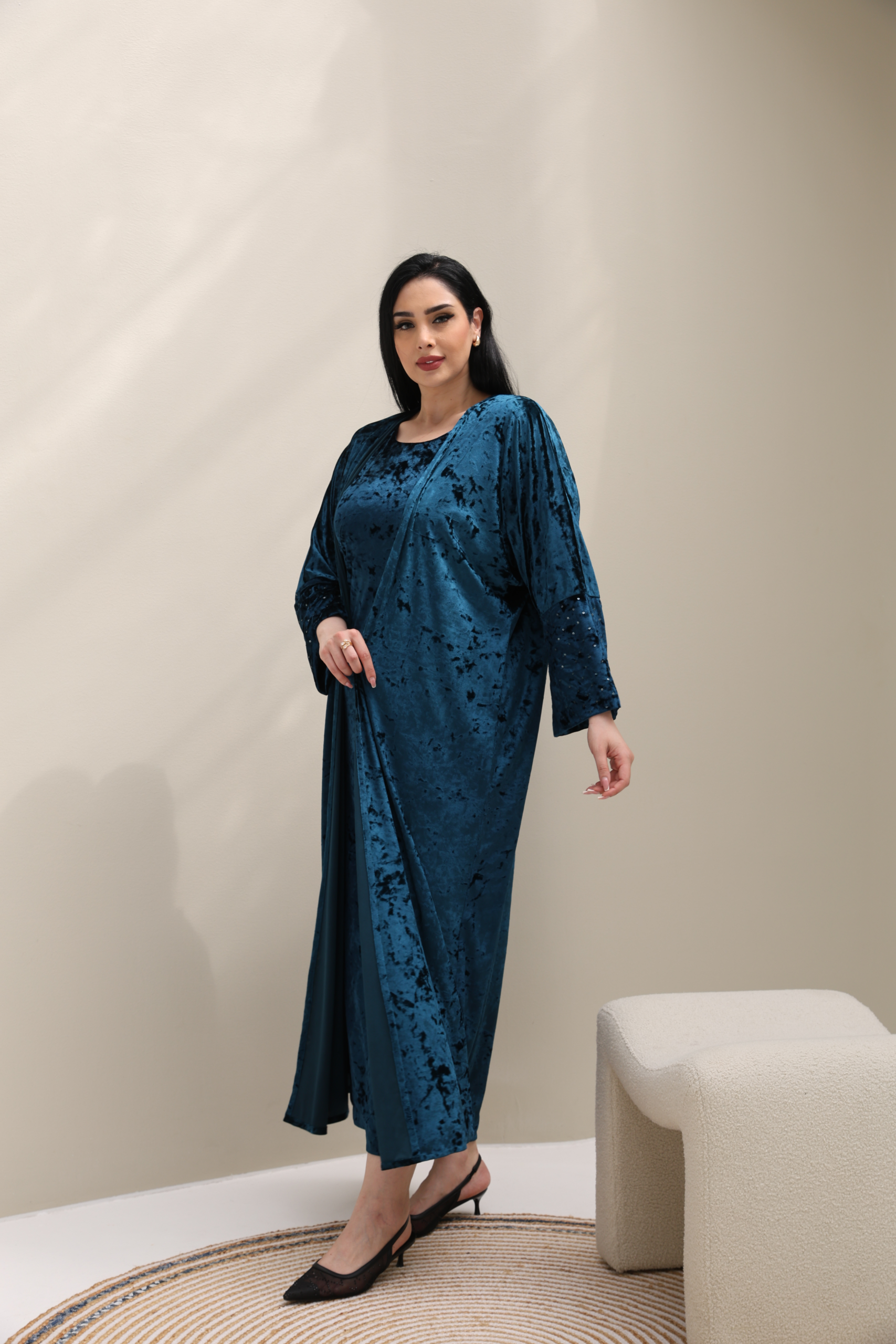 The Teal Blue Velvet Abaya is a celebration of modern femininity — quietly bold, infinitely elegant, and undeniably timeless.