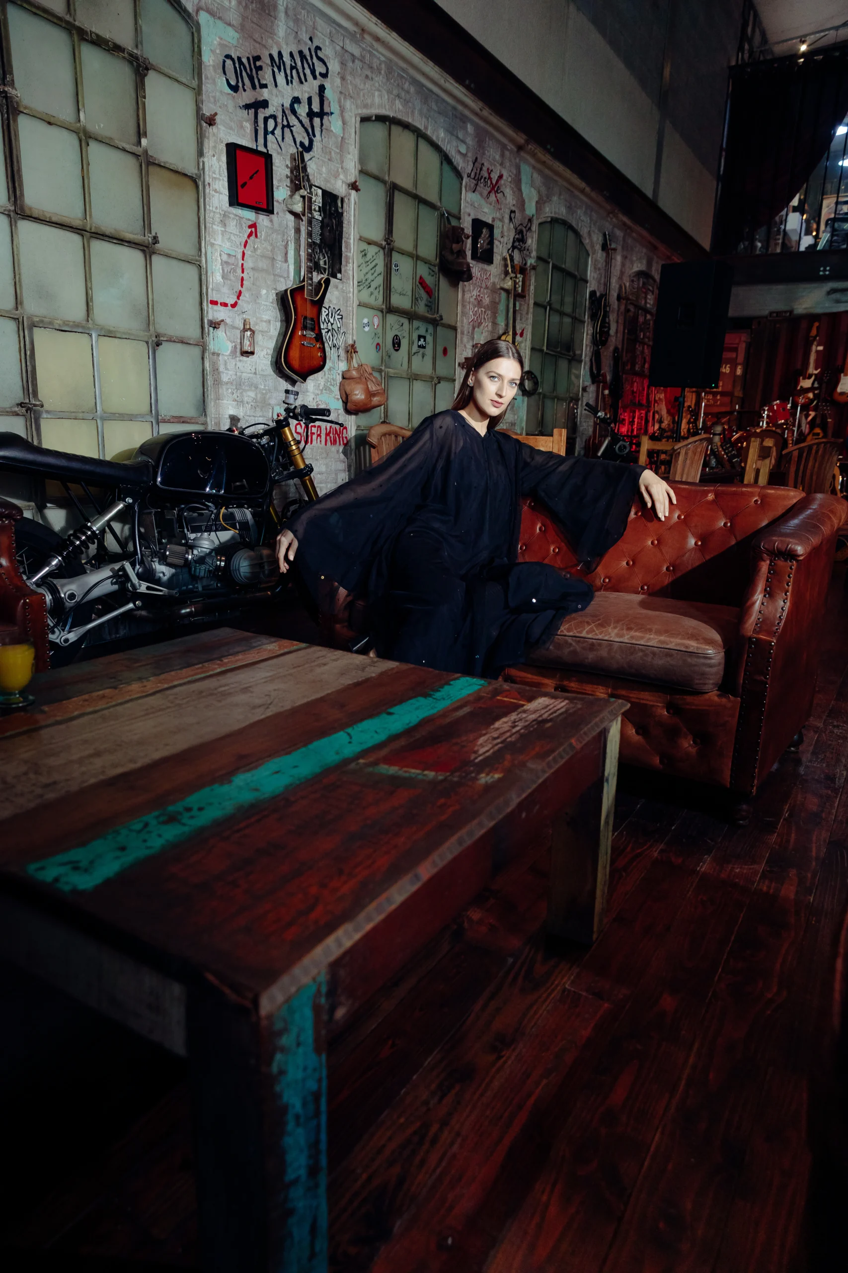 A kaftan that embodies the mystery and sophistication of the night, perfect for the woman who appreciates a look that is both effortless and undeniably glamorous.
